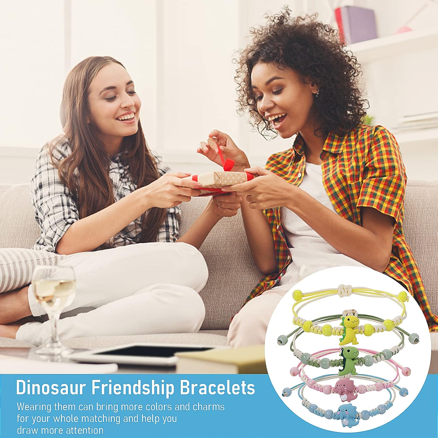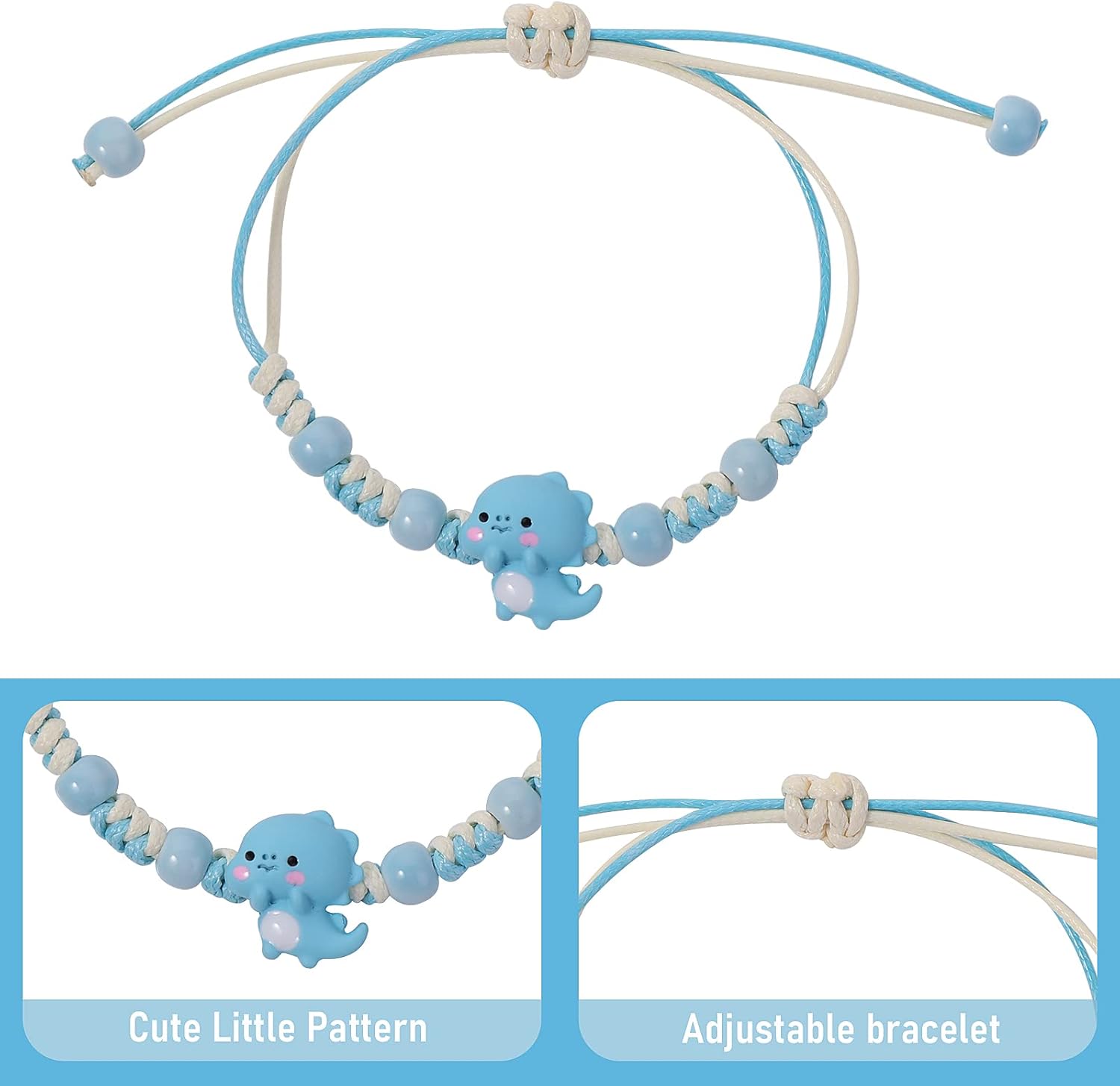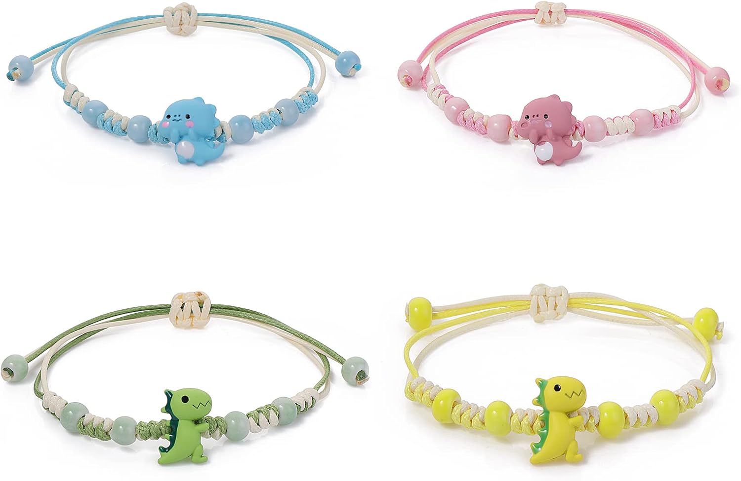 Confezione da 4 Braccialetti con dinosauro cartone animato per ragazze Braccialetti colorati intrecciati con corda portafortuna Braccialetti di amicizia con dinosauro in resina Buono per bambini Ragazze Ragazzi