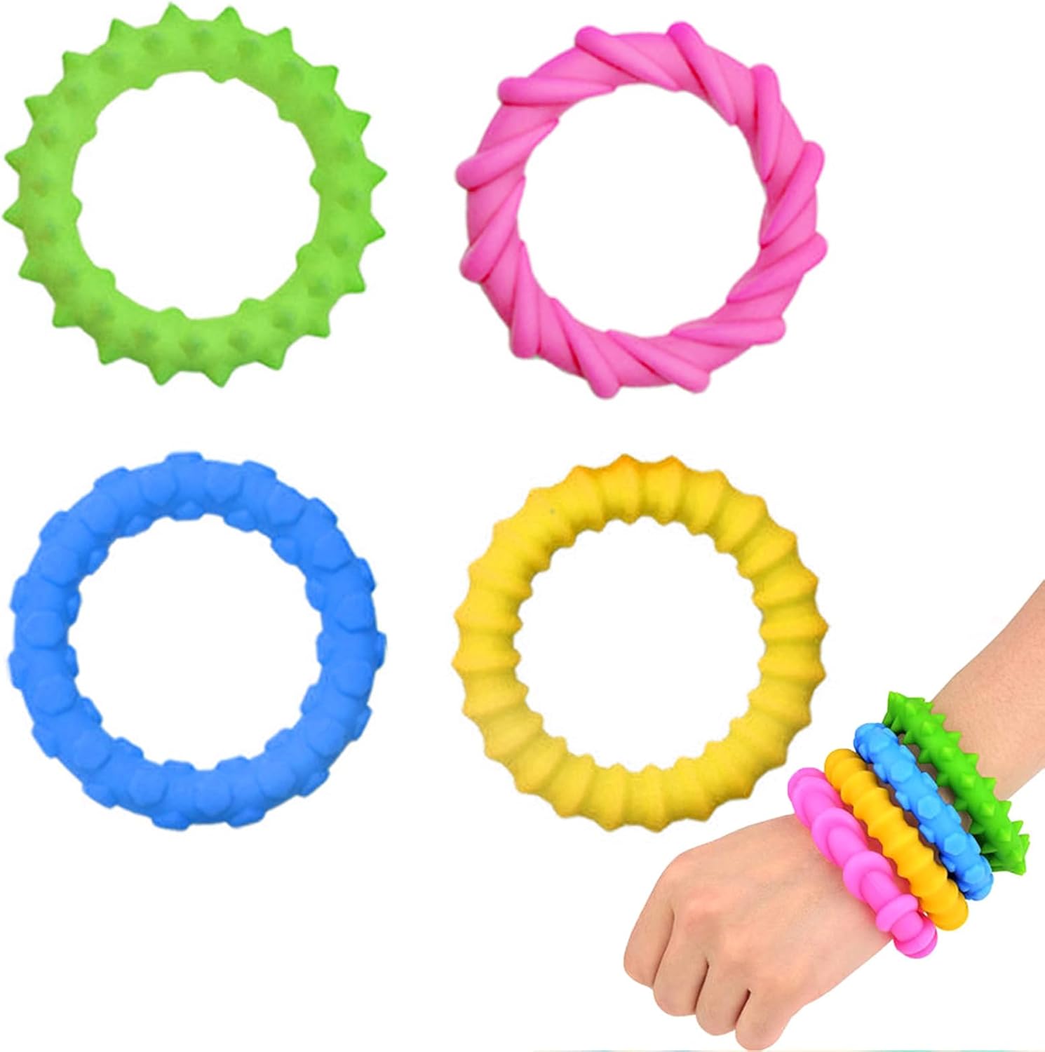 Utilizzo selezionato Con il suo design dai colori vivaci, questo braccialetto giocattolo con texture funge anche da accessorio elegante per assicurarti di rimanere alla moda e soddisfare le tue esigenze sensoriali Ideale per i bambini che hanno bisogno di aumentare l'attenzione, in cerca di adulti per alleviare lo stress e quelli con bisogni speciali come l'autismo, fornendo grande supporto e concentrazione Perfetto per le aule degli studenti per migliorare l'attenzione all'apprendimento, l'ambiente d'ufficio per migliorare la produttività, riunioni di famiglia per il rilascio di energia e il viaggio verso il relax Esplora pacificamente con il nostro braccialetto giocattolo con texture sensoriale, progettato per alleviare lo stress attraverso il gioco interattivo, ideale per bambini e adulti che cercano la pace