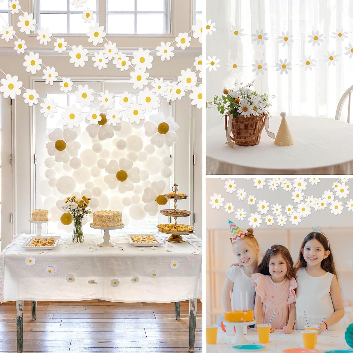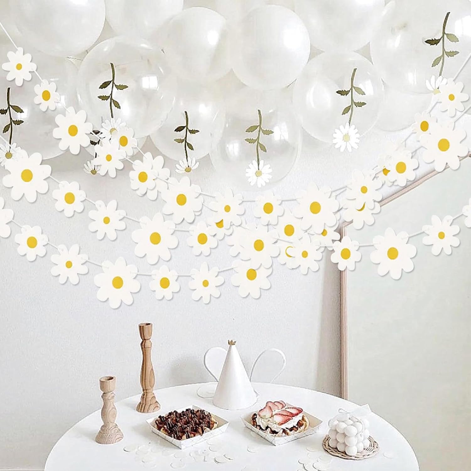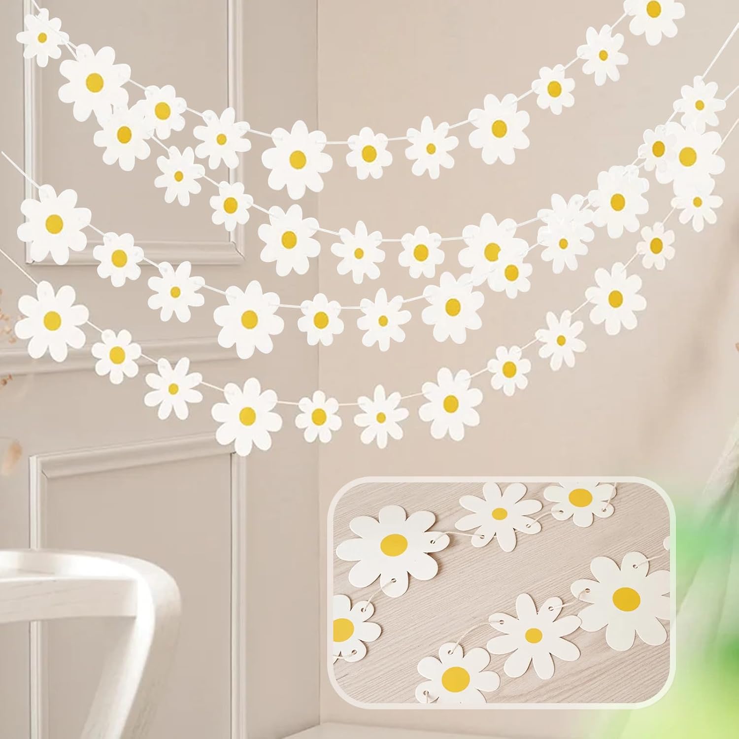 Incantevoli decorazioni di margherite per ogni festa Le nostre ghirlande di margherite lunghe 5 metri sono la decorazione boho perfetta per ogni festa. Con quattro ghirlande per confezione, portano uno scintillio festivo e un'atmosfera allegra alle decorazioni di compleanno dei bambini, alle feste estive e ad altre occasioni. Questa decorazione a margherita dona ad ogni stanza un aspetto incantevole e garantisce momenti indimenticabili. Materiali di alta qualità e durata. Questa ghirlanda di fiori è realizzata in carta di alta qualità, resistente ed ecologica. Ideale come decorazione floreale per la cameretta dei bambini o come decorazione per feste estive, questa ghirlanda offre una bellezza duratura. Sia all'interno che all'esterno, la decorazione delle margherite rimane colorata e attraente, anche dopo un uso ripetuto. Facile da installare e versatile. Con una lunghezza totale di 5 metri e quattro ghirlande in una confezione, questa decorazione a margherita è facile da installare e personalizzare. La ghirlanda di fiori può essere attaccata a pareti, soffitti o finestre ed è ideale per decorazioni di compleanno per bambini, decorazioni boho e molti altri eventi. Questa versatile ghirlanda è un must per ogni festa Decorazione perfetta fai-da-te Le nostre ghirlande di margherite sono ideali per gli appassionati del fai-da-te. Puoi personalizzare la ghirlanda di fiori secondo i tuoi desideri e progettarla in modo creativo. Questa decorazione a margherita è perfetta per progetti creativi e offre numerose possibilità per creare decorazioni uniche e personalizzate per feste estive o decorazioni per la cameretta dei bambini. Usi versatili Che si tratti di decorazioni con margherite per decorazioni di compleanno per bambini, feste estive o come elegante decorazione boho, queste ghirlande possono essere utilizzate in molti modi. Danno ad ogni evento un tocco speciale e attirano davvero l'attenzione. Utilizza la ghirlanda di fiori per giardini, soggiorni o fondali fotografici per creare un'atmosfera invitante e festosa