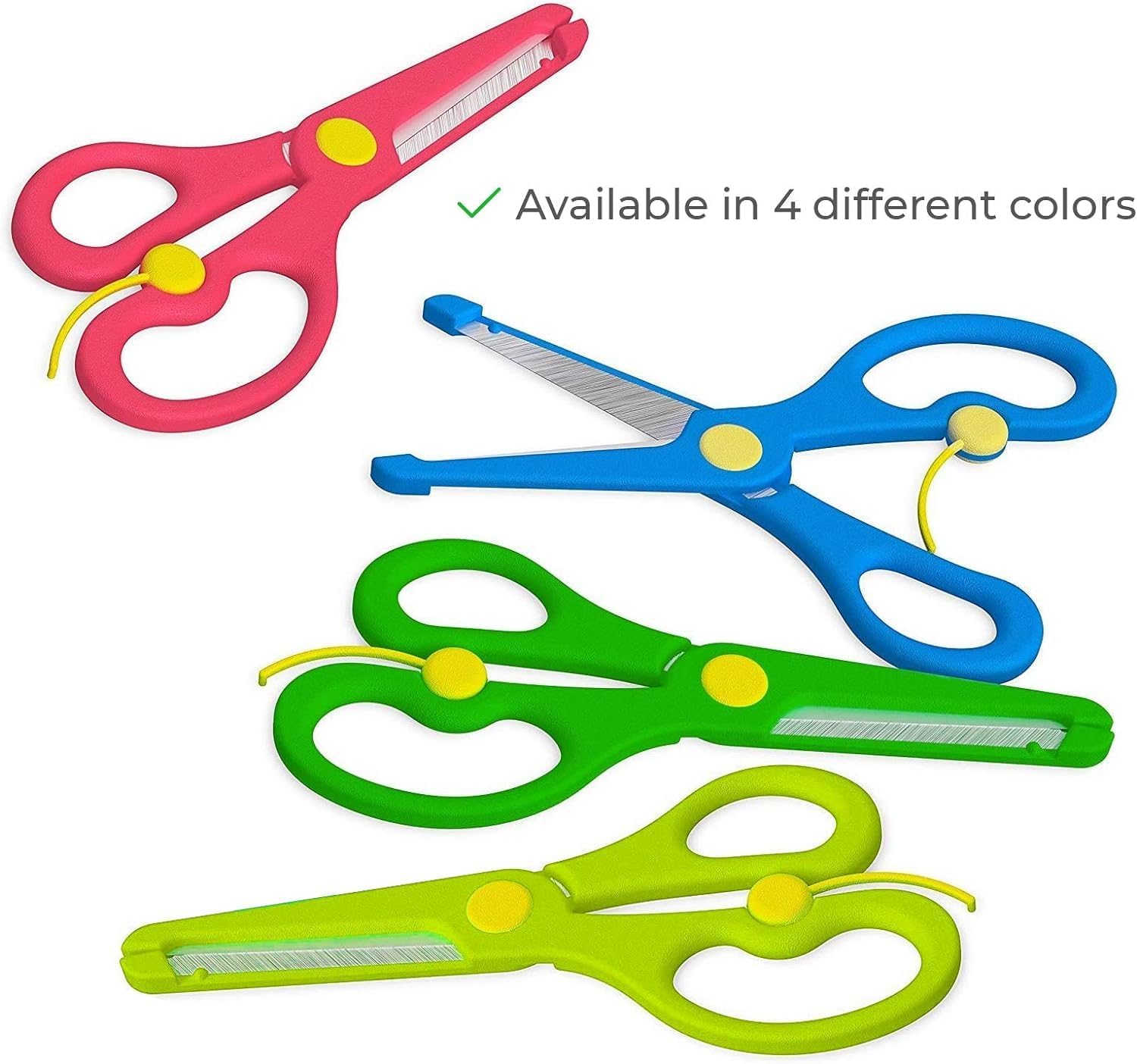 Forbici per bambini blu rosa gialle o verdi oppure disponibili come set di forbici per bricolage. I bambini lo adorano perché il nostro set di forbici rende la lavorazione, il taglio e la sperimentazione facili e interessanti. La leva di addestramento delle forbici di sicurezza apre la lama dopo ogni taglio, insegnando in modo sicuro ai bambini in età prescolare come aprire e chiudere le forbici. Le forbici ergonomiche con impugnatura morbida sono comode per la mano destra e sinistra. Le forbici sicure e facili da usare hanno lame affilate come rasoi per tagli precisi senza pericolo Le forbici per bambini sono tutte realizzate in plastica, un materiale innocuo, e l'affilatura del taglio della carta è come quella delle forbici in metallo, che sono più sicure e durevoli per i bambini Alta sicurezza La punta delle forbici è inoltre progettata con angoli arrotondati e il manico è adatto ai bambini per proteggere la sicurezza di bambini e familiari Adatte a casa, scuola o ufficio, le forbici per bambini di età superiore a 3 anni possono essere utilizzate per tagliare la carta e per l'artigianato