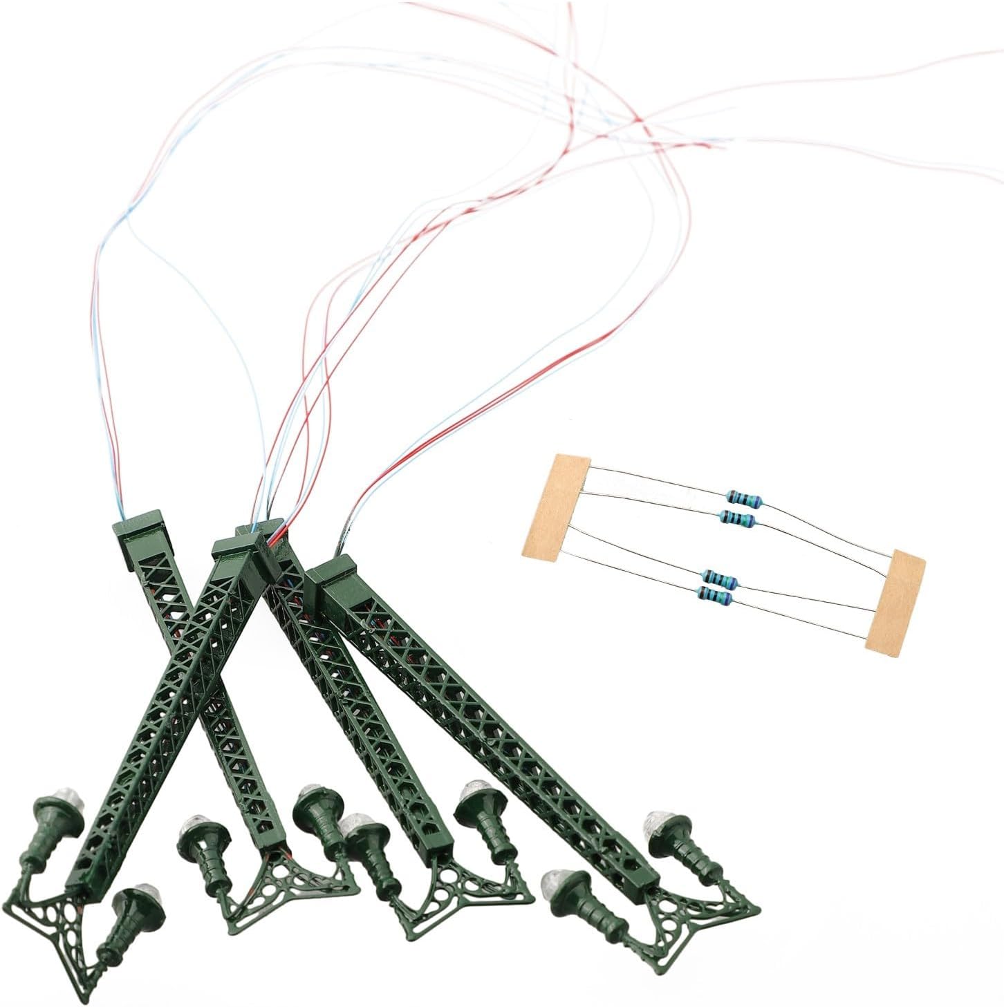【Luci modellistiche ferroviarie】 Queste luci a traliccio sono appositamente progettate per modellismo ferroviario e aggiungono un tocco realistico al tuo mondo in miniatura. 【LED】 Realizzate con LED, queste luci forniscono un'illuminazione brillante e affidabile per il tuo paesaggio ferroviario. 【Tensione adatta】 Queste lampade sono ottimizzate per l'uso con una tensione di 3 V, funzionano correttamente ed evitano danni ai LED. 【Corrente operativa corretta】 Per prestazioni ottimali, è importante applicare la corrente operativa corretta di 20 mA a ciascun LED. 【Scala e materiale】Con una scala 1:160, queste luci sono adatte per i treni modello N. Sono realizzati in materiale metallico per un uso prolungato.