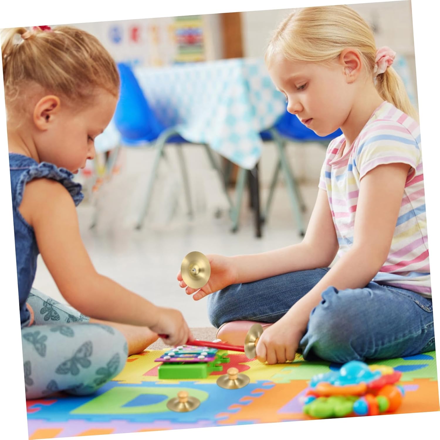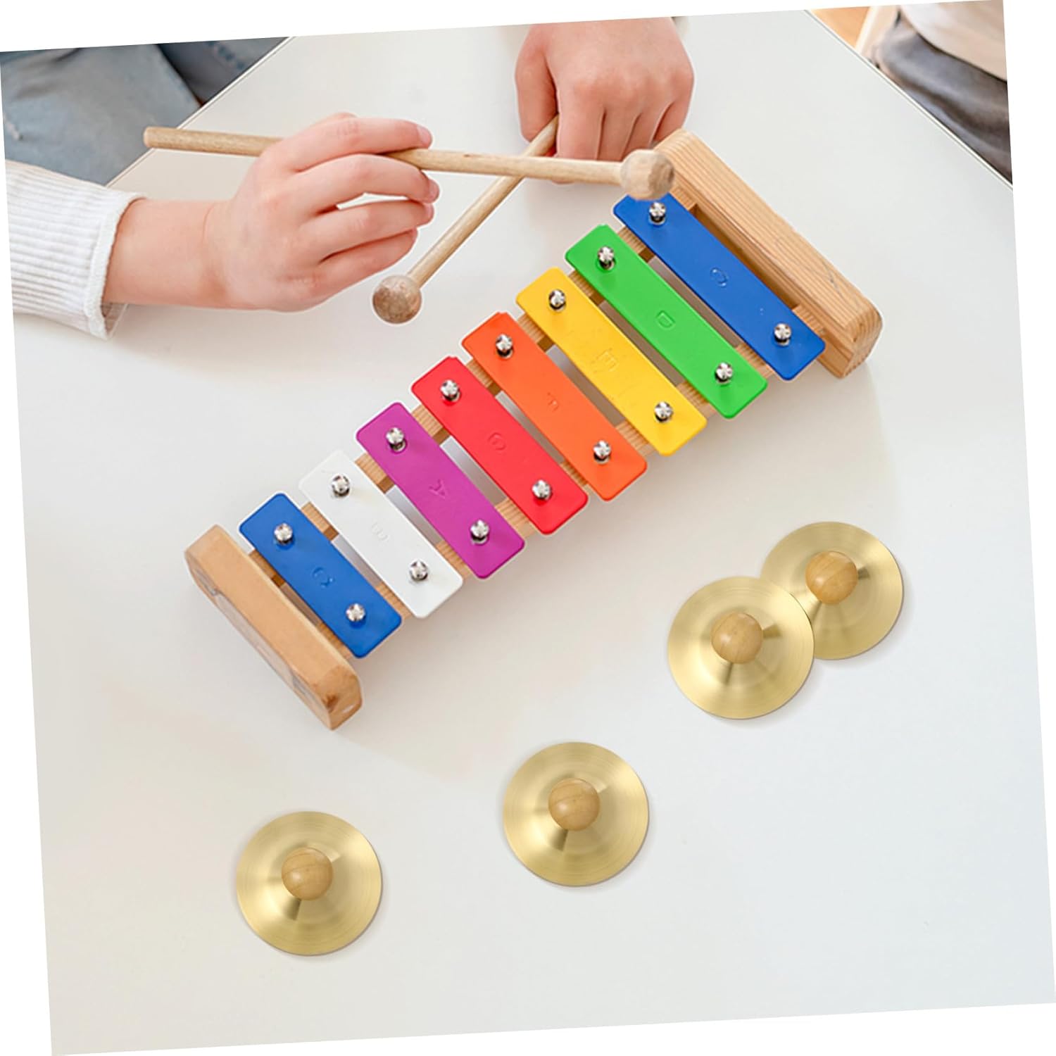 Piatti da dito per: ogni piatto ha un manico in legno, facile da trasportare e comodo da impugnare, piatti per strumenti per bambini: i mini piatti possono aiutare i bambini a sviluppare le loro abilità musicali e coltivare il loro interesse per la musica e gli strumenti a percussione Piatti giocattoli per bambini piccoli: è un buon strumento a percussione, divertente per i bambini e suscitare il loro interesse nell'apprendimento della musica, mini piatti musicali piatti da dito per: ampiamente utilizzati per la danza, spettacoli teatrali, esercizi, intrattenimento per bambini e altro ancora, strumento musicale per piatti per bambini piccoli: ottimo strumento per l'interazione genitore-figlio e l'educazione musicale, aiuta a rafforzare il rapporto tra te e tuo figlio, campanelli musicali per