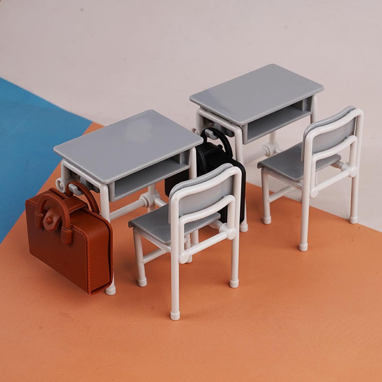 Modello di scrivania e sedia, realistico e adatto per la decorazione della casa delle bambole Con una buona stimolazione e formazione educativa per i bambini, stabilisce le capacità cognitive scolastiche della loro casa delle bambole e promuove un set da gioco modello decorativo, non una vera scrivania e sedia Struttura in plastica, resistente all'usura, sicura per i bambini Adatto per giocare e ottimo anche per le decorazioni della casa delle bambole