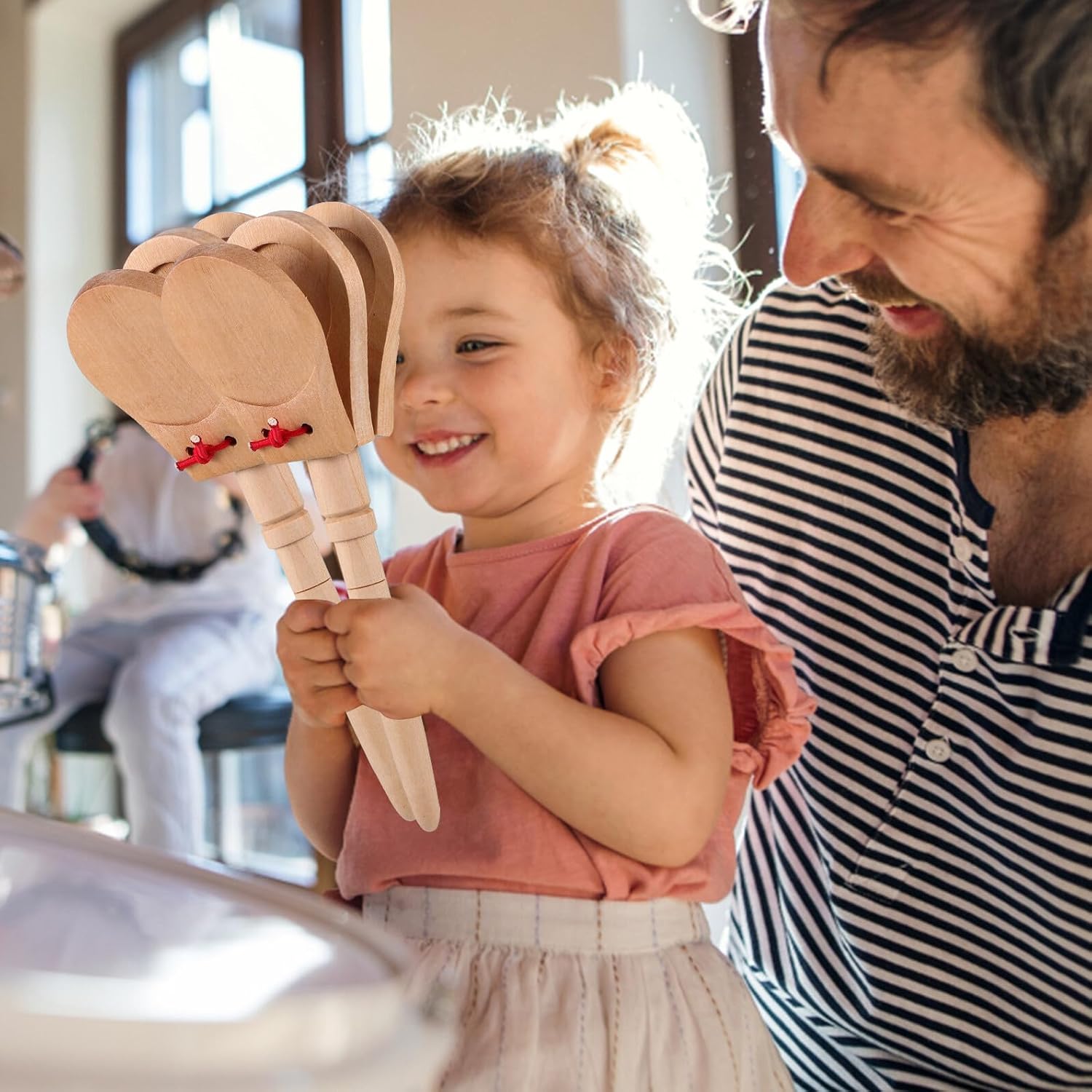 Giocattoli educativi: nacchere portatili sono utili per lo sviluppo degli organi sensoriali, facili da usare, trasportare e anche comode da riporre, nacchere musicali, nacchere per dita, strumenti a percussione Miglioramento delle abilità: queste nacchere possono essere utilizzate per migliorare la coordinazione e promuovere lo sviluppo dell'intelligenza, strumenti musicali per principianti, strumenti a percussione. Queste nacchere in legno sono realizzate con materiali robusti, non facili da deformare o rompere, possono essere riutilizzate e sono durevoli per un uso a lungo termine, strumenti a percussione, piccoli strumenti. Ampia applicazione: gli strumenti musicali possono essere utilizzati come strumenti musicali in classe, adatti per esercitarsi nell'imparare a suonare strumenti a percussione, piccole nacchere e piccoli strumenti musicali. Giocattoli educativi: queste nacchere portatili aiutano a coltivare l'interesse per la musica e possono anche essere un buon giocattolo per l'apprendimento precoce, uno strumento musicale o uno strumento didattico