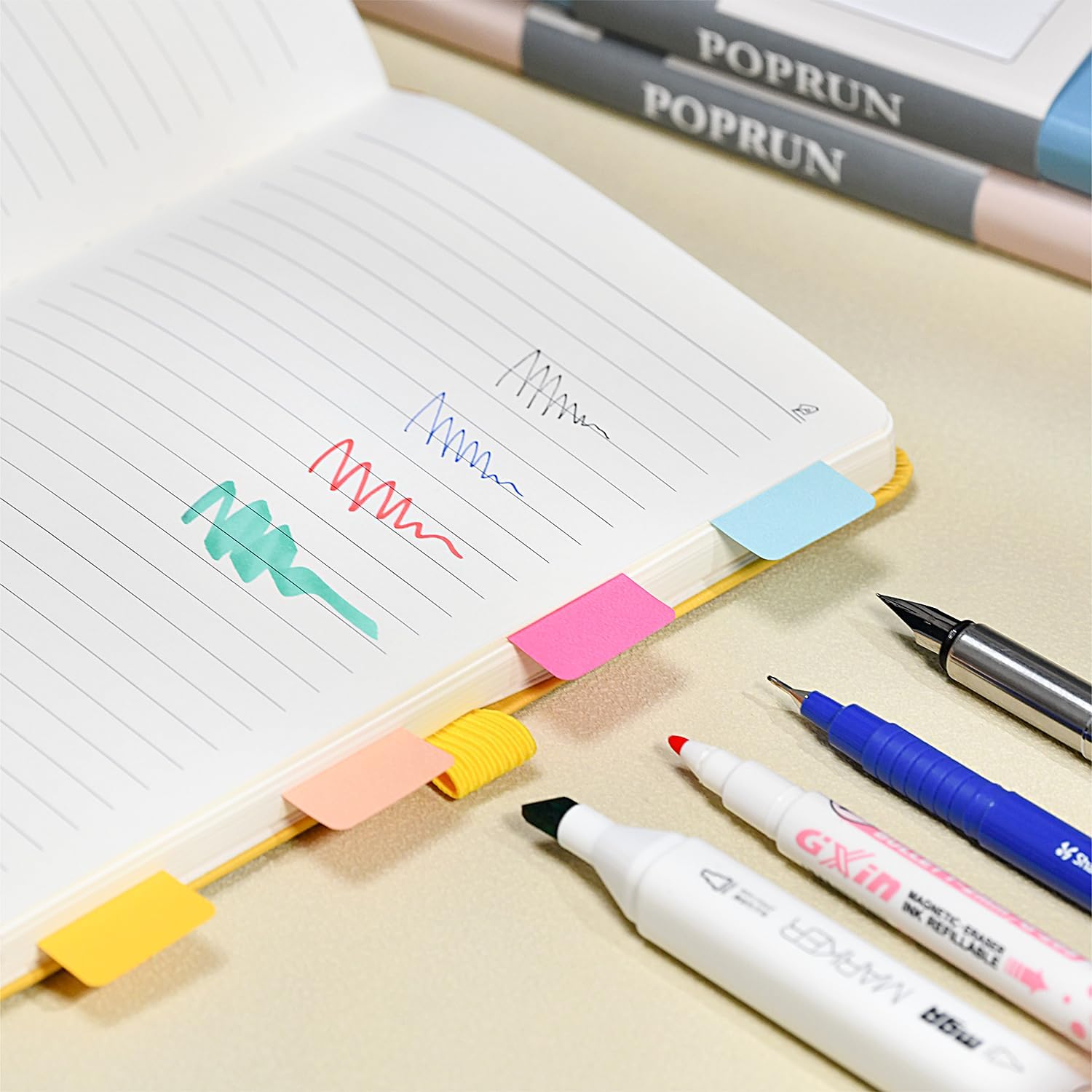 NOTEBOOK PREMIUM A RIGHE ORIZZONTALI: 64/128 pagine a righe orizzontali con area di scrittura standard di 7 mm, in formato A5 13,5 x 21 cm. Le sue dimensioni perfette lo rendono facile da trasportare e riporre in tasca, rendendolo la scelta ideale per gli spostamenti. CARTA DA 120 G/M2 DI ALTA QUALITÀ: questo taccuino è realizzato in carta avorio da 120 G/M2 priva di acidi. Di' addio alla perdita di caratteri e colori e scopri il piacere di scrivere. DESIGN PIATTO: il design piatto a 180° di questo diario semplifica la scrittura e rende più efficiente la presa di appunti. Inoltre, la copertina rigida e gli elastici proteggono i tuoi contenuti e mantengono le pagine piatte. CARATTERISTICHE AGGIUNTIVE: Angoli staccabili, segnalibri a nastro e pagine numerate facilitano la ricerca della data odierna. La tasca espandibile sul retro permette di riporre piccoli oggetti. Inoltre, puoi personalizzare facilmente la copertina e il dorso con le linguette autoadesive. 10 COLORI TRA CUI SCEGLIERE: Disponibile in una varietà di colori vivaci, puoi scegliere quello che meglio si adatta al tuo stile e alla tua personalità.
