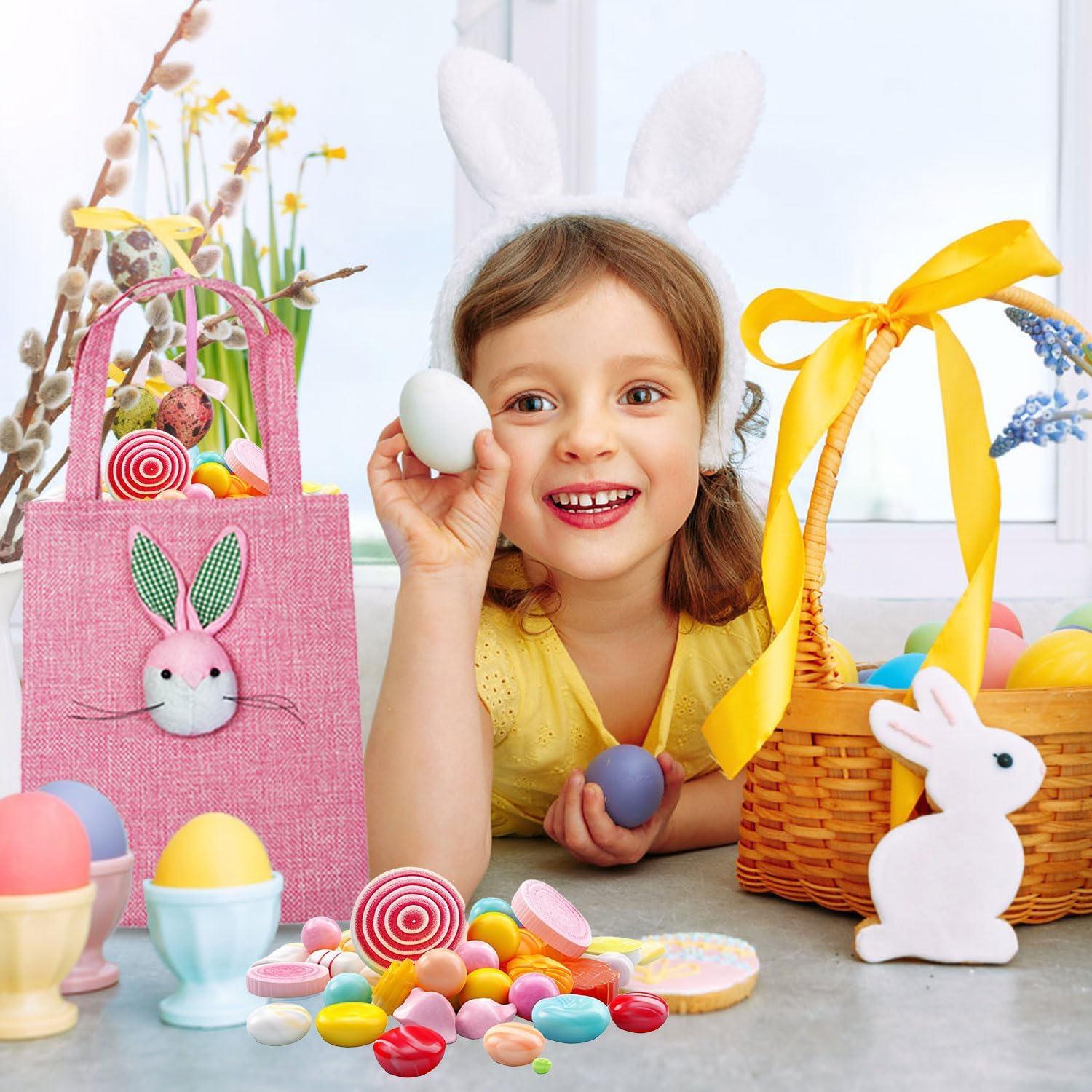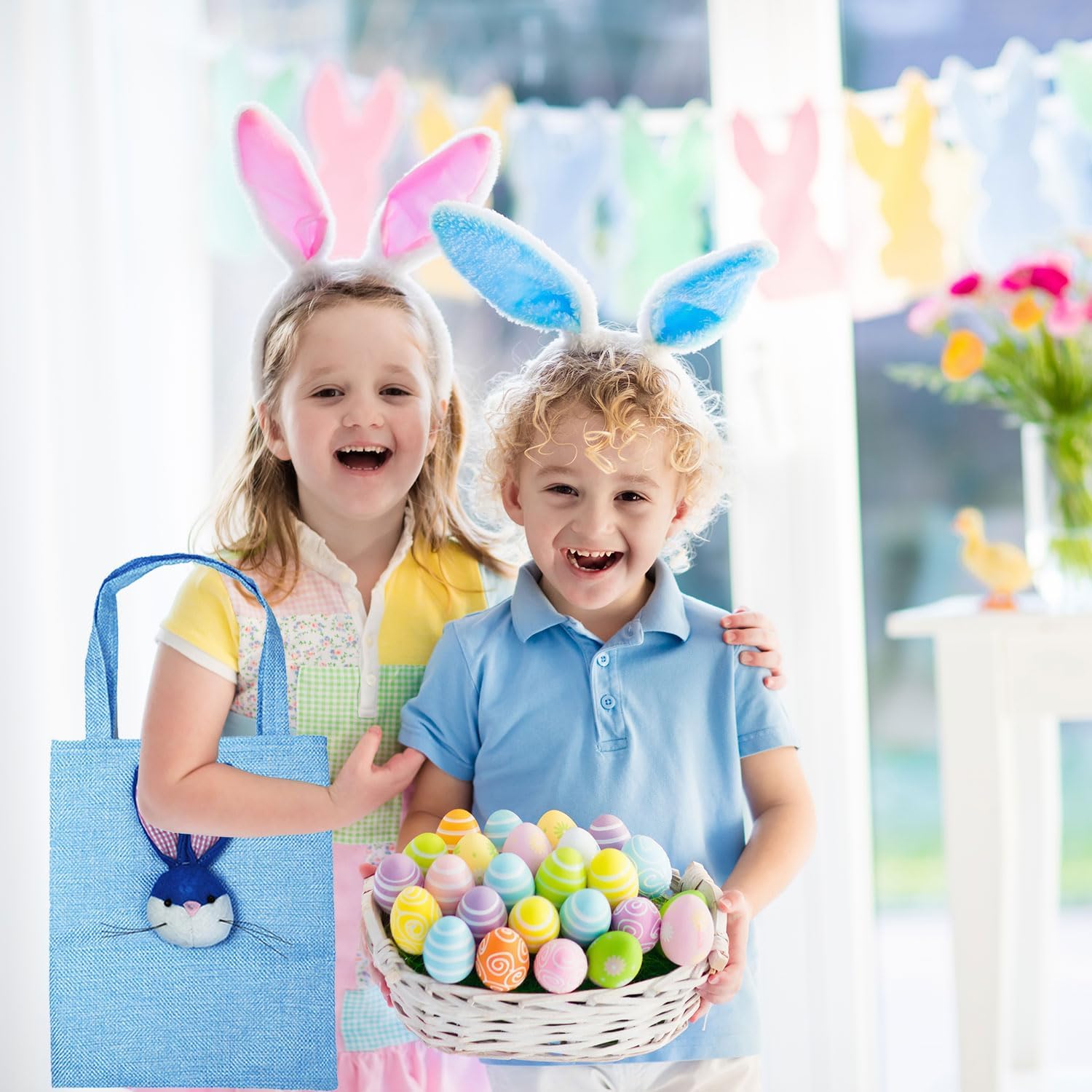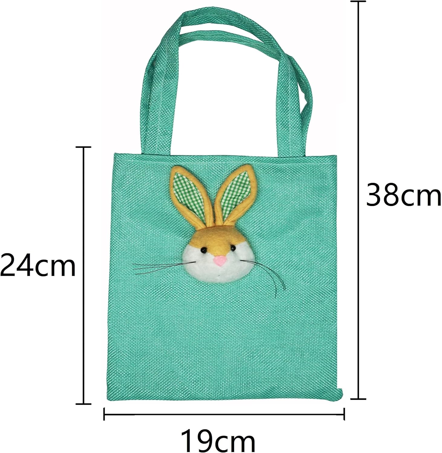 CONFEZIONE DA 4 - Contiene 4 graziose borse effetto iuta in colori pastello (verde chiaro, blu, rosa e giallo). Ogni borsa presenta un motivo a coniglietto cucito in 3D per un tocco festoso. Ottimo per caramelle pasquali, bomboniere o riempitivi per uova di Pasqua! DIMENSIONE PERFETTA - Ogni borsa misura circa 19 cm (L) × 16 cm (L) × 24 cm (A) quando aperta, con un'altezza totale di 38 cm (compresa la maniglia) per un facile trasporto o sospensione. Si abbina al cioccolato, ai piccoli giocattoli, alle uova di Pasqua e altro ancora! ADORABILE DESIGN CONIGLIETTO 3D - Ogni borsa presenta un simpatico coniglietto cucito per una consistenza primaverile, combinato con tenui colori pastello (verde chiaro/blu/rosa/giallo) che si abbinano perfettamente alle decorazioni pasquali e ai temi delle feste. QUALITÀ PREMIUM - Realizzato al 100% in poliestere di alta qualità con un aspetto di iuta (più morbido della vera iuta!). Durevole ma delicato, senza bordi sfilacciati: sicuro per i bambini e riutilizzabile anno dopo anno! PERFETTI PER REGALI E CELEBRAZIONI DI PASQUA - Queste borse versatili sono perfette per riempire cestini, bomboniere o contenitori di caramelle. Ideale per regali in classe, premi per la caccia alle uova di Pasqua o decorazioni per la tavola: rendere i regali facili e festosi!
