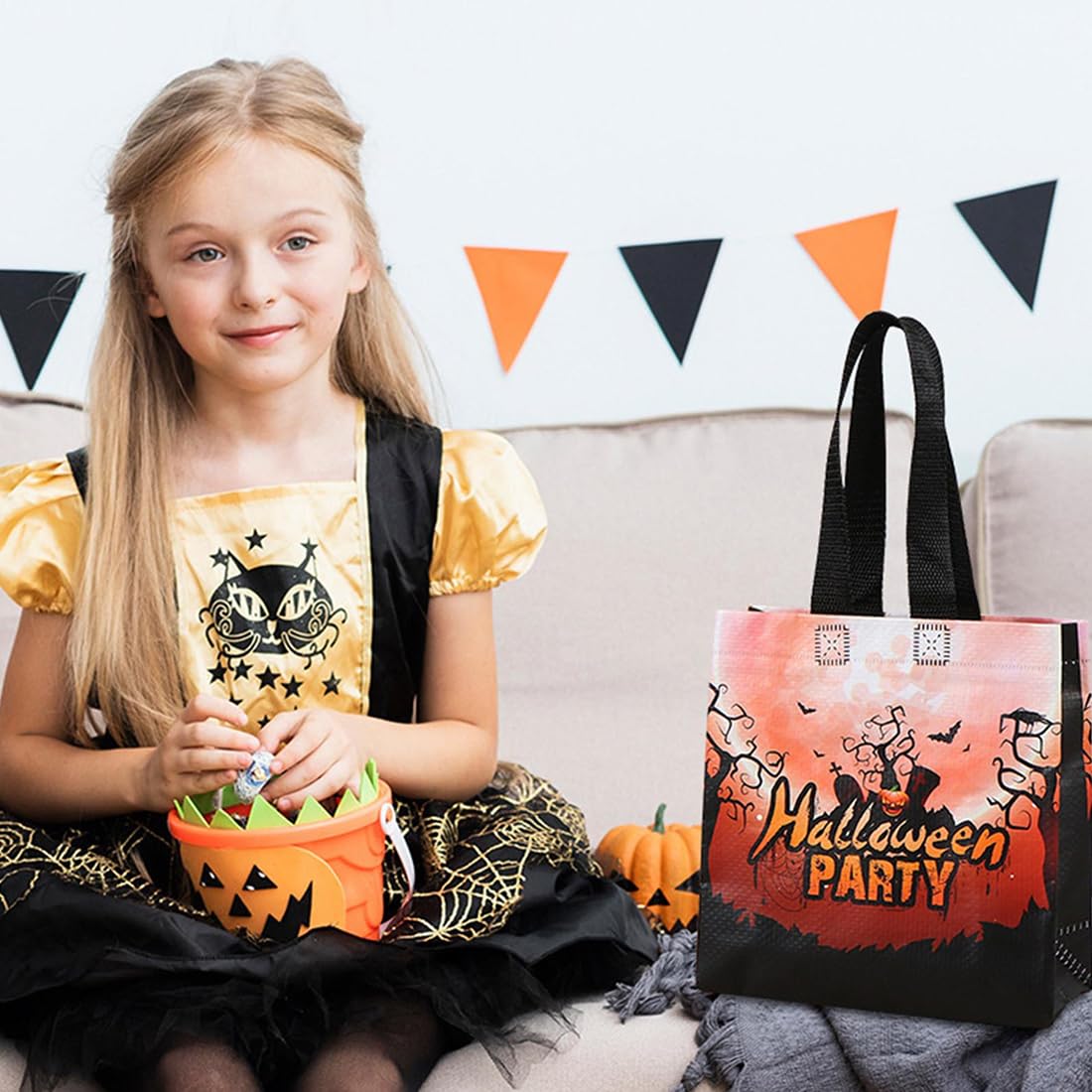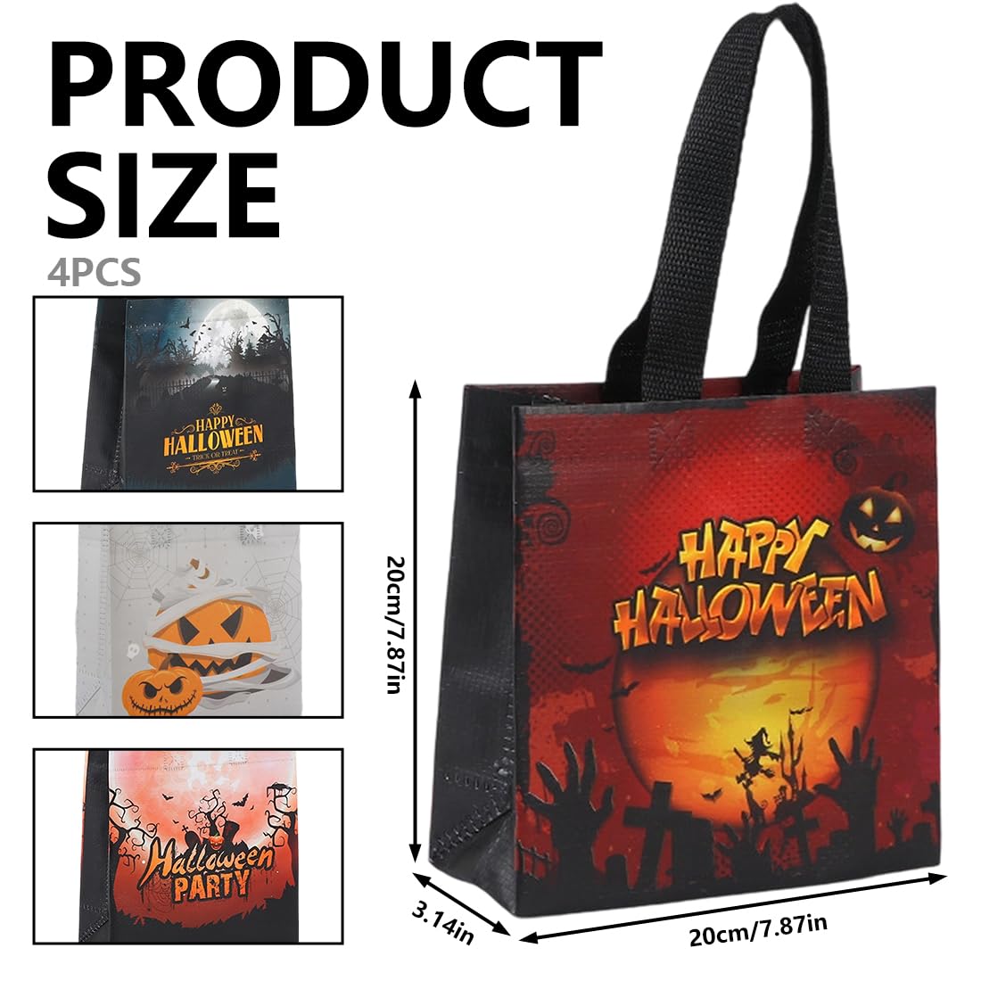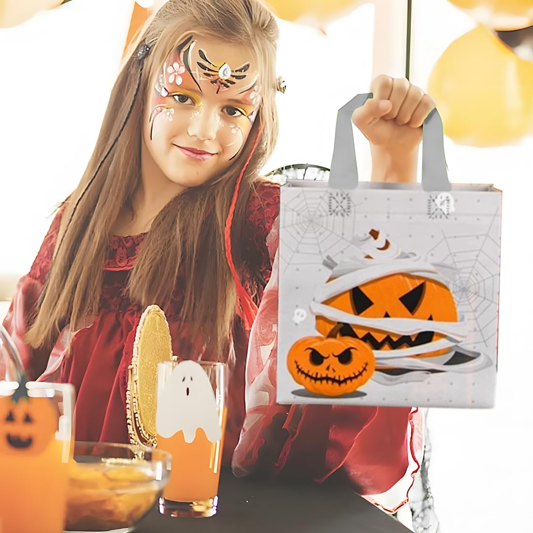 Motivo di Halloween: stampato con 4 diversi motivi di Halloween come zucche, gatti, luna, ragni e pipistrelli. Queste borse sono perfette per le feste di Halloween e aggiungono un tocco squisito e festoso alla tua decorazione. Ideale come confezione regalo o sacchetto di caramelle per compleanni e feste di Halloween. Materiale di alta qualità: realizzato in resistente tessuto non tessuto, riutilizzabile e di lunga durata. Queste borse sono facili da trasportare e possono essere piegate per risparmiare spazio quando non vengono utilizzate. Perfette per un uso sostenibile e una facile conservazione. Dimensioni pratiche: misurando 20 x 20 x 8 cm e dotate di comode maniglie, queste borse sono della dimensione ideale per conservare snack, caramelle, giocattoli e piccoli regali per dolcetto o scherzetto di Halloween. Facile da trasportare e perfetto per bambini e adulti. Utilizzo versatile: queste borse di Halloween sono perfette per conservare snack, giocattoli, pastelli e altro ancora. Perfetto per feste di Halloween, dolcetto o scherzetto, scuola, asilo e altre occasioni speciali. Combinali con costumi e giochi per un'esperienza indimenticabile Atmosfera festosa: queste vivaci e carine borse di Halloween aggiungeranno colore e gioia alle tue celebrazioni. Sono ideali per rendere le feste ancora più festose. Perfetto per bambini e adulti che vogliono godersi un momento di Halloween felice e indimenticabile