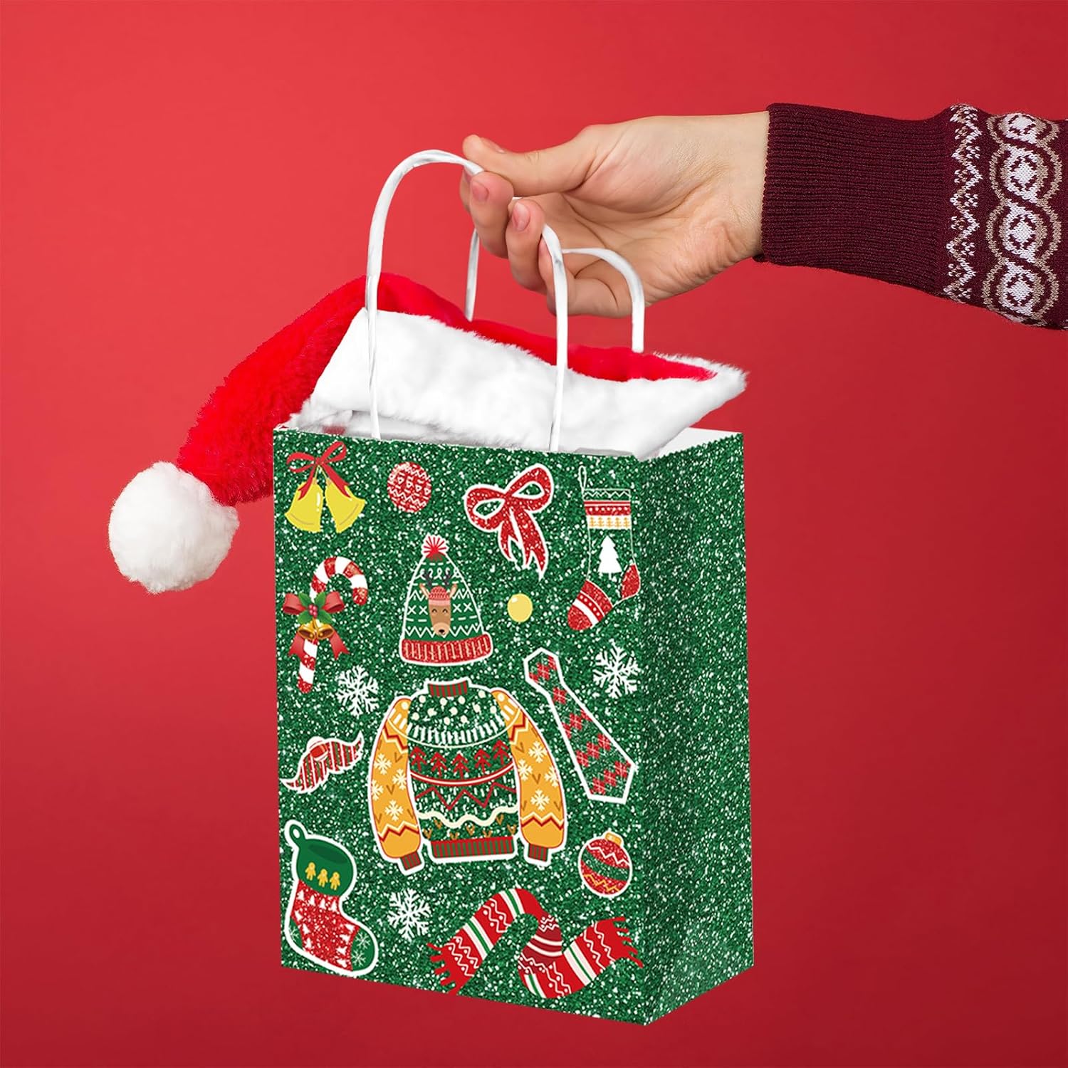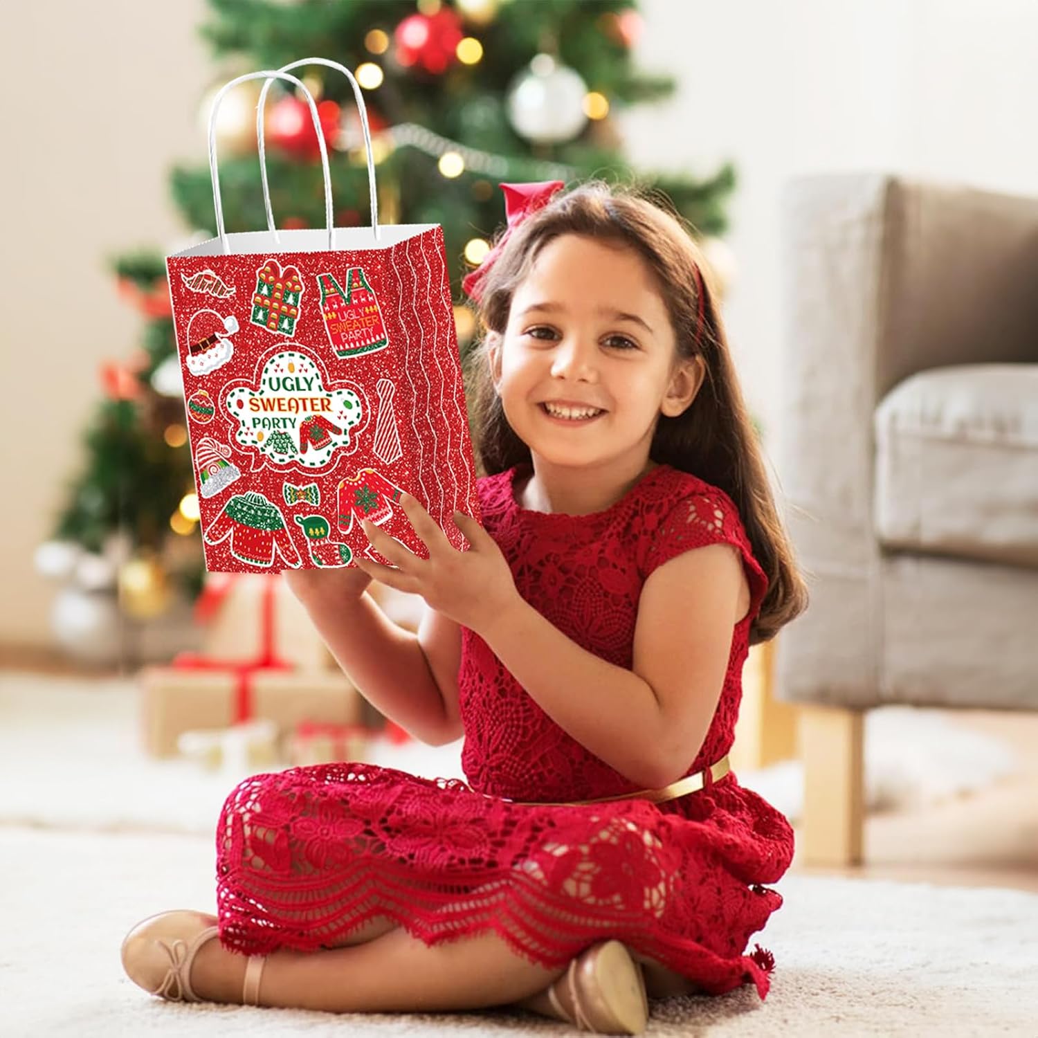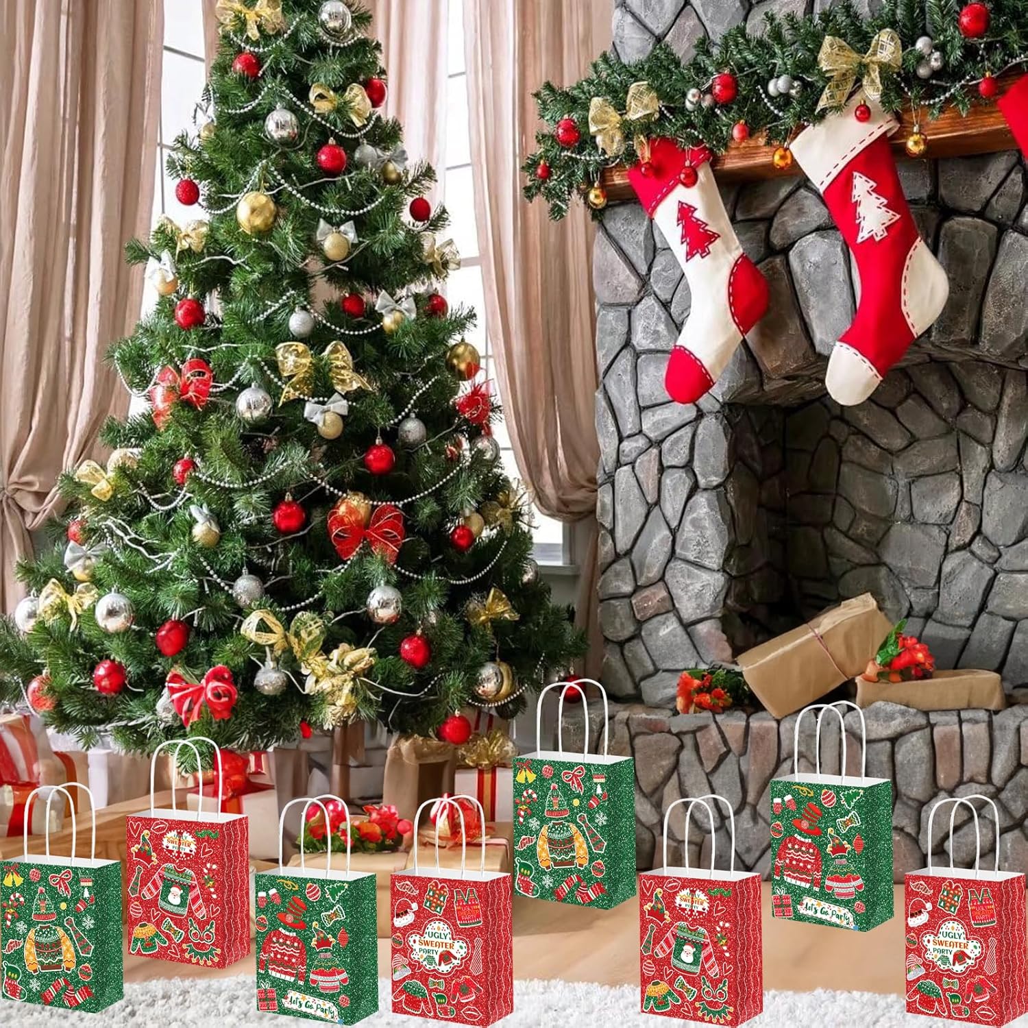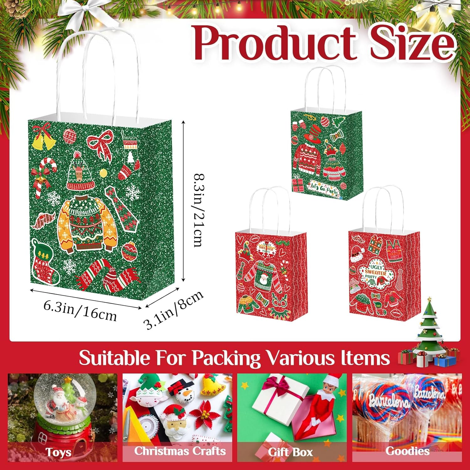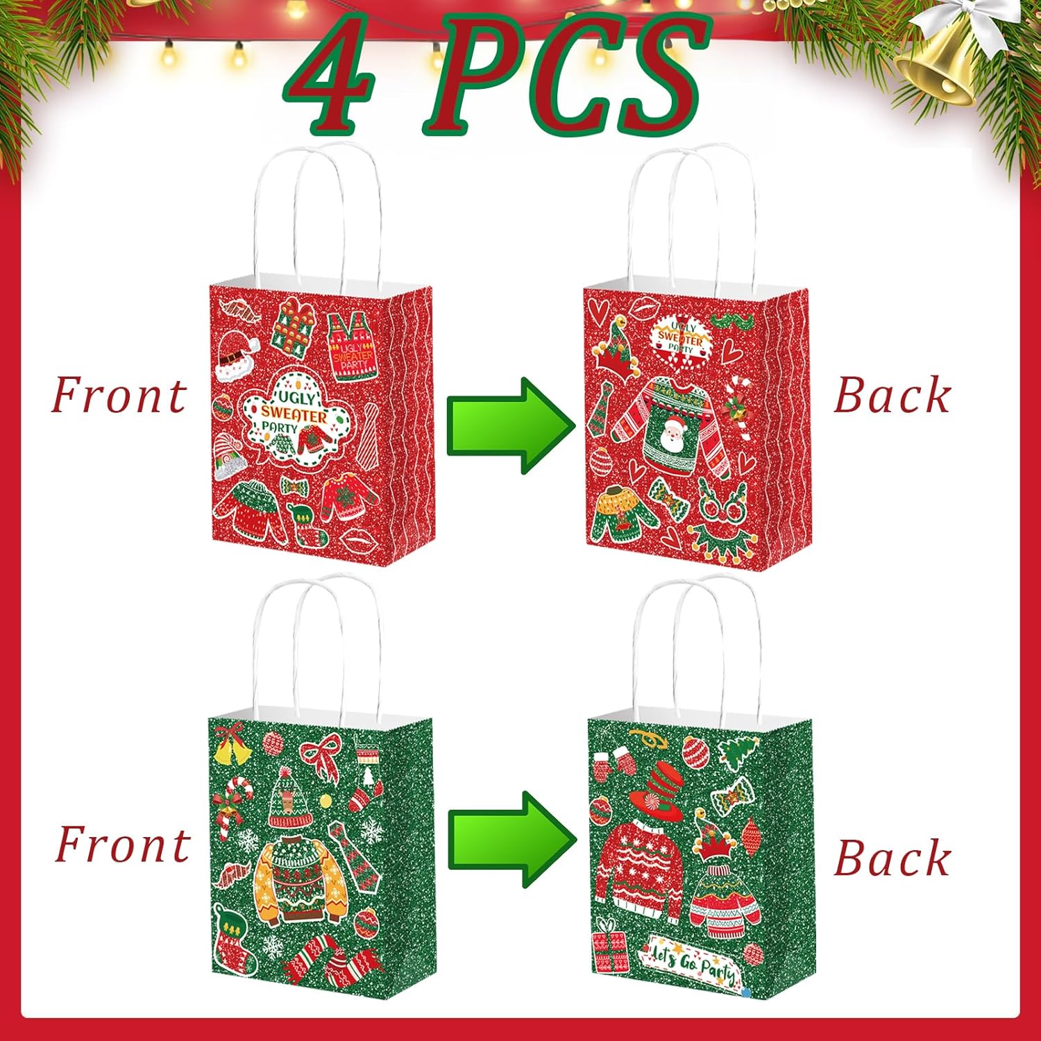 Confezione da 4 sacchetti regalo di carta regalo di Natale con manici, sacchetti regalo di Natale in carta Kraft, sacchetti regalo di caramelle natalizie per bambini, compleanni, vacanze, articoli per feste. Tipo di prodotto: confezioni regalo per farmacia.