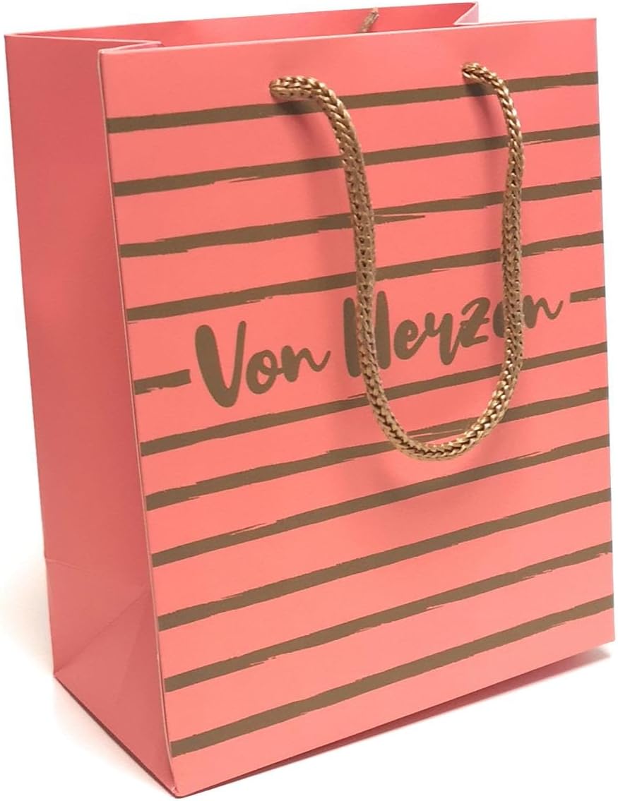 4 sacchetti regalo - dal cuore - persona preferita - set composto da: 1 sacchetto crema - oro / dal cuore, 1 sacchetto rosa - marrone / dal cuore, 1 sacchetto rosso salmone - verde oliva / persona preferita, 1 sacchetto nero - oro / persona preferita Dimensioni: 23 x 18 x 10 cm ciascuno + gancio realizzato con cordone intrecciato colorato