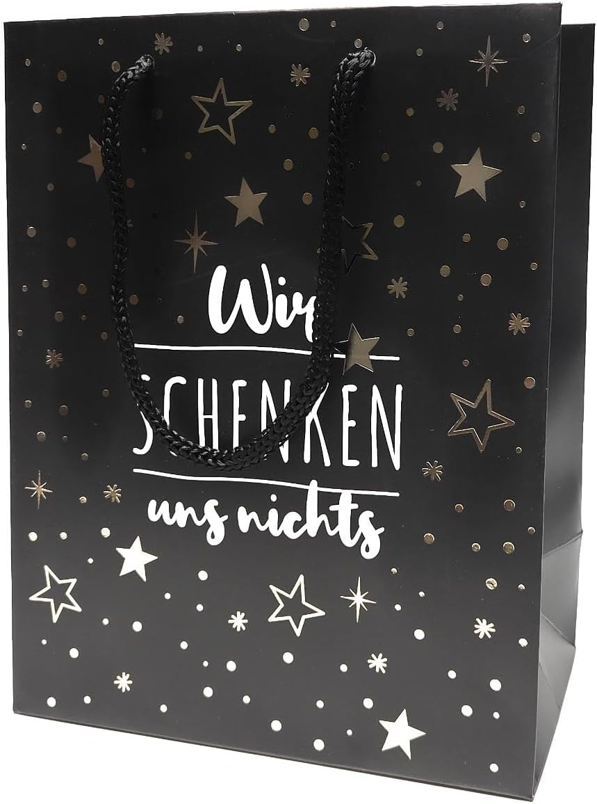4 sacchetti regalo - Non ci regaliamo niente - set di stelle composto da: 1 sacchetto ciascuno beige - tortora, viola - oro, blu - oro e nero - oro Dimensioni: ciascuno 23 x 18 x 10 cm + gancio / corda per il trasporto in corda intrecciata colorata