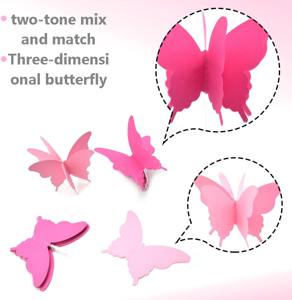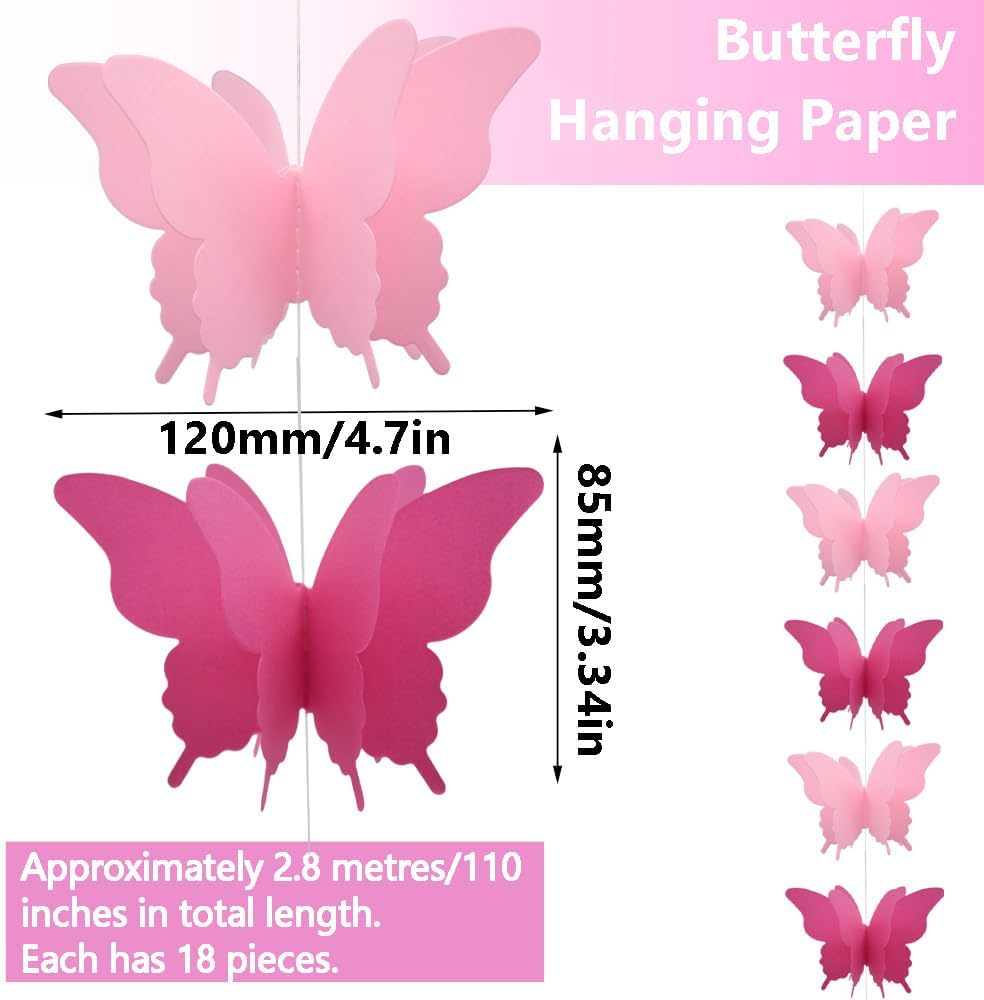 ❀ Decorazione da appendere per striscioni a farfalla con stamina di farfalle 3D in carta di alta qualità ❀ Materiale: le farfalle di carta sono realizzate con carta di alta qualità, sicure ed ecologiche, colorate e realistiche. ❀ Dimensioni: la dimensione di una singola farfalla è di circa 12*8,5 cm/4,7*3,3 pollici (L*P), la lunghezza totale di ogni banner con 18 farfalle è di circa 2,8 m/110 pollici. ❀ Confezione: banner a farfalla da 4 pezzi (18 farfalle di carta per banner); Colore: rosa. ❀ Applicazioni: le ghirlande di farfalle di carta possono essere utilizzate per decorare feste, matrimoni, compleanni, stanze, stanze per bambini e fondali per servizi fotografici.