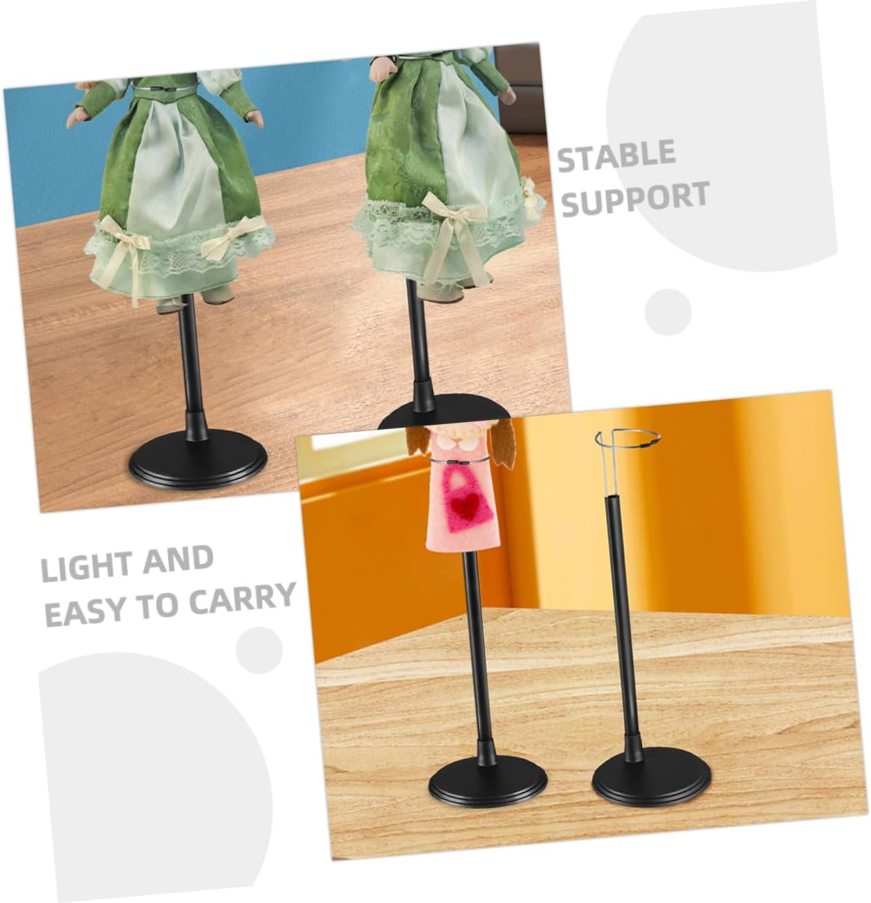 : Realizzato in materiali, questo supporto fornisce una base stabile e sicura, garantendo che i tuoi oggetti da collezione siano ben supportati. supporto per bambola verticale, supporto per bambola Presentazione versatile: figure ideali, giocattoli di peluche e altro ancora. Questo supporto offre una soluzione versatile per organizzare ed esporre la tua collezione, struttura porta bambola, supporto per borsetta da scrivania. Materiale: questo supporto per bambole è realizzato con materiali robusti e fornisce una base stabile e sicura in modo che i tuoi oggetti da collezione siano ben supportati e protetti. Forte e stabile: questo supporto realizzato con materiali robusti assicura che le tue bambole e le tue figure stiano in posizione verticale e sicura, prevenendo cadute accidentali. Elegante: il colore nero e il design pulito garantiscono un aspetto moderno ed elegante e migliorano l'attrattiva visiva degli oggetti esposti, degli accessori per action figure e dei contenitori per animali di peluche