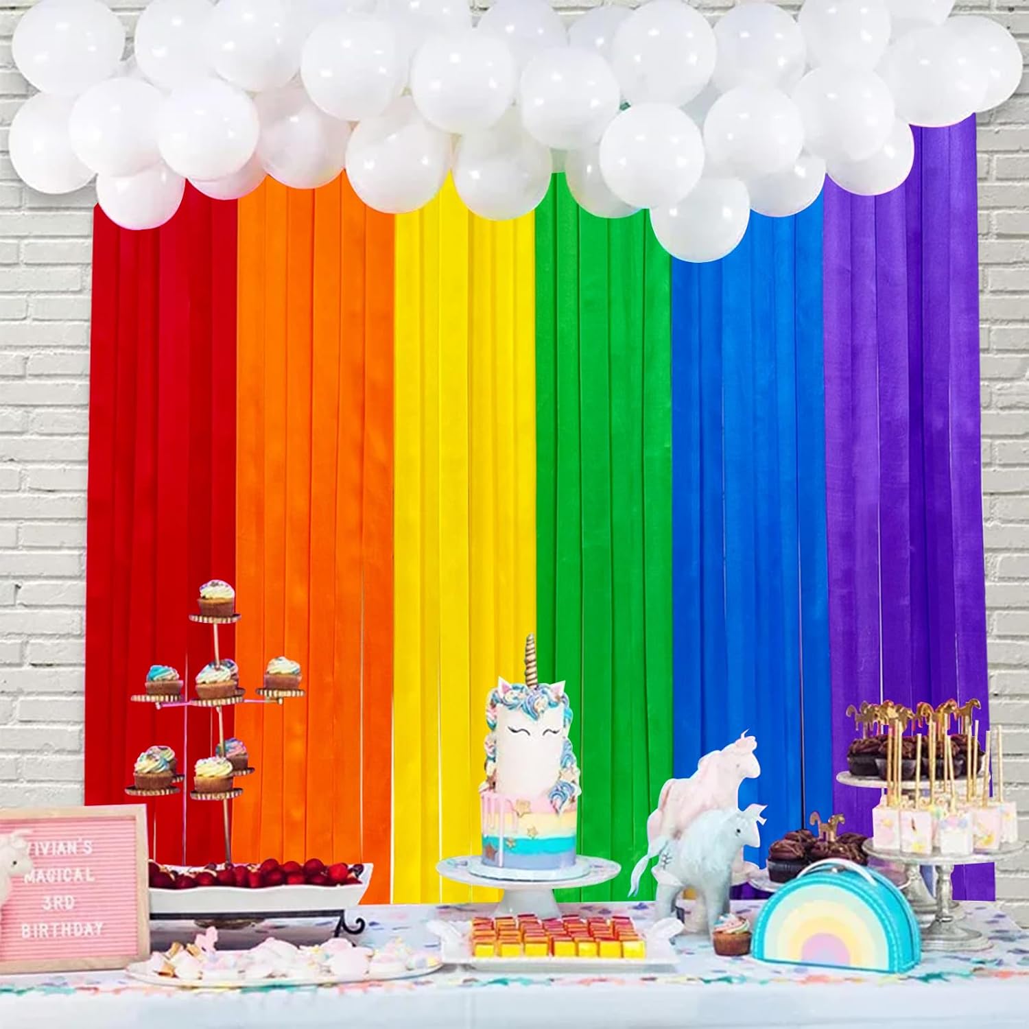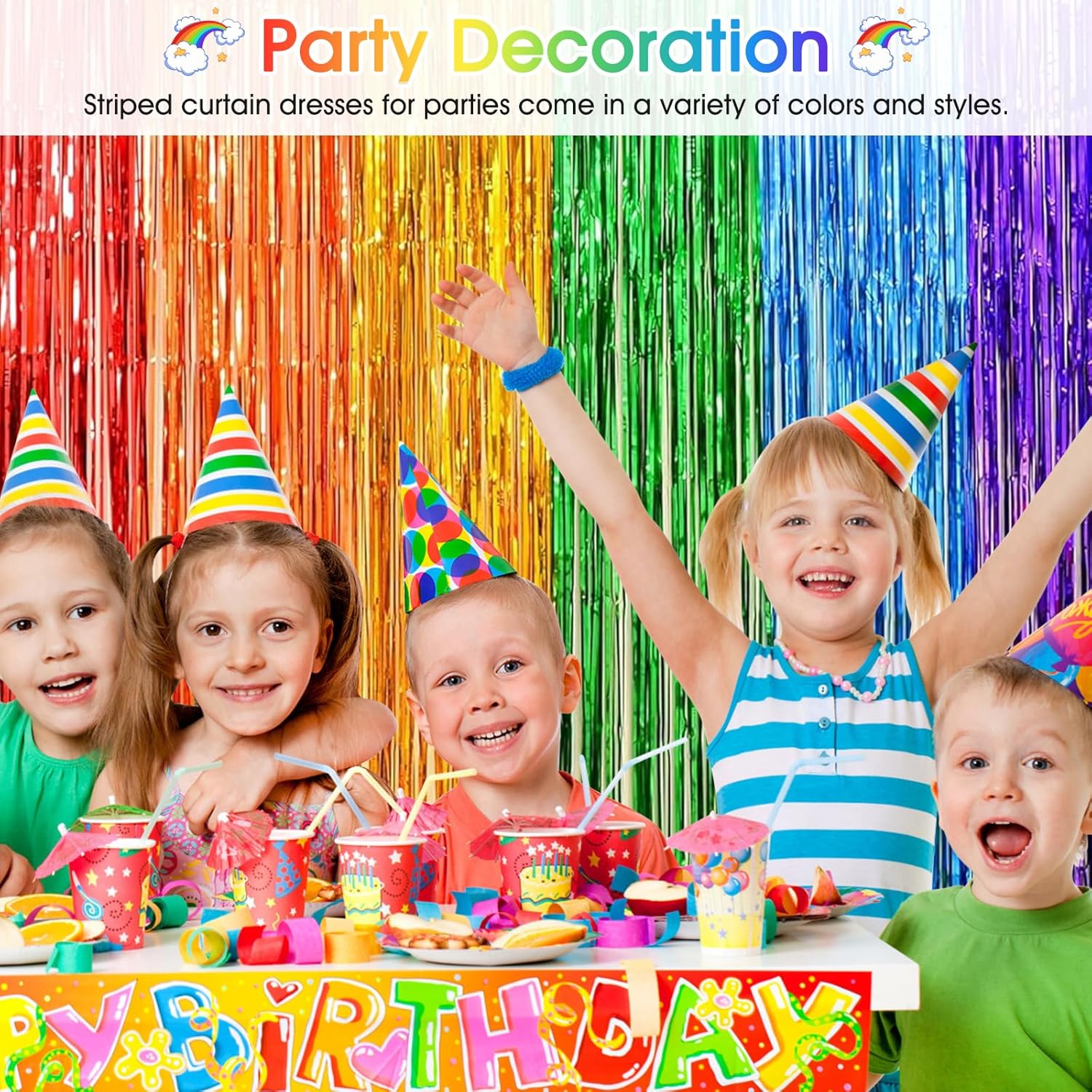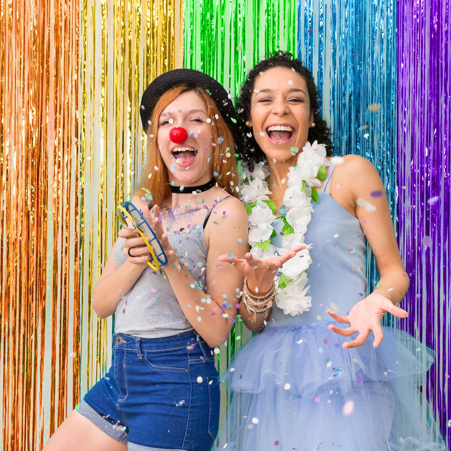 Decorazione per feste da 10 pezzi: il set contiene 4 glitter arcobaleno in plastica nelle dimensioni 1 m x 2 m e 6 nastri per mascheratura arcobaleno nelle dimensioni 3,5 cm x 10 m (un rotolo ciascuno nei colori rosso, arancione, giallo, verde, blu e viola). Materiale sicuro e durevole: la tenda tinsel arcobaleno glitter è realizzata in plastica di alta qualità, sicura e durevole. I colori sono uniformi e non sbiadiscono, mantenendo quindi la loro brillantezza a lungo. I nastri crespi colorati sono realizzati con carta crespa ecologica disponibile in sei colori accattivanti. Facile da installare: basta staccare il nastro adesivo e attaccare queste vivaci tende arcobaleno nella posizione desiderata. Aderisce saldamente e può essere rimosso senza lasciare residui: facile e comodo da usare. Nastri per mascheratura arcobaleno: questi nastri di carta multicolore possono essere piegati, annodati, incollati, appesi e tagliati in qualsiasi forma. Sono ideali per una varietà di lavori artigianali e possono abbellire la tua casa in modo creativo. DECORAZIONE ACCATTIVANTE: queste tende e nastri colorati con glitter metallici sono un'ottima aggiunta alle pareti a tema o agli sfondi delle feste. Brillano sotto le luci delle feste e sono perfetti per decorazioni di carnevale, fondali scenici, fondali fotografici, decorazioni murali per ufficio, feste di compleanno e molto altro ancora. La combinazione di rosso, arancione, giallo, verde, blu e viola ti offre una festa per gli occhi!