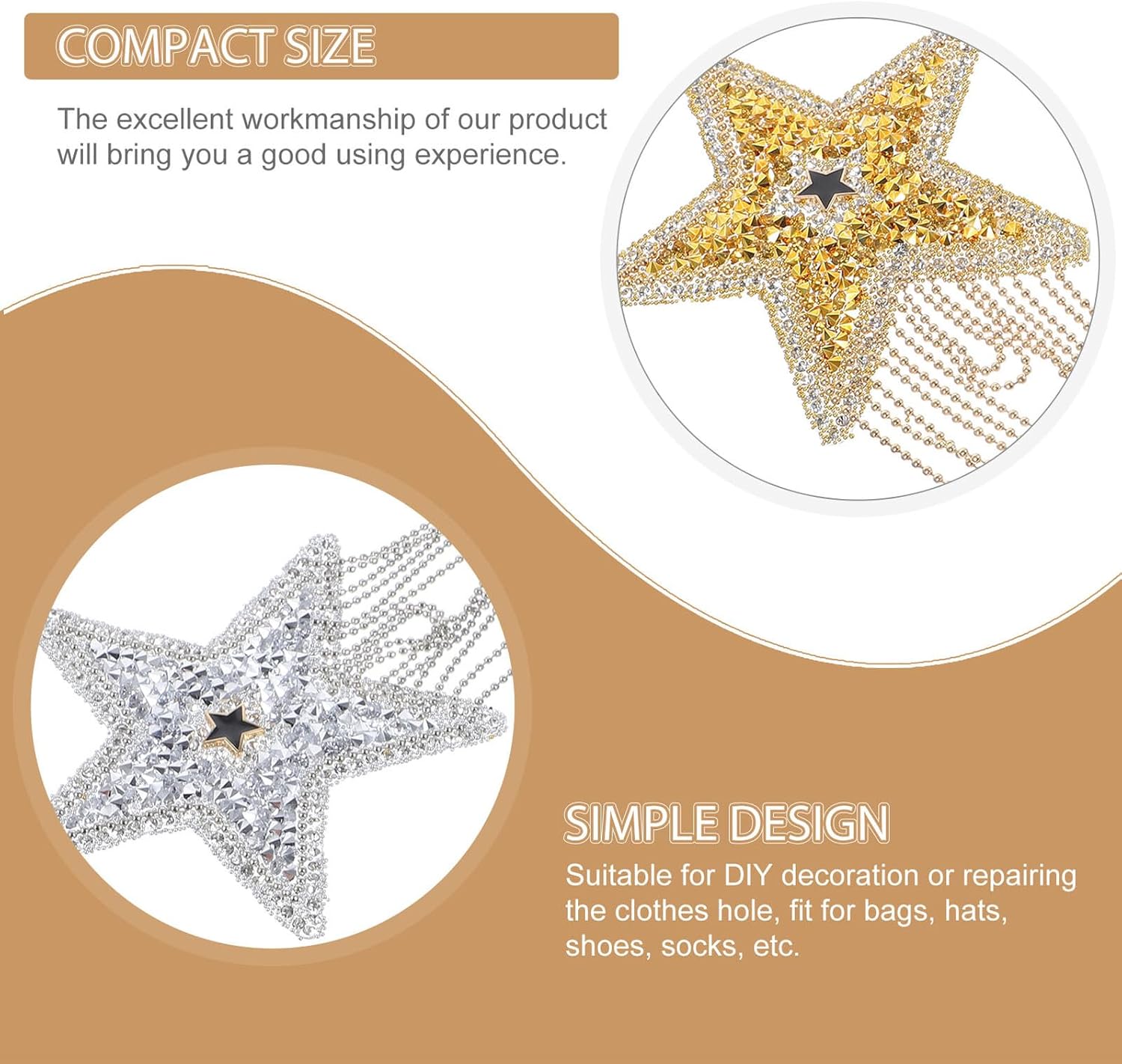 Simpatiche toppe: facili da usare e applicare, versatili per abbigliamento, giacche, magliette, pantaloni, ecc., anche per toppe per cappelli fai-da-te. Toppe: le toppe a stella sono disegnate a forma di stella, la superficie è decorata con strass e la parte inferiore è decorata con nappe di perle. Brillano e attirano immediatamente l'attenzione, distinguendosi dalla massa. Toppe applicate per abbigliamento Applicazioni applicate per abbigliamento: ottima fattura e materiali strass garantiscono durata e praticità; Toppe per abbigliamento Toppe per abbigliamento - Adatte per decorazioni fai da te o per riparare buchi negli indumenti, adatte per borse, cappelli, scarpe, calzini, ecc., Toppe compatte per abbigliamento Toppe multifunzionali per abbigliamento - L'eccellente fattura del nostro prodotto ti fornirà toppe di alta qualità per decorare i tuoi vestiti