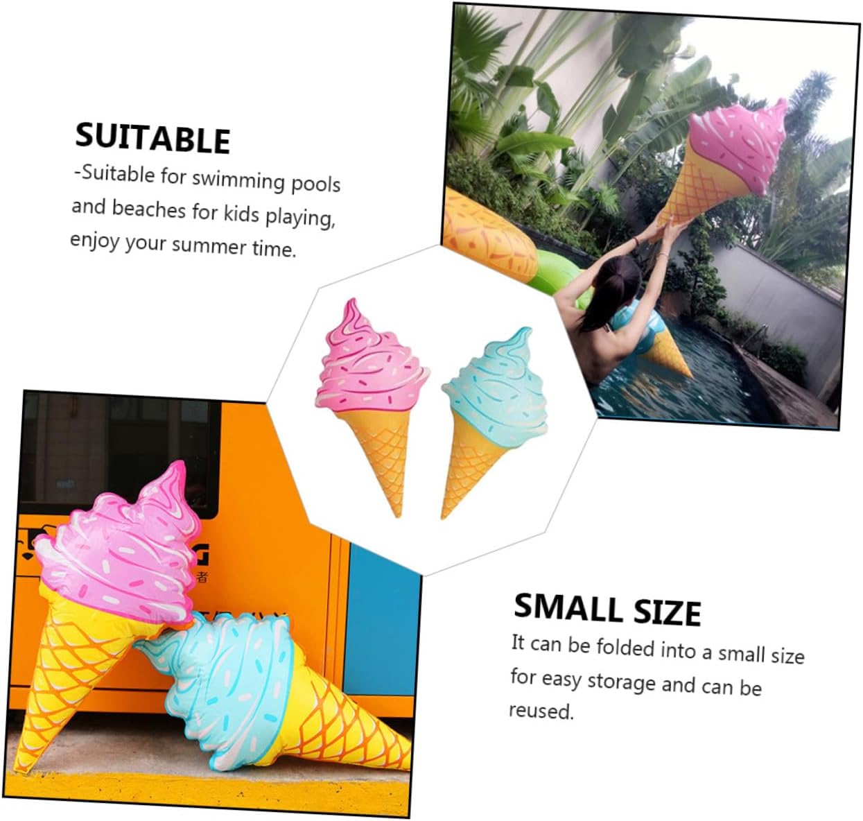 Anello da nuoto - Il modello del gelato è bello e rinfrescante, pieno di materiale in PVC, resistente, anelli da nuoto per piscine Giochi d'acqua per - Puoi regalarlo alla tua famiglia e ai tuoi amici e goderti la vacanza con loro Per - Questo set di gelato gonfiabile è un must per la tua festa! Prendilo e non te ne pentirai!,Aiuti al galleggiamento per gelato galleggiante - Non occupano molto spazio dopo lo sgonfiaggio, puoi riporli e trasportarli facilmente, Oggetti di scena gonfiabili per foto di gelato in PVC - Gli adulti possono usarli, adatti a tutti i tipi di persone, semplici e facili da usare, accessori per piscina