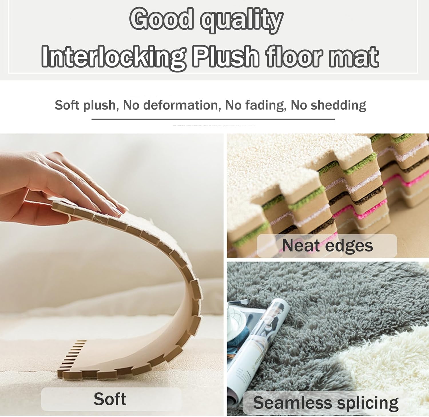【Costruzione morbida e durevole】 Realizzati con schiuma EVA e morbido peluche, questi tappeti resistono allo spargimento, offrono morbidezza accogliente e includono strisce laterali abbinate per un posizionamento sicuro e senza spazi nelle aree ad alto traffico. 【Set di copertura totale regolabile】 I tappetini da 40 pezzi da 1 cm (0,4 pollici) spessi 12x12 pollici (30,5x30,5 cm) consentono una regolazione flessibile della quantità, ideale per la copertura di ampie aree in sale giochi o soggiorni con layout personalizzabili. 【Assemblaggio e conservazione in stile puzzle】 Il design leggero ad incastro consente una rapida installazione e un facile smontaggio, piegandosi in modo compatto per risparmiare spazio quando non in uso. 【Manutenzione senza problemi】 La superficie durevole resiste all'aspirazione o al risciacquo con acqua, è sufficiente asciugare all'aria in un'area ventilata per una pulizia comoda e rapida adatta alle case affollate. 【Comfort domestico versatile】 Crea pavimenti morbidi e protettivi per sale giochi, soggiorni o camere da letto, migliorando il comfort per il riposo, la socializzazione o le attività leggere con un fascino decorativo elegante e neutro.