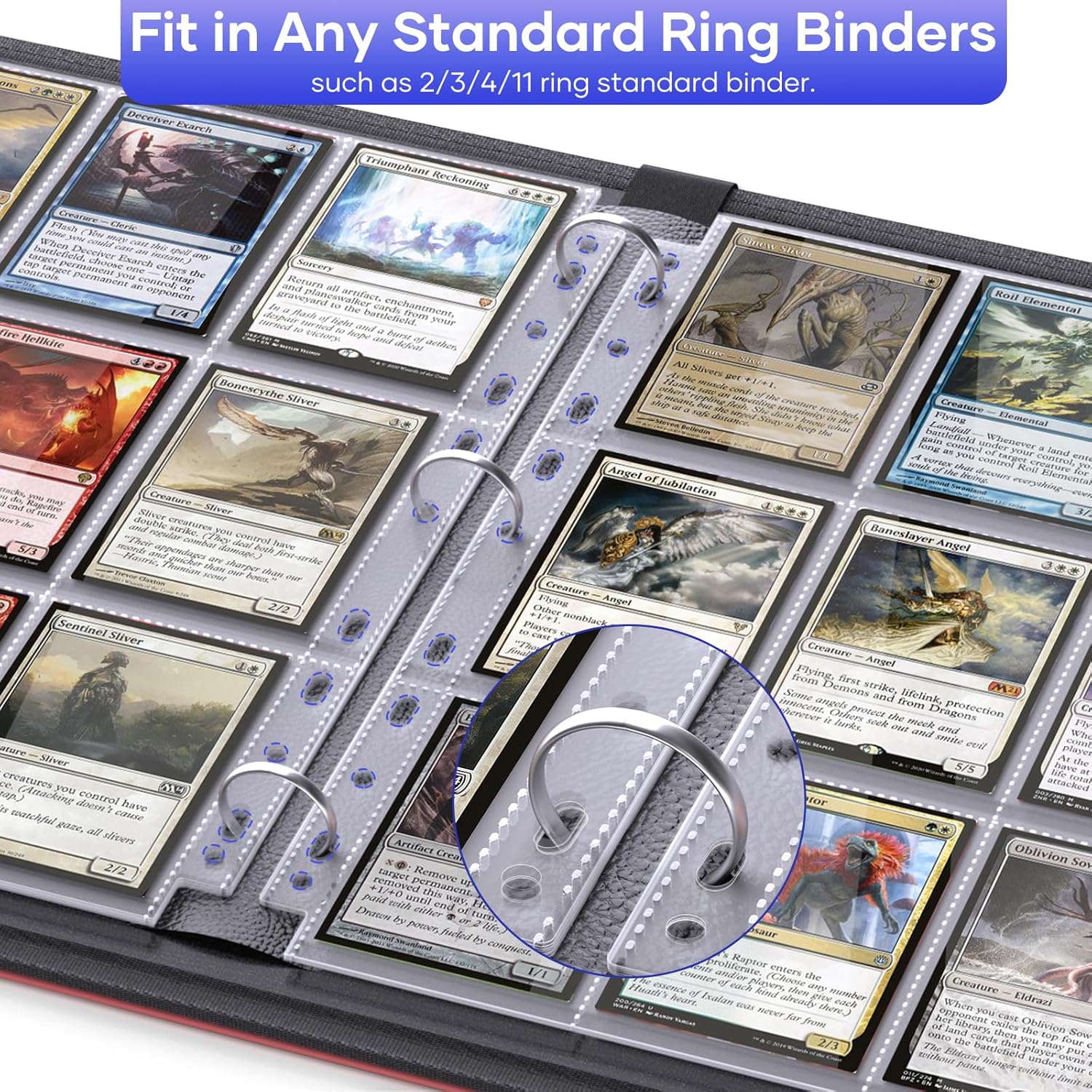 【Display fronte-retro】 - 9 buste porta carte tascabili per pagina vengono utilizzate per 3 raccoglitori ad anelli e il design fronte-retro consente di inserire 18 carte su una pagina. 40 buste protettive possono contenere 720 carte. Garantisce che le tue carte preferite siano conservate in modo sicuro e ben organizzate. 【Dimensione universale】 - Dimensioni delle protezioni delle pagine delle carte: 11,6 x 8,7 pollici, ciascuna dimensione tascabile: 3,7 x 2,6 pollici, può contenere 2 carte 1/2 x 3 1/2. Adatto a raccoglitori ad anelli 2/3/4/11 con 11 piccoli fori per fissare i documenti nella maggior parte dei raccoglitori ad anelli. 【Qualità super protettiva e premium】 - Le nostre buste protettive sono realizzate in polipropilene di alta qualità senza PVC e senza acidi, che le rende resistenti e durevoli e impedisce che vengano danneggiate e graffiate per proteggere le tue carte. È perfetto per esporre le tue preziose carte collezionabili o le carte da disegno dell'artista e altro ancora. 【Trasparente e impermeabile】 - I raccoglitori per carte collezionabili sono realizzati in materiale trasparente e impermeabile, la tua carta sarà chiaramente visualizzata nella custodia commerciale, con un design superiore per facilitare l'inserimento della carta ed evitare che scivoli via. È estremamente chiaro per te vedere i dati della tua carta. 【Ampia applicazione】 - Le nostre protezioni trasparenti sono adatte a tutte le carte collezionabili di dimensioni standard. Perfetto per collezionare, conservare o esporre le tue varie carte: carte sportive (carte da baseball/carte da calcio), carte da gioco (carte mtg/yugioh), carte collezionabili, biglietti da visita, mini foto o altre carte.