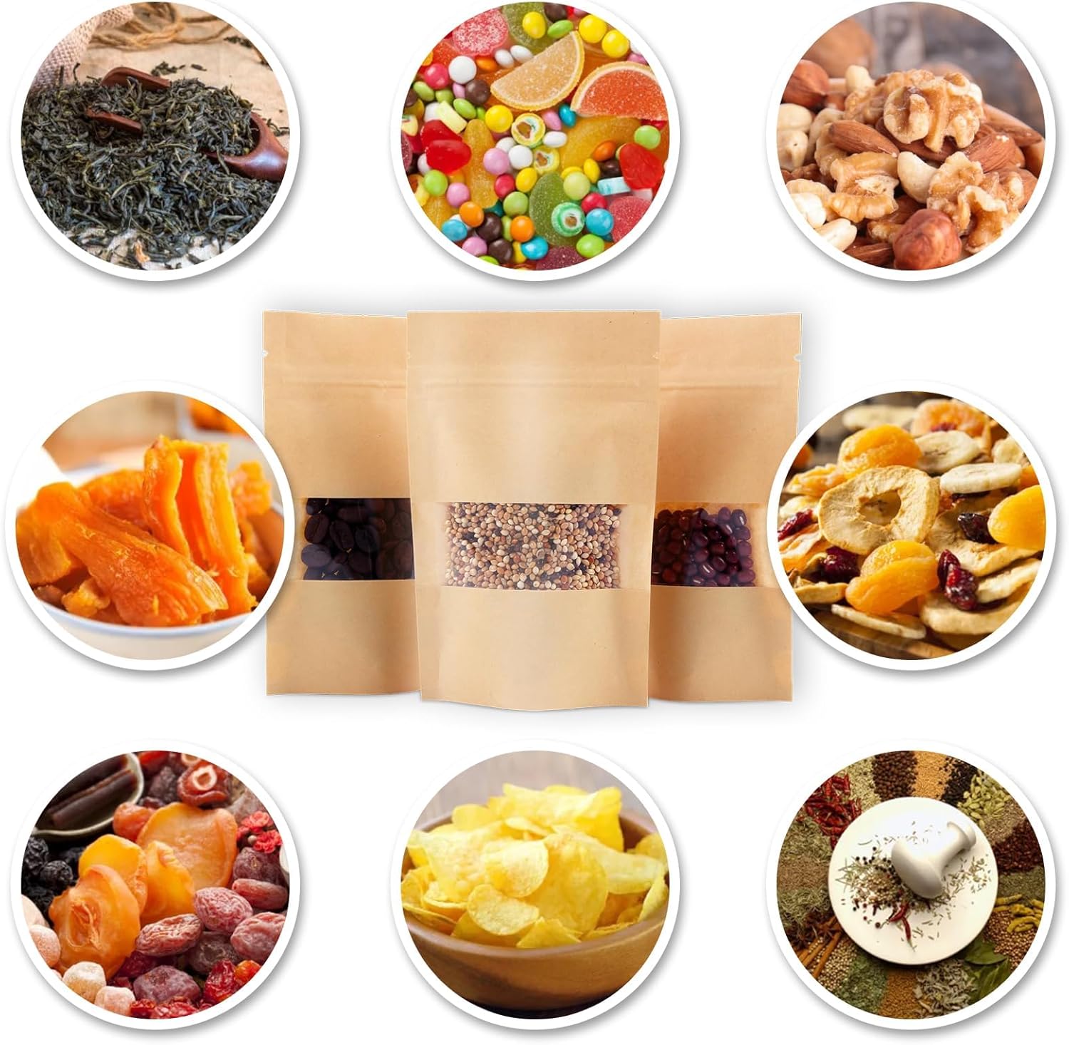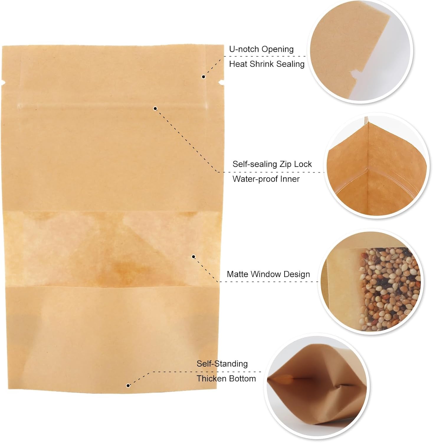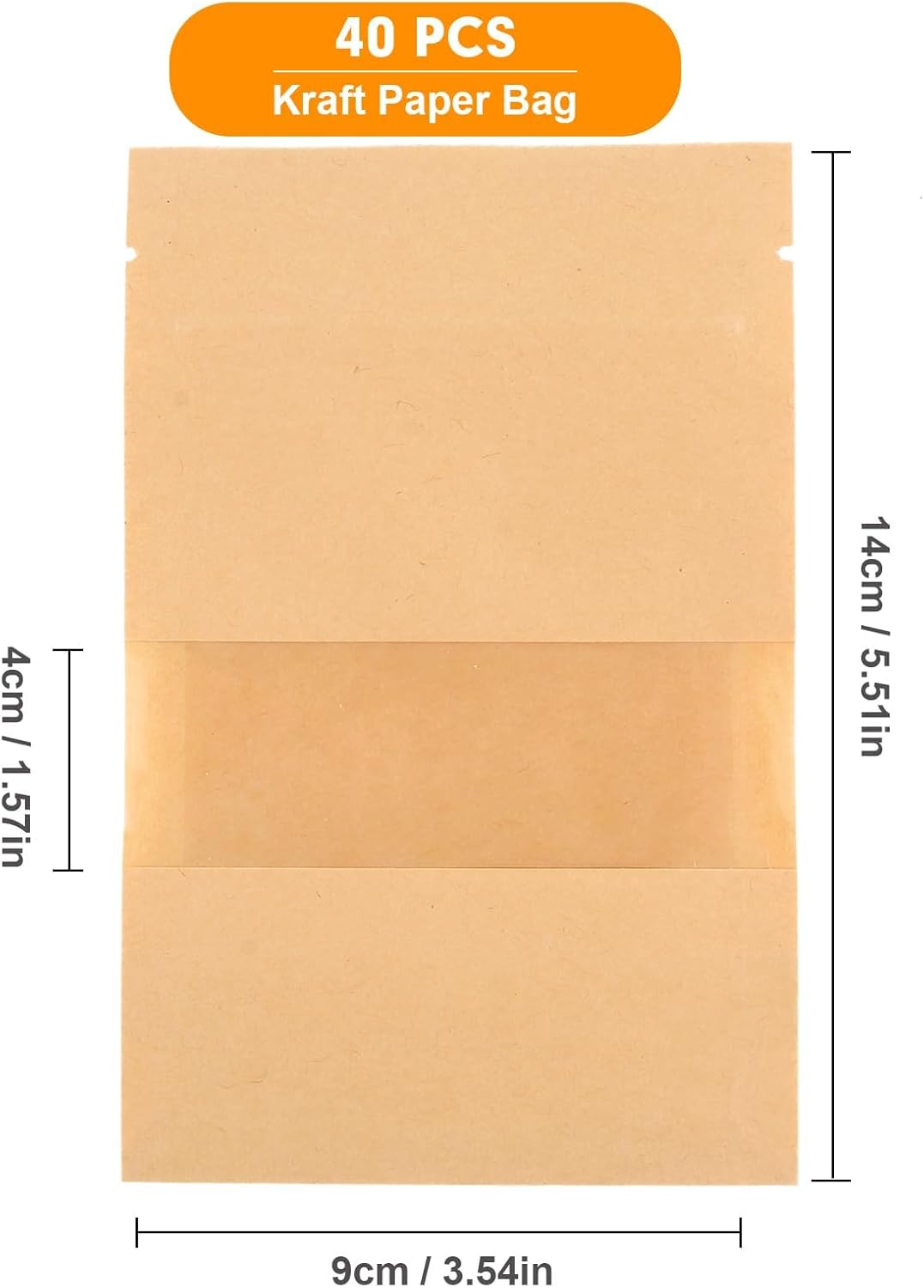 📦【Contenuto della confezione】Vi offriamo 40 sacchetti di carta da 9x14 cm con finestra, nei quali è possibile riempire vari oggetti come noci, caramelle, chicchi di caffè, ecc. attraverso una finestra trasparente. Il design con fondo spesso dei sacchetti di carta kraft non solo aumenta lo spazio di archiviazione interno, ma garantisce anche che le bustine di tè sfuse con cerniera rimangano stabili a casa o nella vetrina del negozio. Pratico ed esteticamente gradevole! ✅ 【Materiale di alta qualità】 I sacchetti di carta Kraft con sacchetti con cerniera riutilizzabili per finestra sono realizzati con sacchetti di carta per biscotti + materiali PET + CPP, non tossici e inodore. La superficie interna è trattata con cera idrorepellente per proteggere gli oggetti nella borsa con cerniera dall'umidità e dagli odori e preservarne la freschezza. Sacchetti di carta Kraft con finestra, scelta ideale per confezionare alimenti secchi! 🏷️【Design unico】 I sacchetti di carta Kraft possono essere sigillati con una macchina termosaldante. La parte superiore della busta presenta una tacca a forma di U che è facile da aprire dopo la sigillatura. I sacchetti di carta kraft per uso alimentare con finestra hanno una finestra rettangolare che consente una facile identificazione e visualizzazione degli articoli all'interno della borsa. ♻【Riutilizzabili】I sacchetti di carta marrone riutilizzabili forniscono un'eccellente tenuta. La cerniera liscia facilita la richiusura delle borse e la superficie interna con cera idrorepellente impedisce l'ingresso di acqua e polvere. Le buste con chiusure sono ideali per il confezionamento di alimenti secchi. 🍪 【Applicazione versatile】 I sacchetti di carta Kraft sono ideali per conservare caramelle, frutta secca, chicchi di caffè, spezie, biscotti, foglie di tè, cibi secchi, cereali, snack, legumi ed erbe essiccate. I sacchetti di carta Kraft sono adatti per varie occasioni come Natale, Halloween, festa della mamma, Pasqua, feste, compleanni, matrimoni e altro ancora.