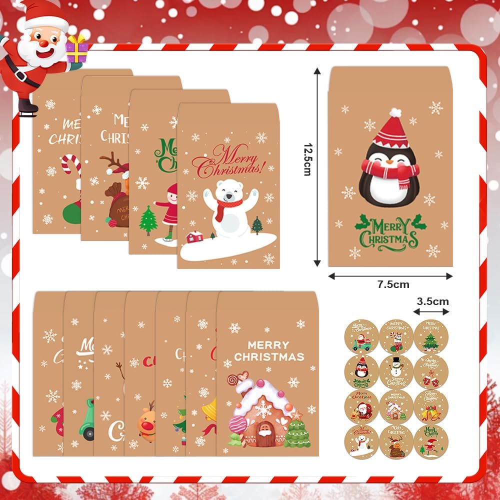 【🎄 Motivi natalizi festivi per occhi luminosi】 I nostri incantevoli sacchetti natalizi realizzati in robusta carta kraft incantano con 12 diversi motivi invernali stampati su entrambi i lati! Scopri i classici alberi di Natale, le divertenti renne, i simpatici pupazzi di neve e i fiocchi di neve scintillanti: ogni borsa racconta la propria storia di Natale. Perfetto per regali che delizieranno sotto l'albero di Natale! 【✨ Perfetto per dolci sorprese natalizie】 La dimensione ideale (12,5x7,5 cm) per le gioie dell'Avvento riempite con amore! Tieni facilmente stelle di cioccolato, biscotti alla cannella, piccole figure giocattolo o scintillanti decorazioni per l'albero di Natale. Meravigliosamente adatto per una sorpresa quotidiana nel calendario dell'Avvento o come regalo al mercatino di Natale! 【🌲 Gioia delle vacanze sostenibili con stile】 sacchettini per dolci! Realizzato in carta kraft resistente e riciclabile che può facilmente sopravvivere anche alle mani più difficili dei bambini. Le robuste maniglie per il trasporto rendono ogni borsa un compagno di Natale riutilizzabile - per un'atmosfera di vacanza duratura! 【🎅Lezioni creative di artigianato natalizio】 Lascia fluire la creatività natalizia! Perfetto per dipingere, incollare o decorare con glitter. I 48 adesivi festivi inclusi con motivi di pupazzi di neve e stelle trasformano ogni borsa in un'opera d'arte personale, ideale per piacevoli pomeriggi artigianali a lume di candela! 【📦 Tutto per una perfetta preparazione al Natale】 Tutto in uno per un'attesa natalizia senza stress! 48 sacchetti con 12 incantevoli motivi e 48 adesivi coordinati – sufficienti per tutta la classe scolastica, la famiglia allargata o la festa di Natale in ufficio. Basta riempire, decorare e far risplendere i volti!