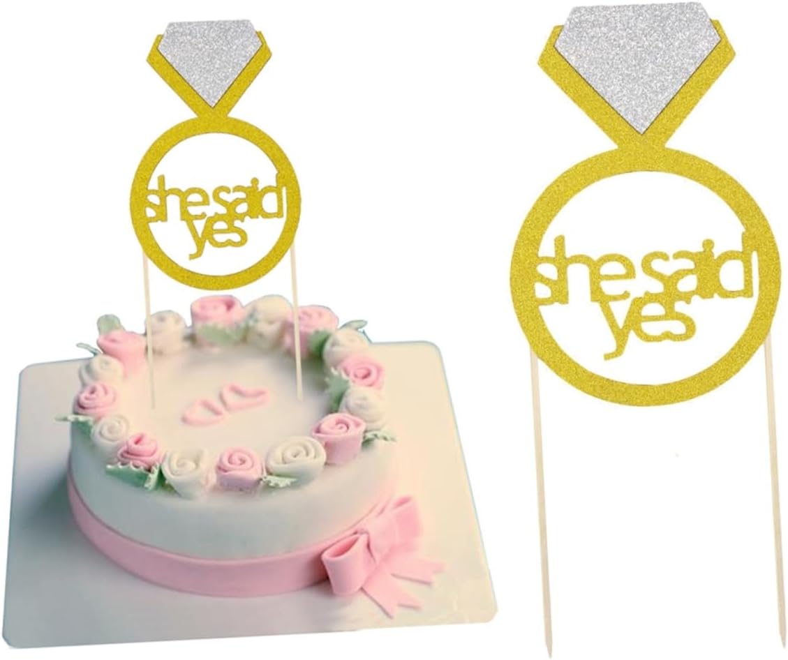 Cake Topper - Topper per torta glitterato a forma di diamante She Say Yes, perfetto per decorare torte o cupcake in occasione di matrimoni, feste di fidanzamento e addio al nubilato. Decorazioni per torte - Realizzate in materiale di alta qualità, innocuo, sicuro per la decorazione della torta. Anelli: aggiungi splendore alle tue torte e crea un'atmosfera romantica e deliziosa. Decorazioni per torte nuziali - Suggerimento caldo: caro acquirente, a causa dell'effetto luminoso, della luminosità del monitor, della misurazione manuale, ecc., potrebbero esserci alcune lievi differenze nel colore e nelle dimensioni tra la foto e l'oggetto reale. spero sinceramente che tu possa capirlo! Grazie! Toppers per torta per festa di fidanzamento: ravviva la festa, porta e sorprendi tutti gli ospiti.