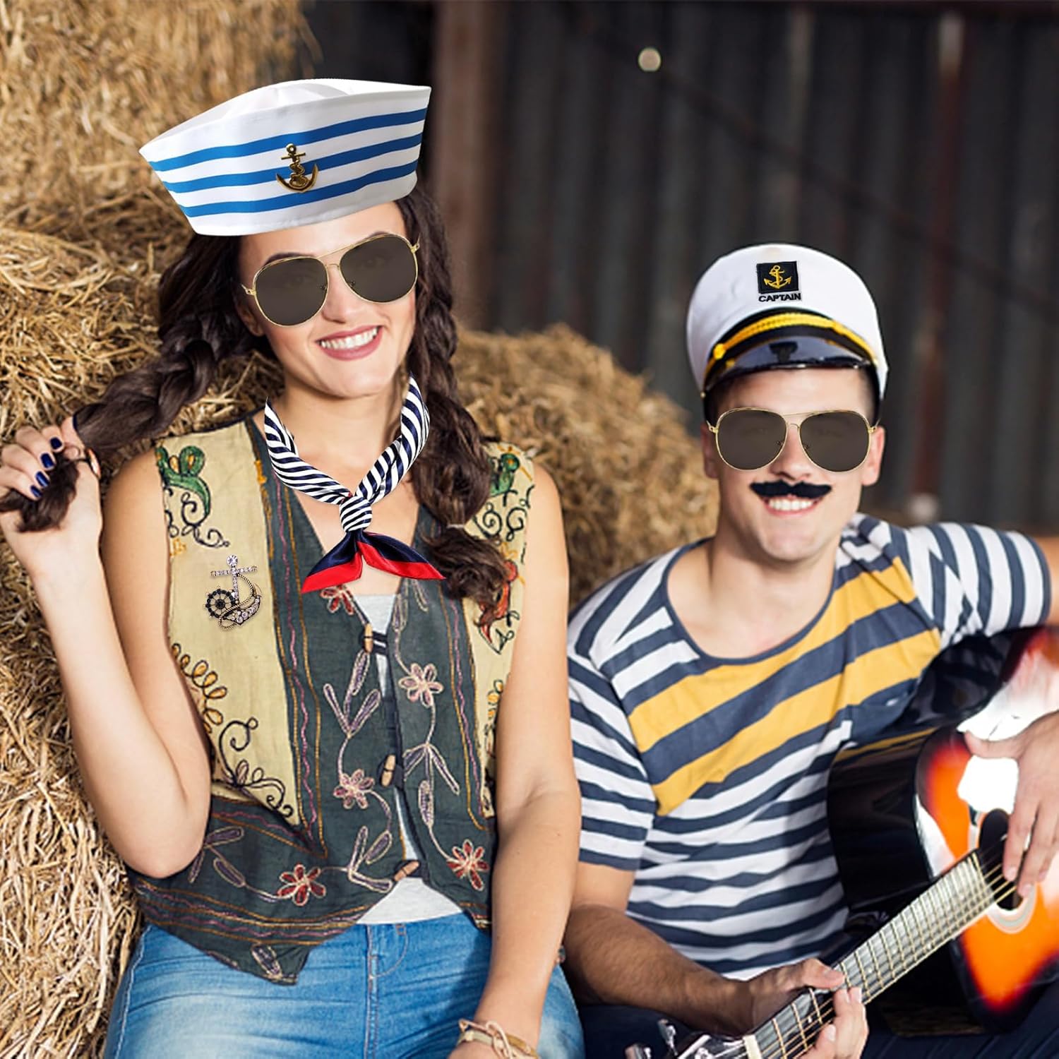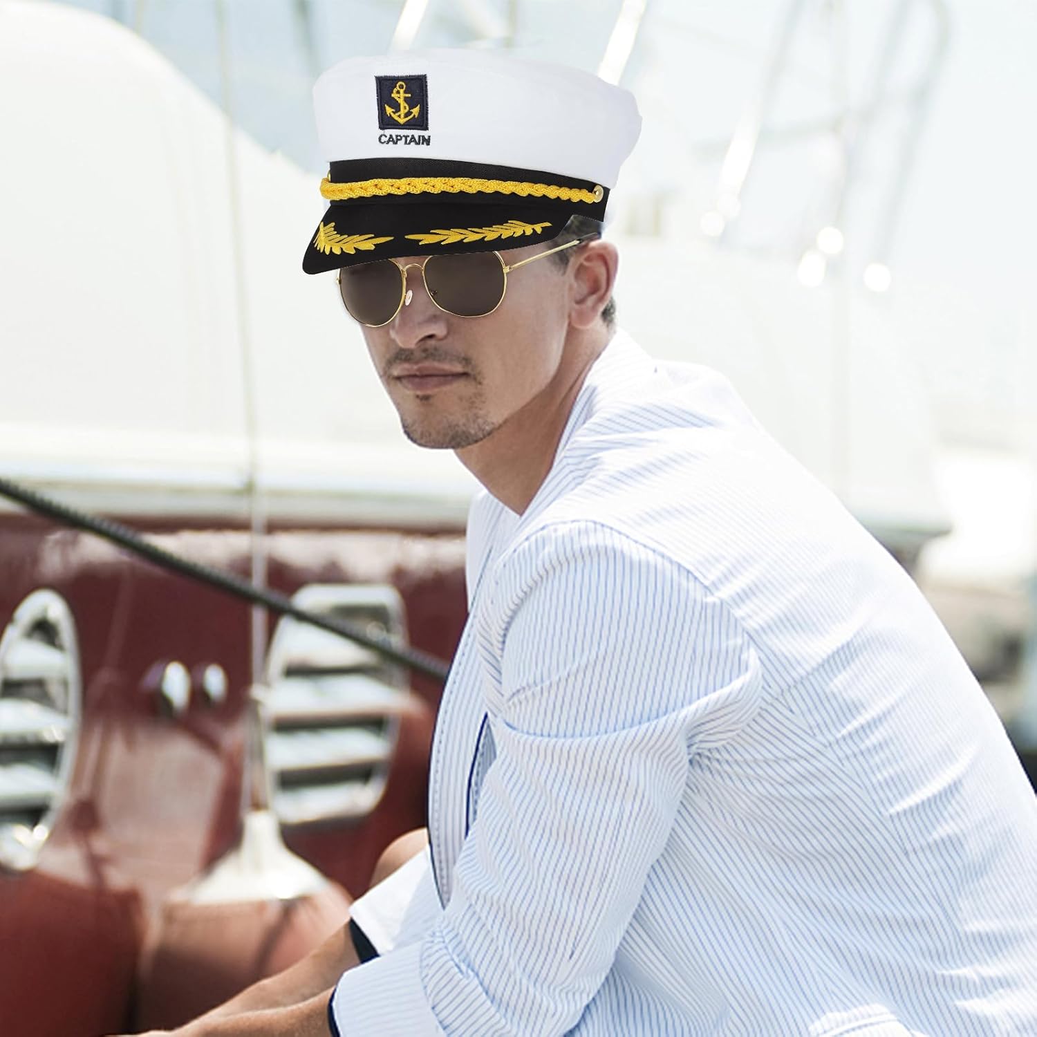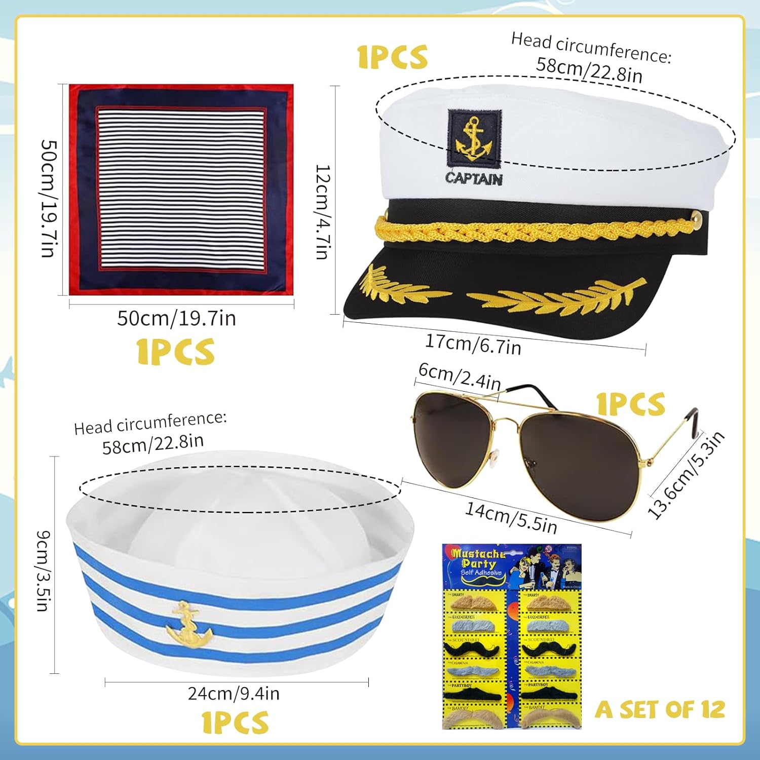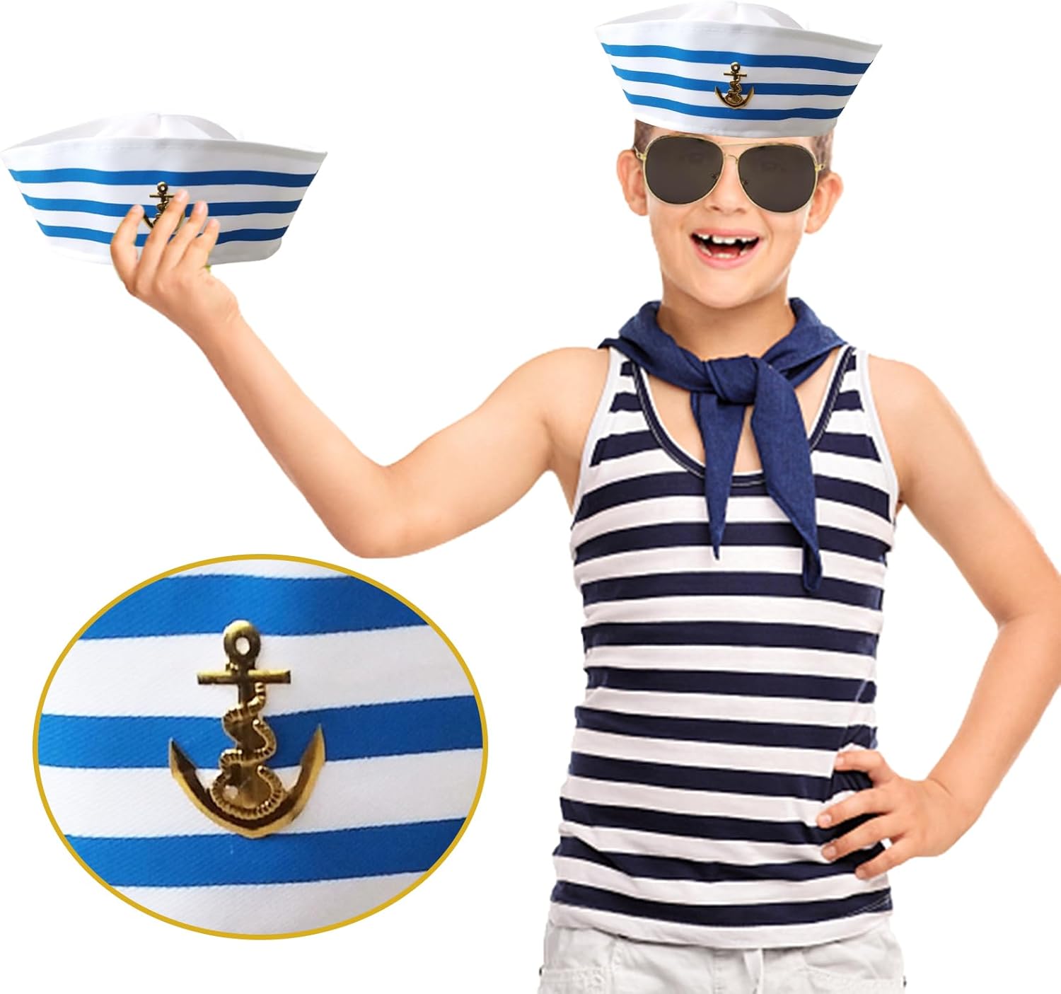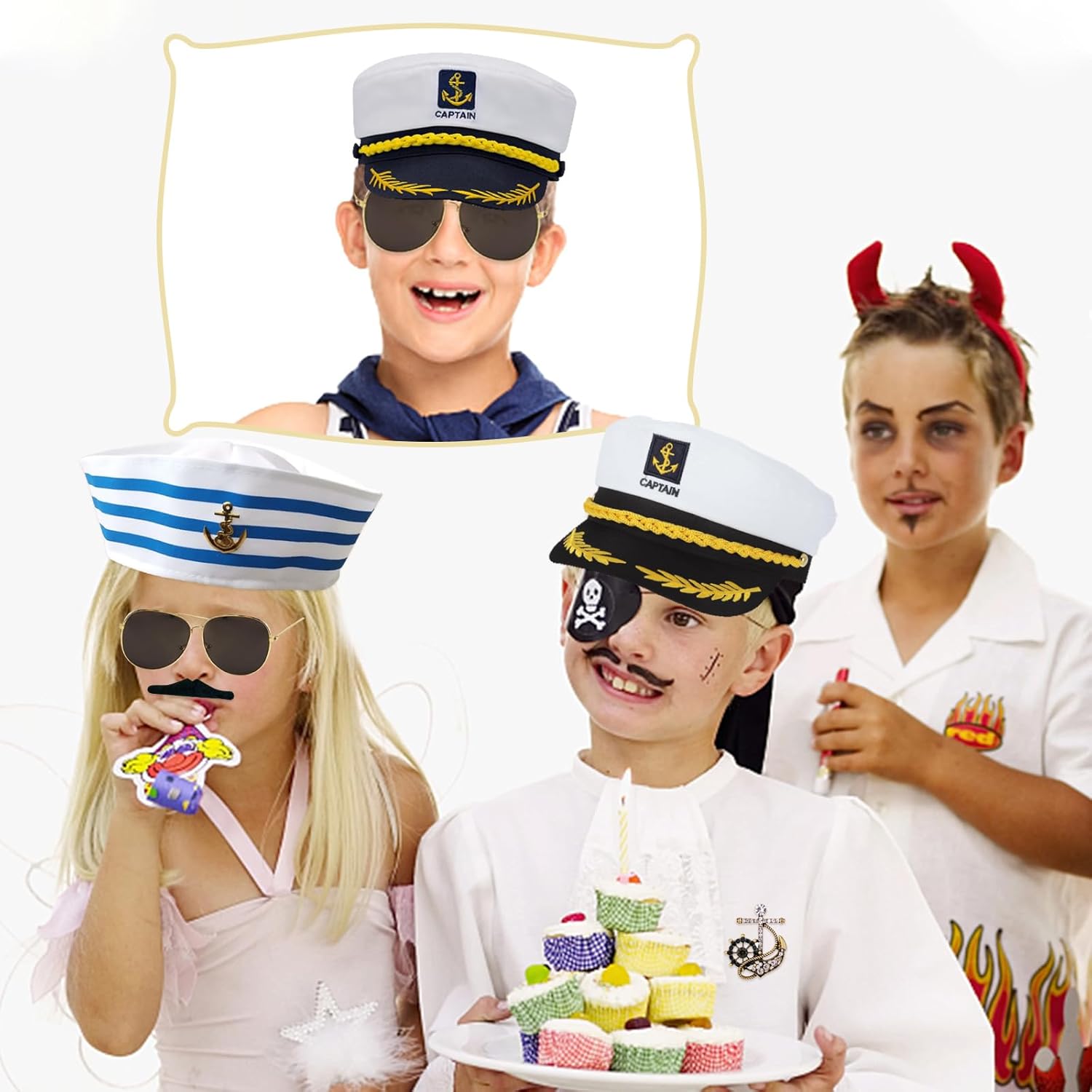 Confezione da 5 cappelli da capitano regolabili - con occhiali da sole, accessori da capitano, guanti, distintivi, per carnevale, feste a tema, cosplay