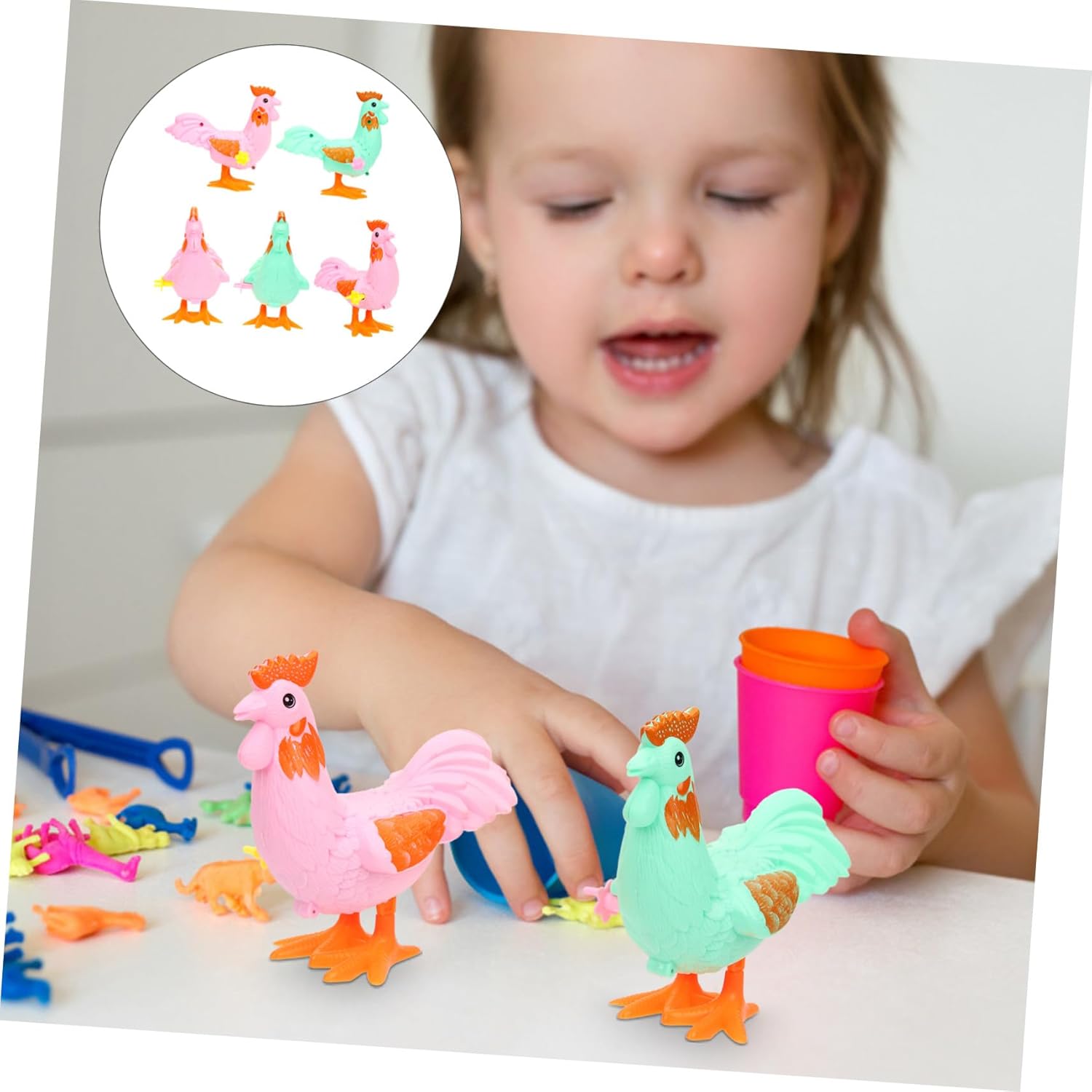 Piccoli giocattoli - il giocattolo a carica è molto creativo e porterà molto divertimento ai tuoi adorabili bambini, pollo giocattolo Simulazione di pollo - semplice nel design ma molto pratico da usare, che ti offre grande comodità, giocattolo per animali Giocattolo a carica con - l'aspetto realistico e i dettagli sono super carini e può essere usato come decorazione domestica o giocattolo a carica Giocattolo per animali - realizzato in plastica di alta qualità, robusto e durevole, giocattolo per piccoli animali Giocattolo per animali a carica - aspetto divertente e bello, Molto creativo, può far divertire i tuoi bambini invece di giocare al telefono o ai giochi per computer, giocattoli per animali a carica