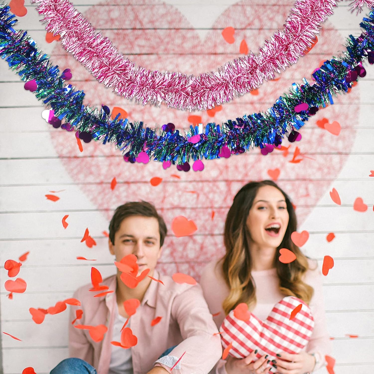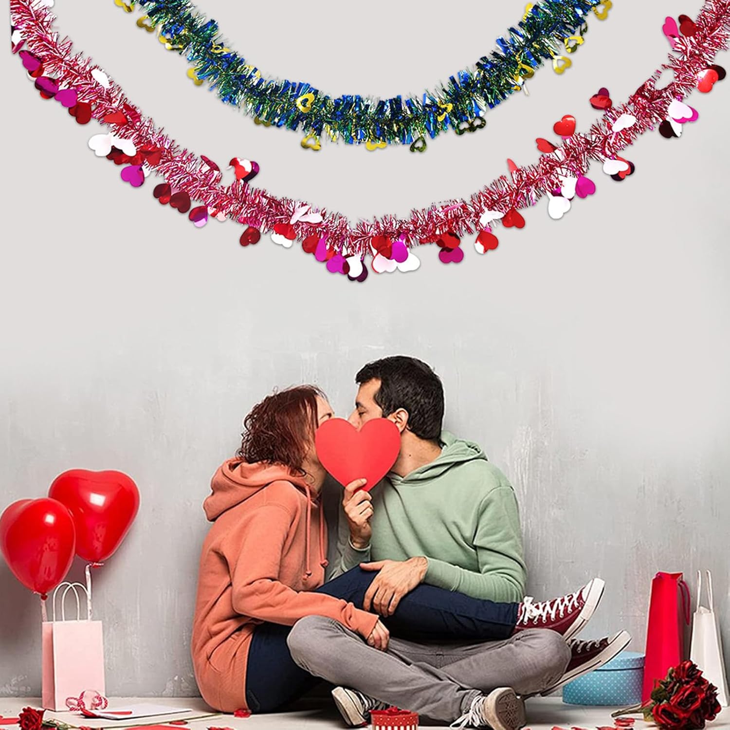 per coppie, famiglie e aziende che cercano di migliorare le loro decorazioni festive ed esprimere amore in un modo unico Adatto per feste di San Valentino, matrimoni, decorazioni per il soggiorno o vetrine di negozi, queste ghirlande aggiungono fascino e calore a vari ambienti Realizzate con materiali per animali domestici, queste ghirlande garantiscono che rimangano luminose e resistenti allo sbiadimento, pur essendo facili da appendere e rimuovere Festeggia San Valentino con il nostro set di ghirlande a forma di cuore, presenta cuori e stelle filanti che creano un'atmosfera romantica per ogni occasione Decora il tuo spazio con questa decorazione, rendendo ogni celebrazione memorabile e visivamente elegante