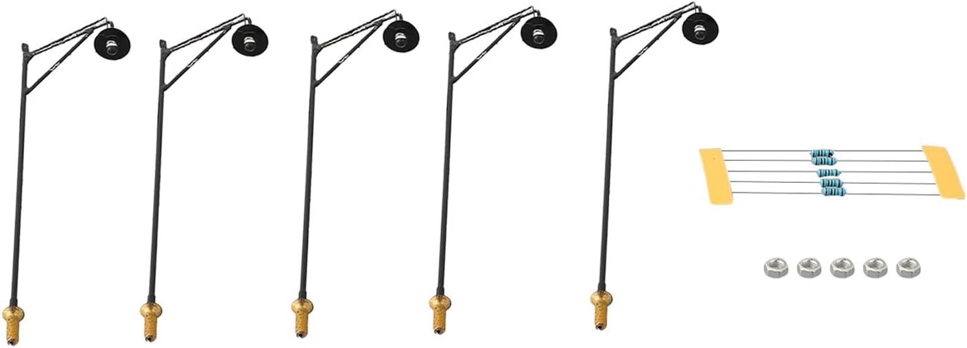 Lampione stradale a LED: I 5 lampioni a LED inclusi in questo pacchetto sono adatti sia per ferrovie modello in scala OO che per HO. Forniscono un'illuminazione brillante per il tuo paesaggio urbano in miniatura o il percorso ferroviario. Funziona a 3 V: queste luci funzionano con una bassa tensione di funzionamento di 3 V, rendendole sicure ed efficienti dal punto di vista energetico. Richiedono una fonte di alimentazione CC per funzionare correttamente. Resistori compatibili: forniamo 5 resistori da 620 ohm 1/4W in questo pacchetto. Queste resistenze possono essere utilizzate per le luci per l'uso con alimentatori da 12 V o 16 V, se necessario. : Con fili completi e LED inclusi, questi lampioni sono nel layout del modello ferroviario. collegarli alla fonte di alimentazione e possono essere illuminati istantaneamente. Design autentico: questi lampioni presentano un design realistico e dettagliato, aggiungendo autenticità al tuo mondo in miniatura. Le dimensioni esatte di ogni lampione possono essere controllate dalle foto fornite.