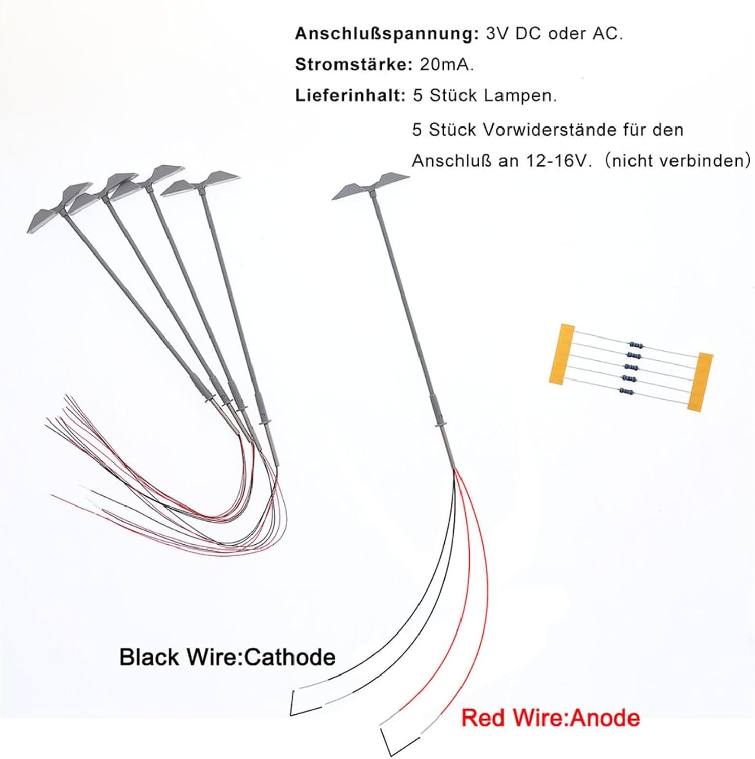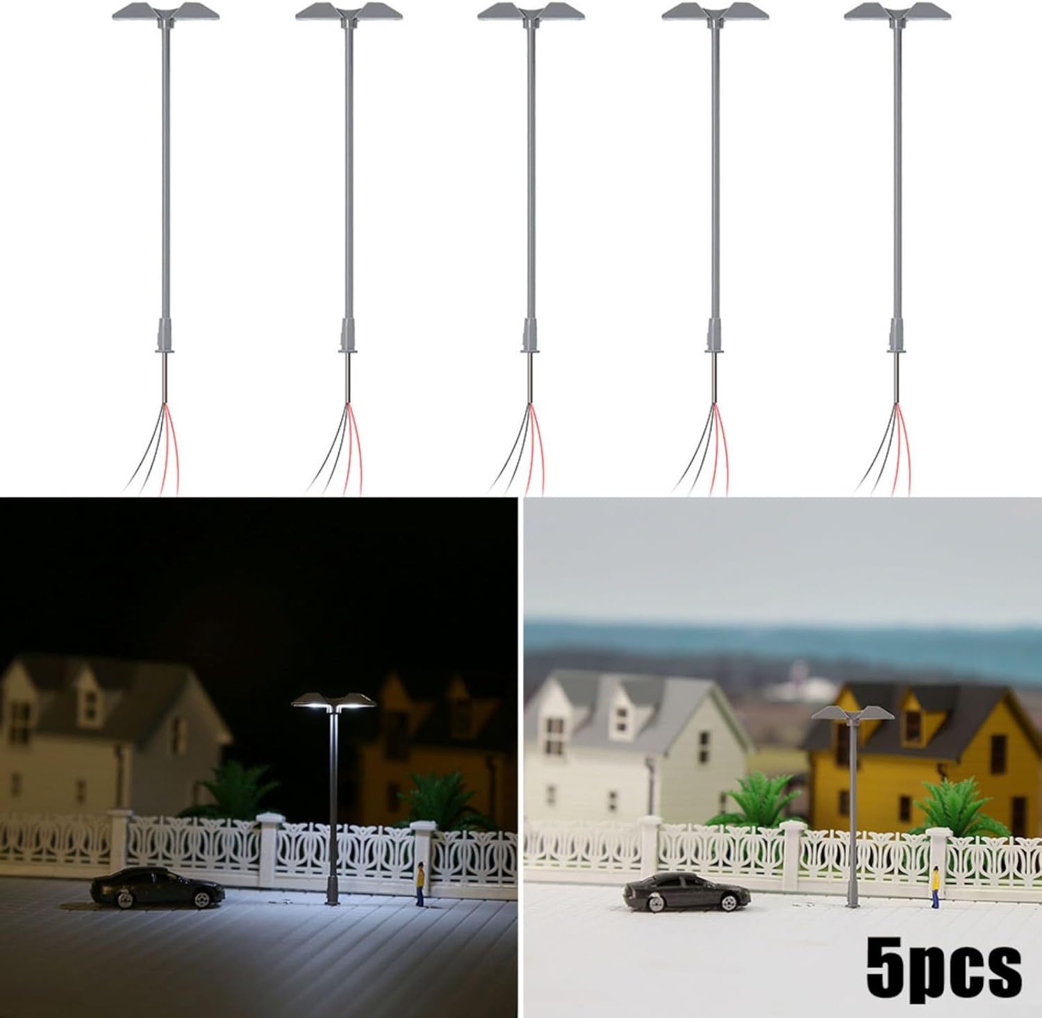 【Perfetto per il layout dell'edificio】 Queste lampade a LED sono appositamente progettate per piattaforme modello e paesaggistica, fornendo un effetto luminoso realistico e visivamente accattivante. 【Adatto per tensione 3 V】 Queste lampade sono progettate specificamente per l'uso con tensione 3 V CC o CA. È importante non utilizzarli direttamente con tensioni più elevate come 12 V o 16 V poiché ciò potrebbe danneggiare i LED. 【Corrente operativa corretta】 Per garantire prestazioni e longevità ottimali, si consiglia di applicare una corrente operativa corretta di 20 mA a ciascun LED. 【Scala e materiale】 Progettato per essere compatibile con i modelli in scala Z Gauge 1:200-220. Queste lampade sono realizzate con robusti tubi di acciaio per una maggiore stabilità e longevità. 【Set completo】 Ogni set contiene 5 lampade con paralumi e 5 resistori in serie, adatti per tensioni di 12-16 V. Se disponi di un trasformatore da 12-16 V, collega il resistore incluso alla linea per un'integrazione perfetta.
