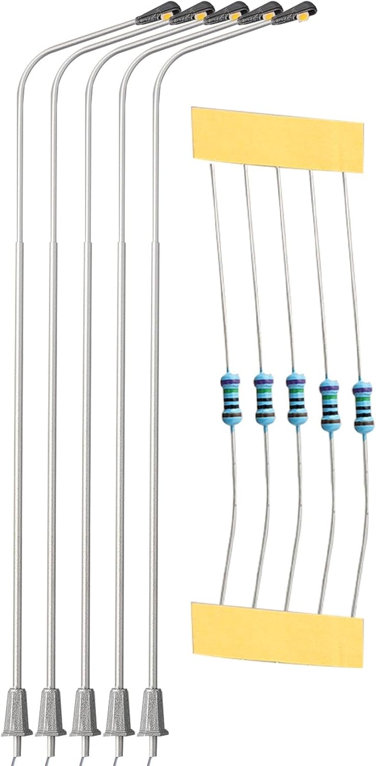 【Lampioni stradali per modellismo ferroviario】: questi lampioni da 5 pezzi a scartamento 0 sono perfetti per aggiungere dettagli realistici al tuo plastico ferroviario o al layout dell'edificio. 【Scala e materiale】: questi lampioni sono adatti per l'uso in modelli in scala 0. Sono realizzati in metallo robusto, che garantisce una lunga durata. 【LED con voltaggio adeguato】: Realizzate con LED, queste lampade sono progettate specificatamente per funzionare ad una tensione di 3V. È importante non utilizzarli direttamente a tensioni superiori a 12V o 16V per evitare danni al LED. 【Corrente operativa corretta】: per garantire il corretto funzionamento, si consiglia di applicare la corrente operativa corretta di 20 mA a ciascun LED. Ciò contribuirà a mantenere la longevità e le prestazioni delle lampade.