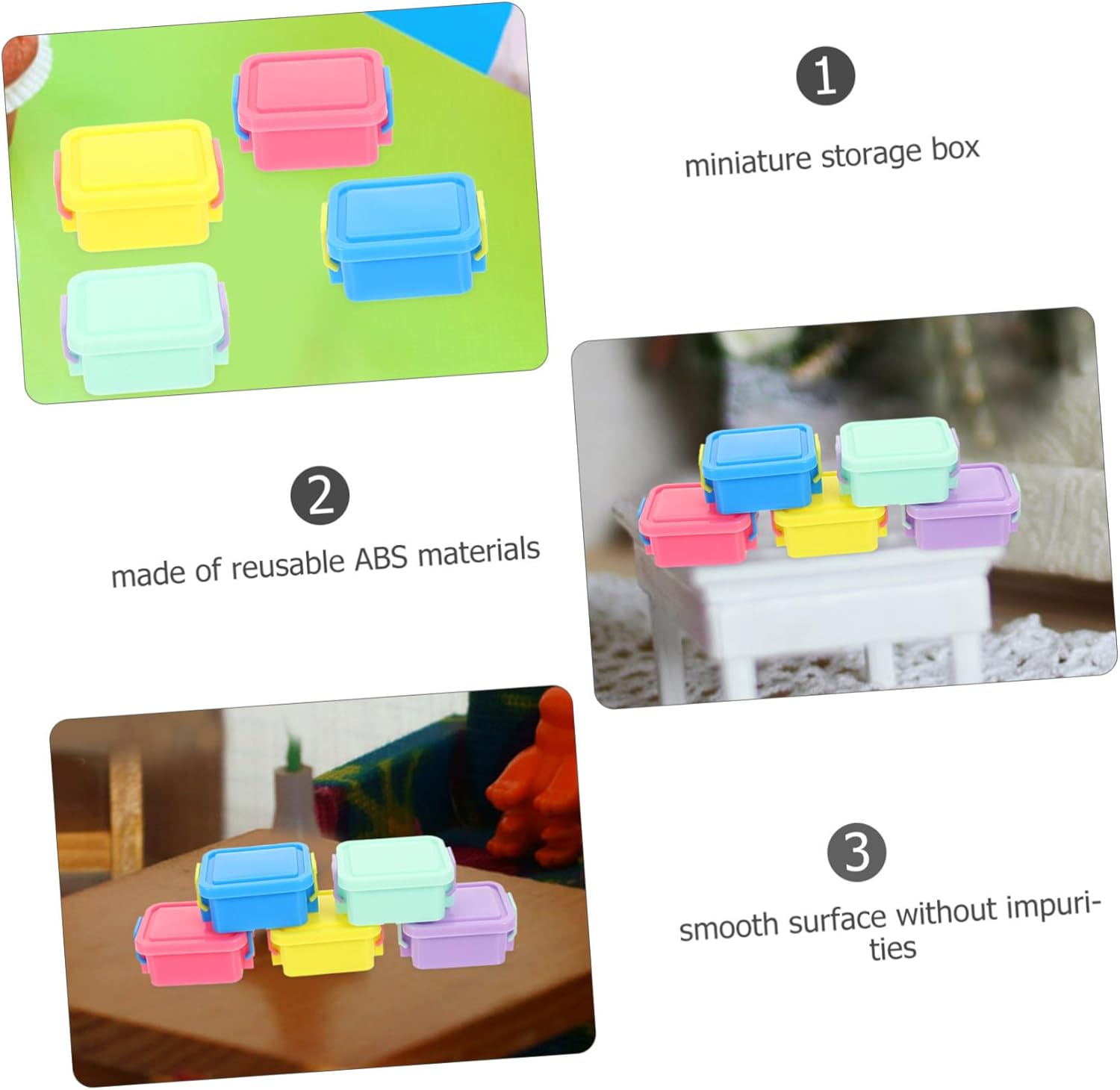 Mini scatole: non sono solo pratiche, ma possono anche essere usate come elemento decorativo per esporre le tue collezioni e aggiungere colore a qualsiasi stanza, decorazione in miniatura Mini contenitori: l'arredamento della mini scatola è molto bello e decorativo e si abbina alle altre decorazioni domestiche, piccoli contenitori Piccoli contenitori: accessibili sia agli hobbisti che ai collezionisti, questa scatola è una grande aggiunta a qualsiasi collezione, piccoli contenitori Contenitori: abbastanza scatole per le case delle bambole, così queste scatole per le case delle bambole possono soddisfare le tue esigenze, piccole decorazioni Accessori per la casa in miniatura: superficie liscia, semplice e vivace aspetto, l'ornamento della scatola portaoggetti è un bellissimo ornamento per mini casa, un piccolo contenitore di plastica