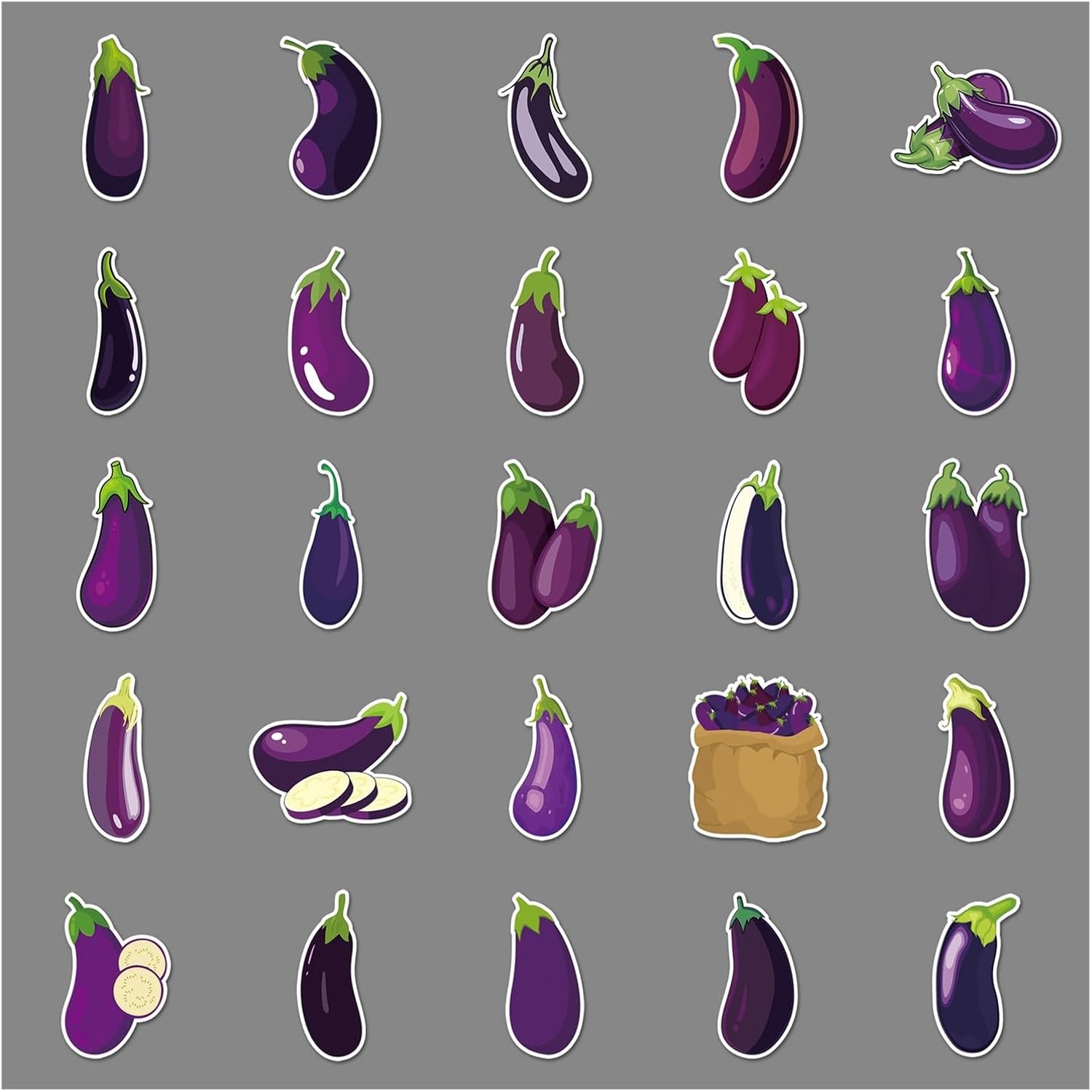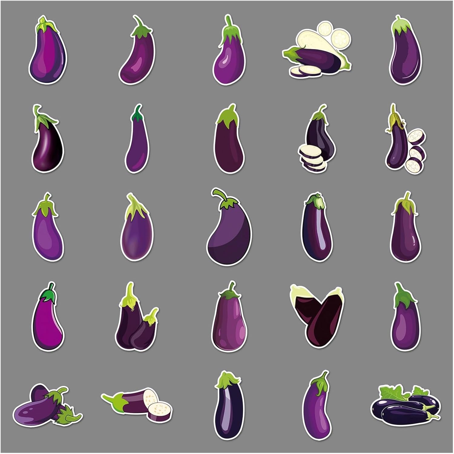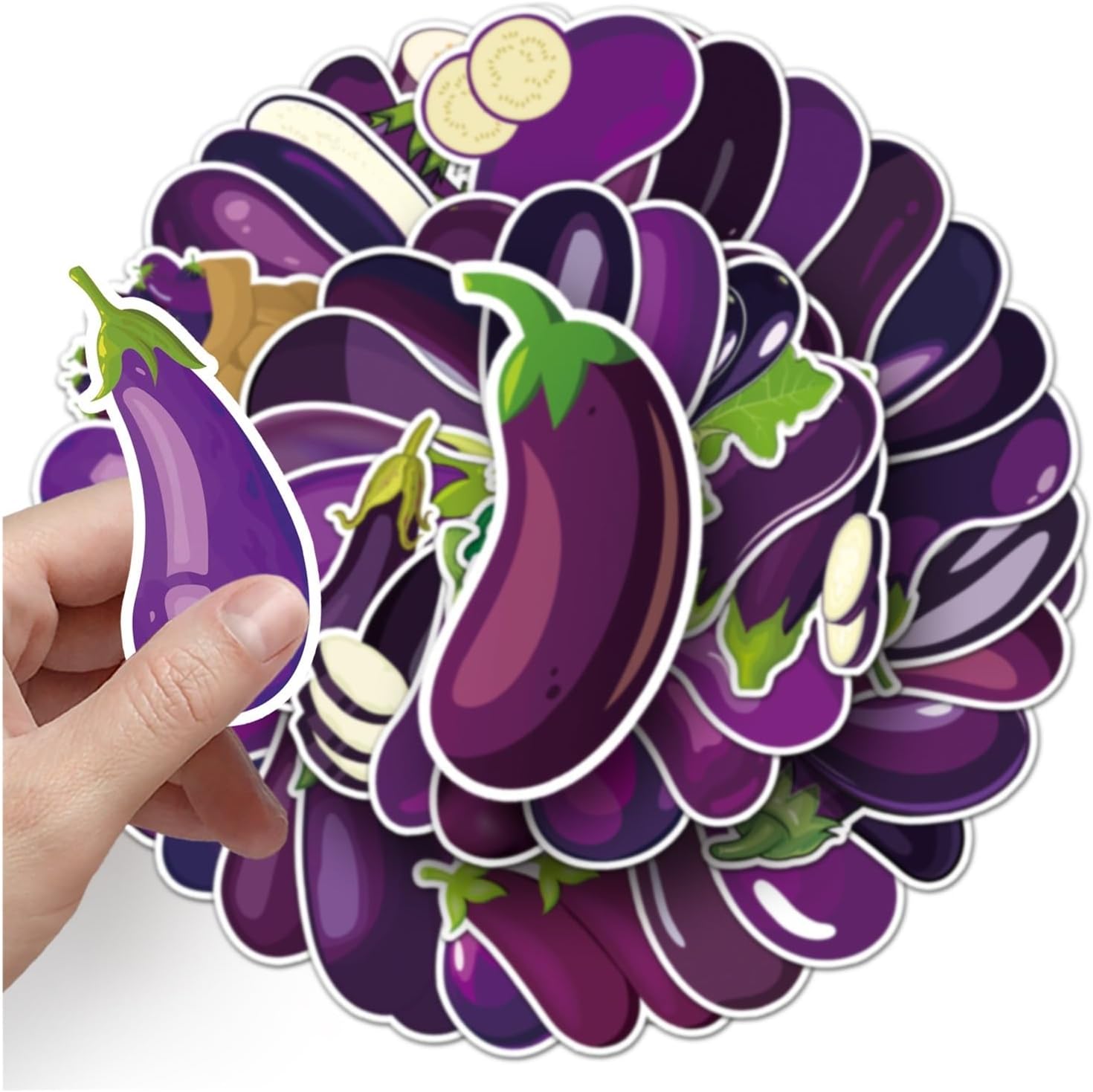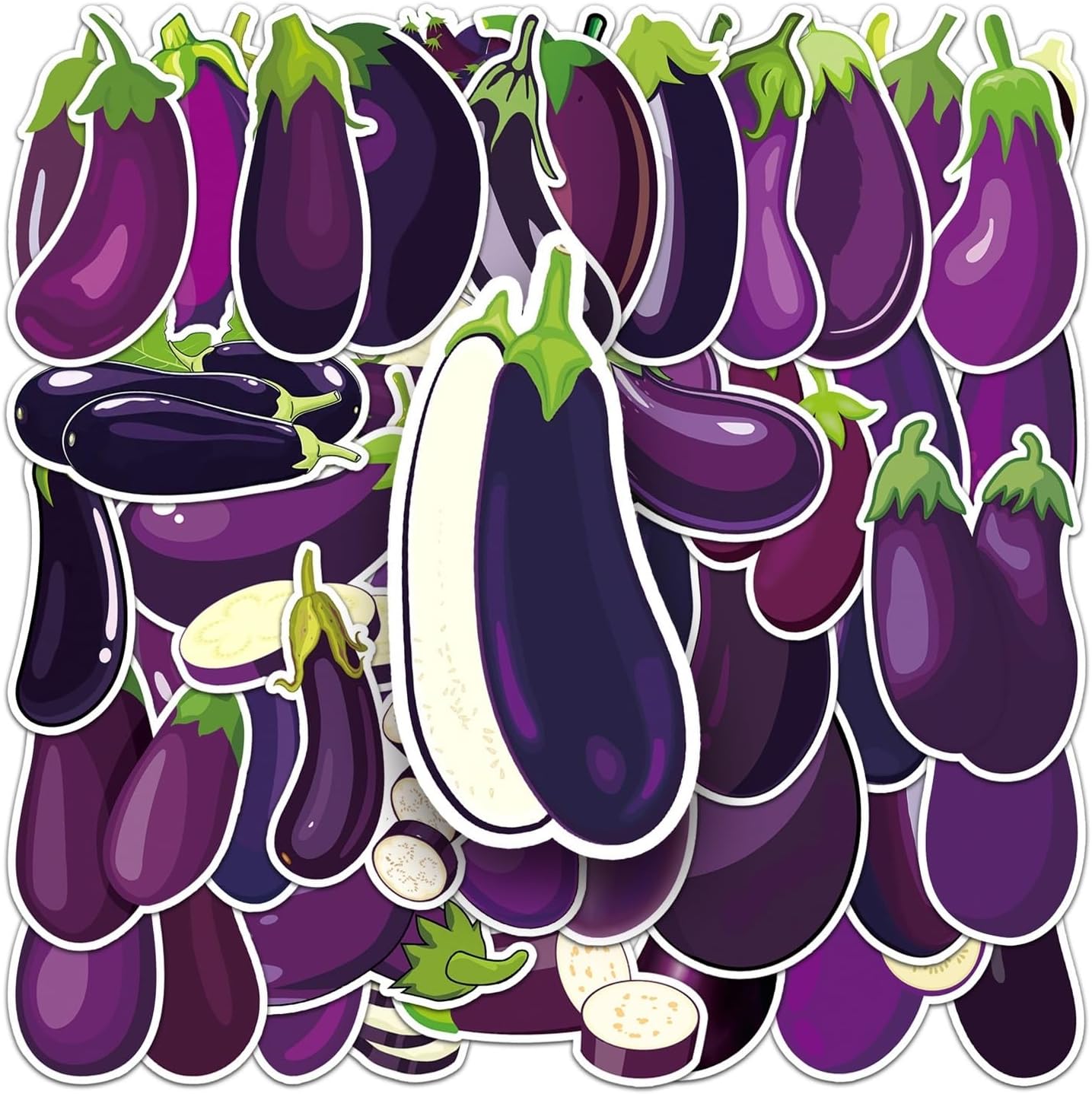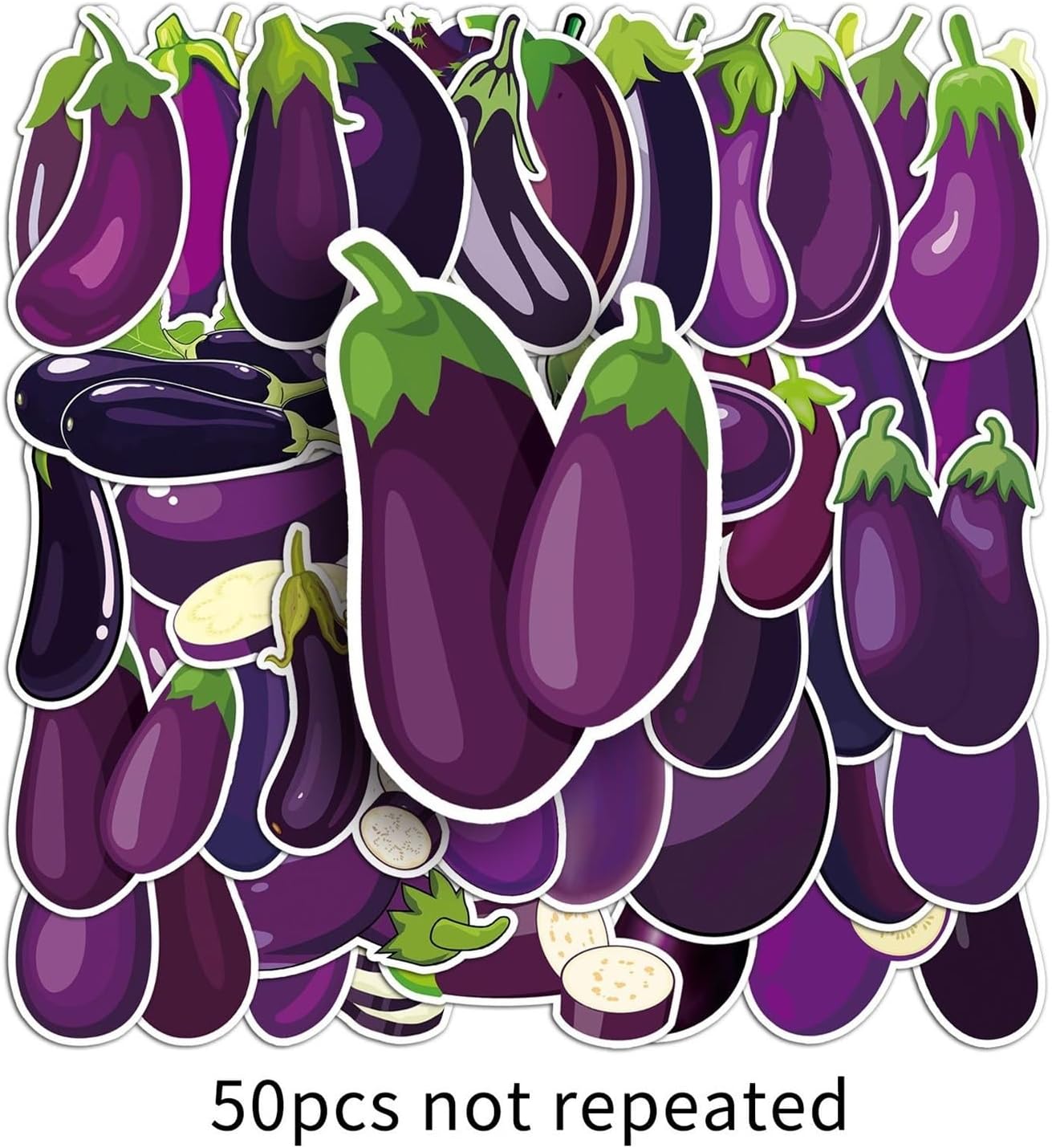 Confezione da 50 adesivi in vinile a forma di melanzana, divertenti per alimenti vegetali, kawaii, viola, impermeabili, per laptop, bottiglia d'acqua, frigorifero, diario, album di ritagli, adulti e