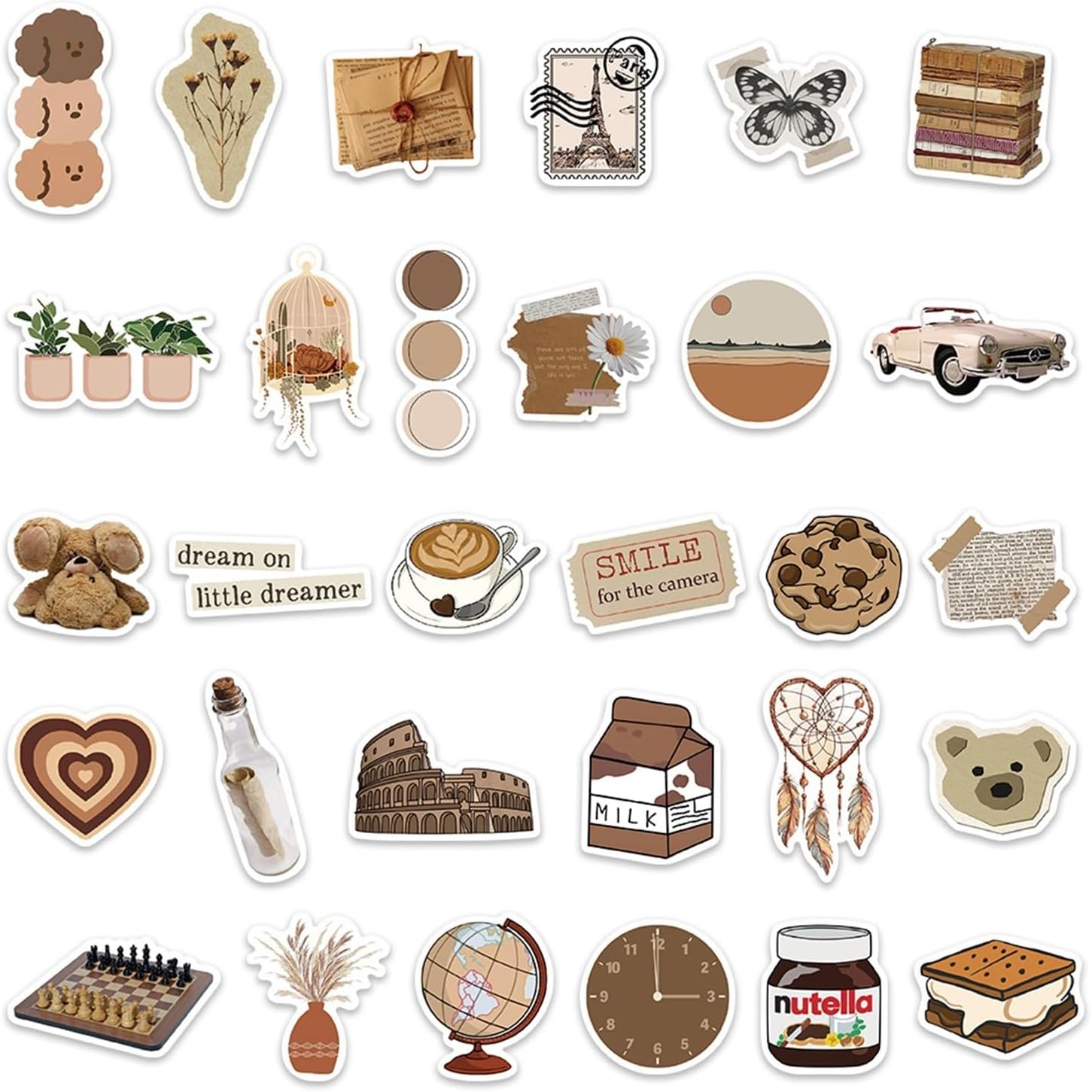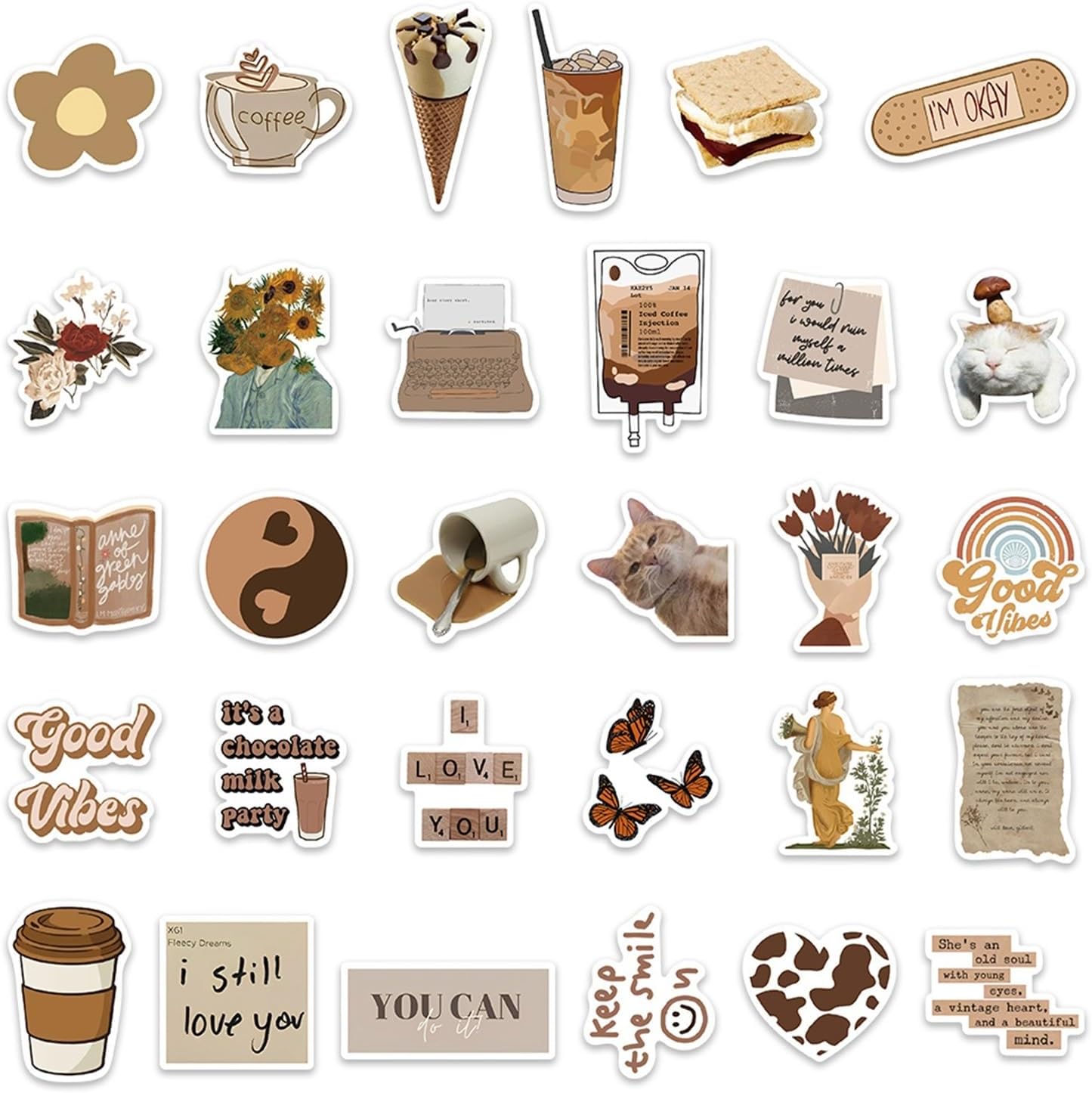 Confezione da 50 adesivi in vinile marrone estetico minimalista tono neutro adesivi impermeabili per laptop notebook bottiglia d'acqua diario adulto adolescente
