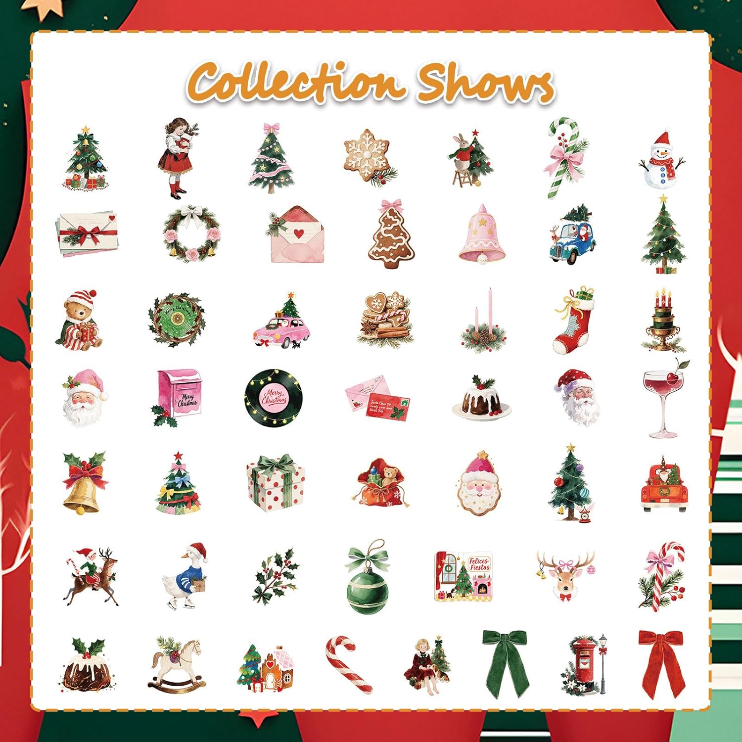 Il retro adesivo di alta qualità garantisce una facile applicazione e una rimozione pulita su varie superfici come vetro, pareti e mobili, mentre la costruzione facile da usare garantisce un uso sicuro per i bambini Perfetto per genitori, insegnanti e organizzatori di feste che cercano una soluzione decorativa versatile per riunioni di famiglia, attività in classe o celebrazioni stagionali Trasforma confezioni regalo, finestre, quaderni e spazi per eventi con questi adesivi adatti per feste di Natale, feste di compleanno o progetti creativi tutto l'anno Ogni set include 50 fogli adesivi riutilizzabili con motivi e personaggi festivi, combinando durata pratica e flessibilità artistica per le migliori decorazioni natalizie e categorie di adesivi adesivi Migliora l'arredamento delle tue vacanze con 50 adesivi natalizi dal design unico realizzati in PVC impermeabile, perfetti per creare un'atmosfera da festival senza residui dopo la rimozione