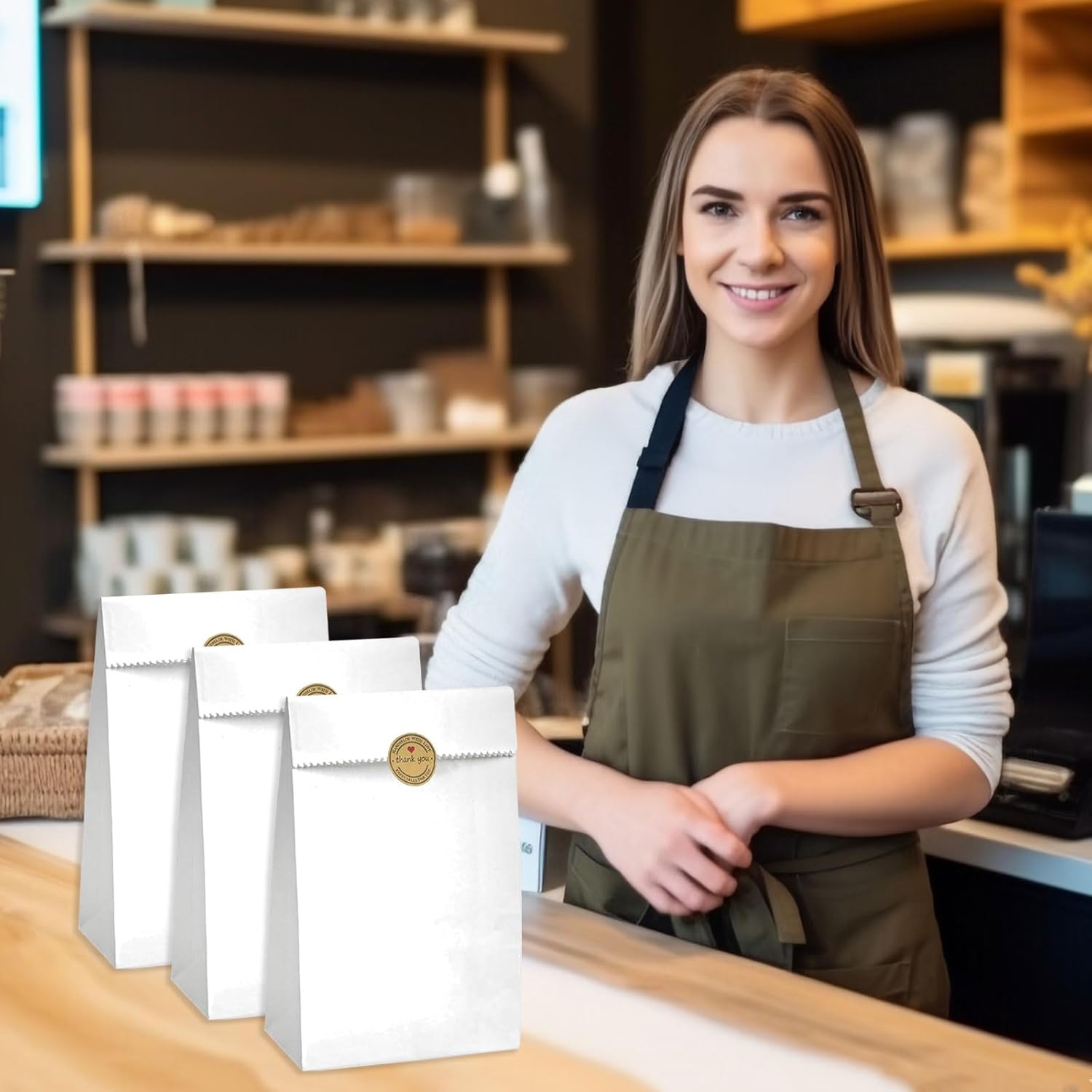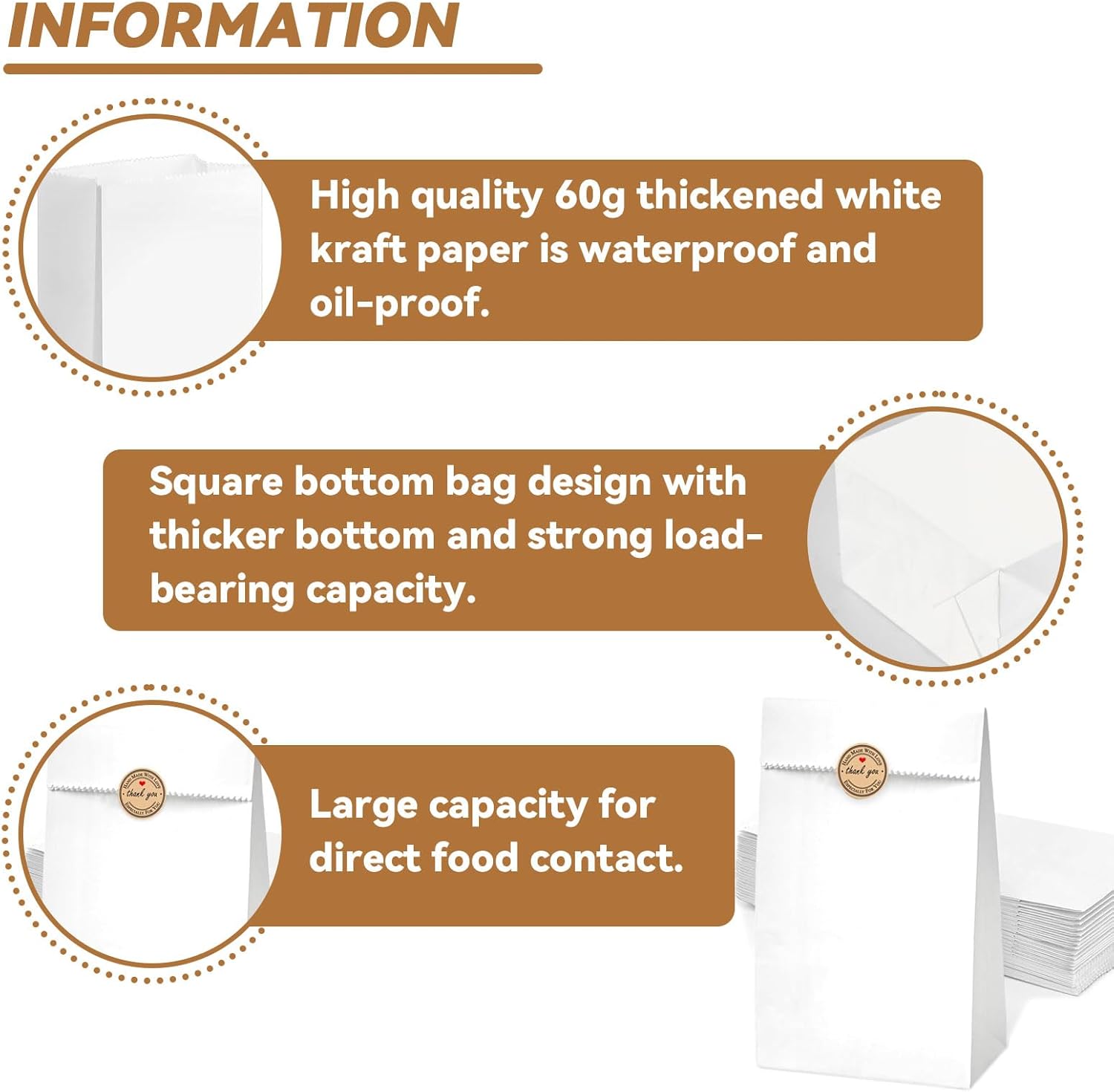 Spessi e durevoli: i sacchetti per il pane in carta bianca sono realizzati in carta kraft ad alta resistenza, quindi il nostro prodotto è spesso e robusto, riutilizzabile, ecologico, inodore e sicuro per l'uso, puoi contare su di esso. Design unico: sacchetti di carta bianca, la laminazione interna è rivestita per un uso più sicuro, ha un doppio strato di protezione e una migliore resistenza all'olio, più comodo da usare, il fondo del sacchetto di carta è solido e piatto, può stare stabilmente sul tavolo Fornito con un adesivo: i nostri sacchetti di carta bianca sono dotati di un adesivo che può essere incollato sull'apertura del sacchetto kraft per sigillare il contenuto ed evitare che cada, il ringraziamento può anche essere utilizzato come adesivo decorativo sulla borsa Facile da usare: la carta dei sacchetti del pane ha un fondo piatto e può stare verticalmente sul tavolo, non cade facilmente, quando non viene utilizzato, può essere riposto in modo da poter essere piegato, facile da riporre, adatto per feste, compleanni, feste estive e altre attività, ampia gamma di applicazioni Sacchetti di carta fai-da-te: puoi scrivere o dipingere la superficie dei sacchetti di carta bianca con una penna e puoi utilizzare i sacchetti per panini per incartare regali di Natale, Pasqua, Ramadan, feste o compleanni