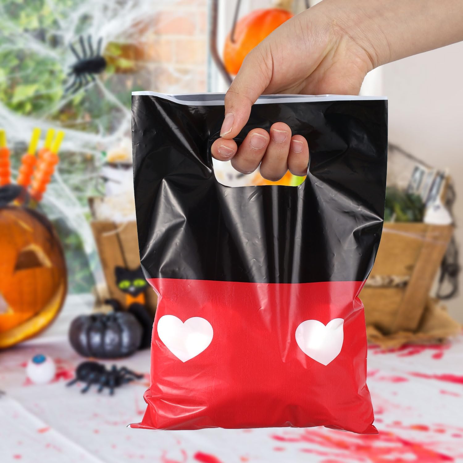 Il pacchetto include: Riceverai 50 sacchetti regalo di animazione di cartoni animati, fornendo una quantità sufficiente per soddisfare le esigenze della tua festa. Perfetto per aggiungere comfort e divertimento festivo alla tua festa o agli eventi quotidiani. DIMENSIONE PERFETTA: Ogni party preferisce le borse con sacchetto di circa 17x25 cm, con una pratica maniglia per un facile trasporto. L'interno spazioso è ideale per contenere dolci, snack, giocattoli o piccoli regali. Design affascinante: questi sacchetti regalo presentano una classica combinazione di colori rosso e nero decorati con motivi a cuore. Il design accattivante attirerà sicuramente l'attenzione e illuminerà l'atmosfera della tua festa. Materiale di qualità: realizzate in robusto materiale PE, queste borse per trattamenti sono resistenti agli strappi e costruite per durare. I colori vivaci rimangono brillanti e non sbiadiscono facilmente, consentendo di riutilizzare le borse più volte. Utilizzo versatile per le feste: perfetto per una vasta gamma di occasioni come feste di compleanno, baby shower, eventi a tema cartoni animati e molto altro. Usa questi sacchetti regalo divertenti e pratici per aumentare l'atmosfera della tua festa e creare ricordi gioiosi per i tuoi ospiti.