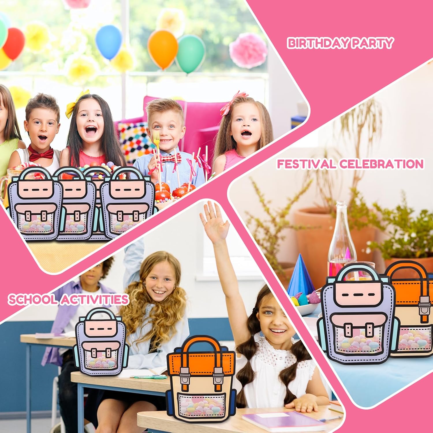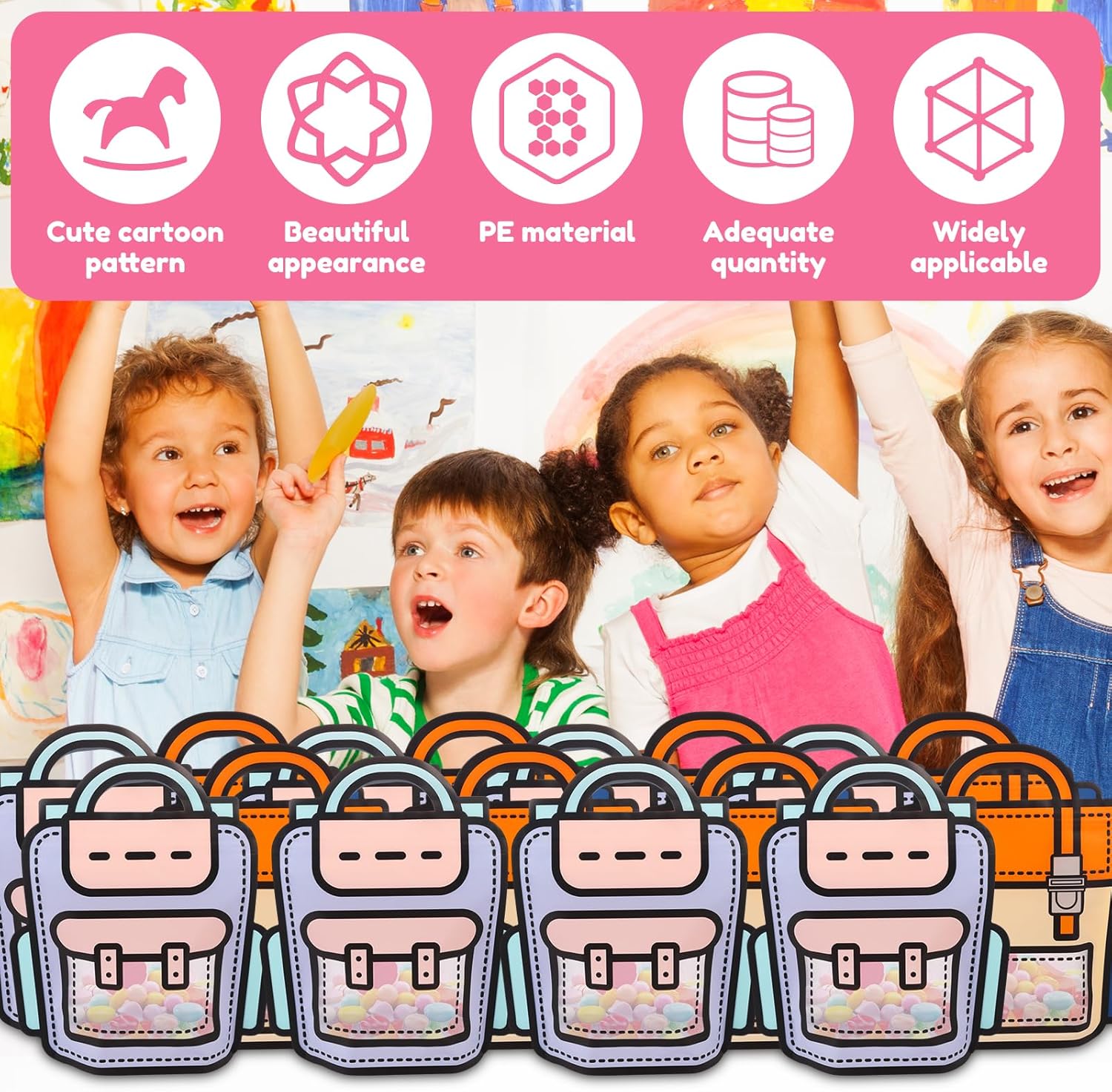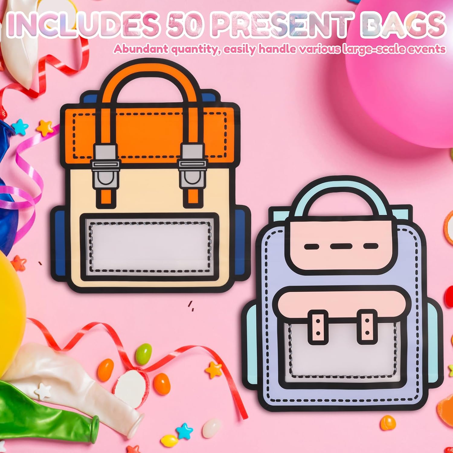 【Design simpatico cartone animato】 Ogni borsa regalo è progettata con simpatici motivi cartoon, forme vivaci e giocose e colori freschi e luminosi che danno vita alle borse dei cartoni animati. 【Creativo e pratico】Ideale per feste di compleanno, feste ed eventi scolastici. Può essere utilizzato anche come piccola confezione regalo quotidiana, per riporre articoli di cancelleria o per trasportare libri, unendo creatività e funzionalità. 【Materiale PE di alta qualità】 Realizzate in materiale PE di alta qualità, le borse sono robuste, durevoli e resistenti a strappi o danni, quindi possono essere utilizzate ripetutamente. 【Quantità Sufficiente】Ogni set contiene 50 sacchetti regalo, sufficienti per attività di classe, regali per feste, premi scolastici e altre grandi distribuzioni. È facile gestire vari eventi di grandi dimensioni. 【Adatto a varie occasioni】 Che si tratti di studenti, bambini o figli di famiglia, queste borse creative trasmettono le tue benedizioni e la tua cura. Sono per la festa dei bambini, i compleanni, le stagioni di laurea e altro ancora.