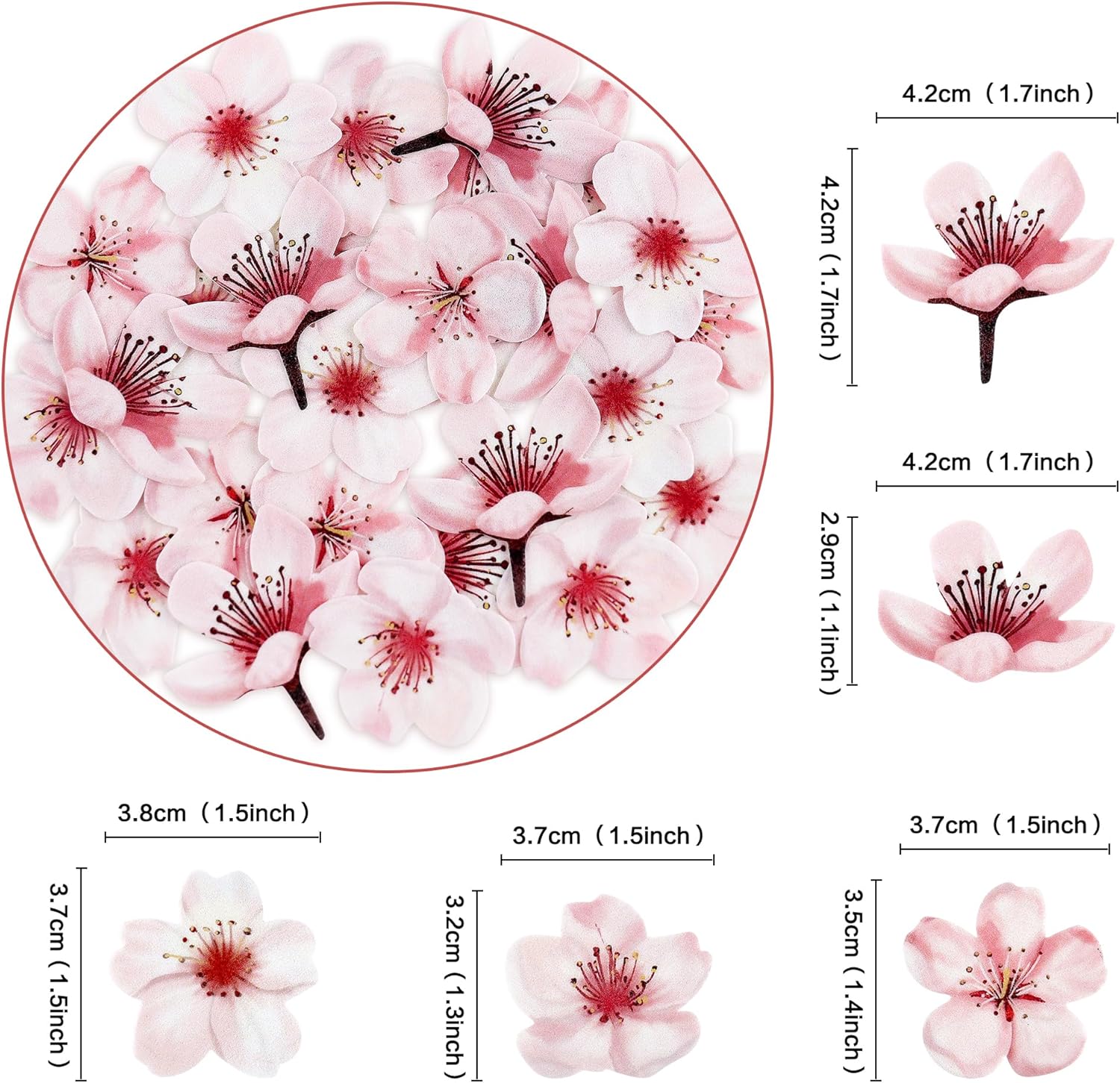 DESIGN SQUISITO: Le nostre decorazioni per torte con fiori commestibili sono disponibili in confezioni da 40 per scatola, con lo stesso tipo e dimensione, puoi mostrare pienamente la tua creatività sulla tua torta. Materiale: i nostri toppers per torta con fiori commestibili sono realizzati in carta di riso commestibile, quindi puoi acquistarli con sicurezza. Puoi attaccare il fiore direttamente alla torta, attraente e resistente! Le decorazioni per torta con fiori di ciliegio sono perfette per decorare cupcake, dessert, biscotti, ciambelle, tavoli, formaggi, ecc. Rendi delizioso il tuo cibo e aggiungi un tocco meraviglioso alla tua tavola. Possono essere utilizzati anche per realizzare piccoli spiedini di frutta. Occasione adatta: le decorazioni per torte con fiori commestibili sono adatte per feste a tema vegetale, feste a tema primaverile, feste per baby shower, feste di anniversario di matrimonio, feste di compleanno per bambini, rendono la tua festa piena di atmosfera a tema floreale. Suggerimenti: se riscontri danni alla merce dovuti al trasporto, contattaci immediatamente e ti offriremo uno scambio o un rimborso gratuiti il prima possibile in base alla tua situazione.