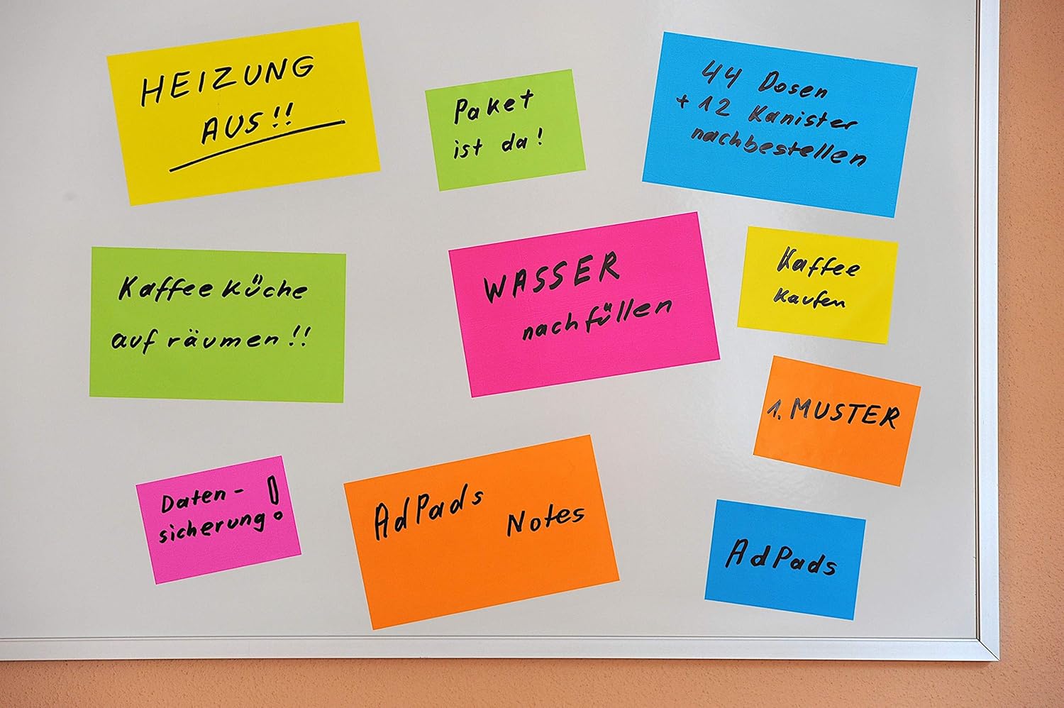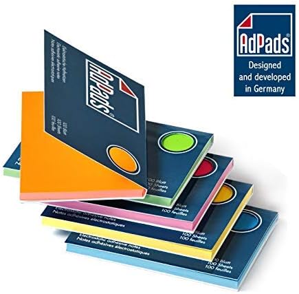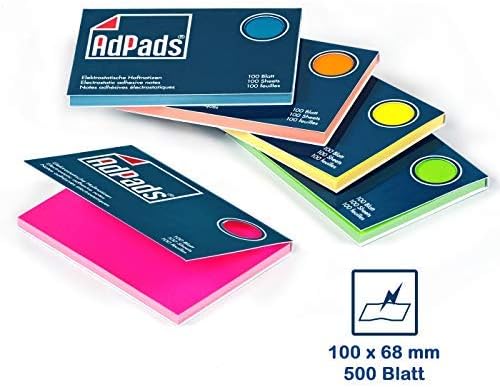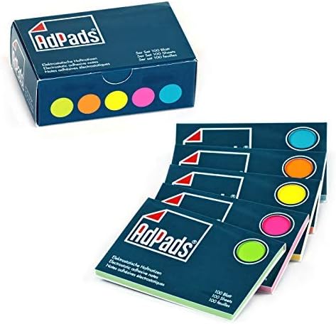 Elettrostatico: i cuscinetti aderiscono in modo affidabile a tutte le superfici utilizzando solo la carica elettrostatica. Lo sviluppo dei foglietti adesivi famosi in tutto il mondo apre nuove possibilità di utilizzo Ovunque: oltre ai luoghi classici come il frigorifero e il monitor, i foglietti statici di AdPads aderiscono con incomparabile forza anche a lavagne bianche, pareti, carta da parati, finestre, vetro, legno o anche pietra, così come a tutte le altre superfici possibili. visualizzare idee, temi e pensieri per riunioni, moderazioni, lezioni, convegni e offrire nuove possibilità per timer, presentazioni o presentazioni Confezione da 5 blocchi da 100 fogli nel pratico formato 100 x 68 mm, singolarmente in busta