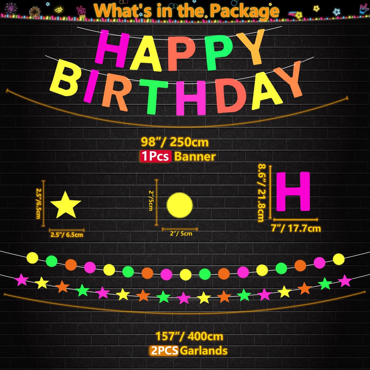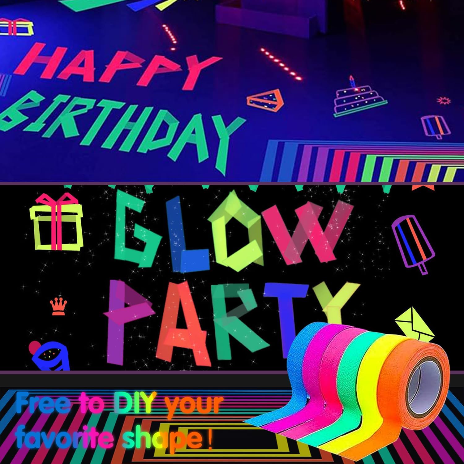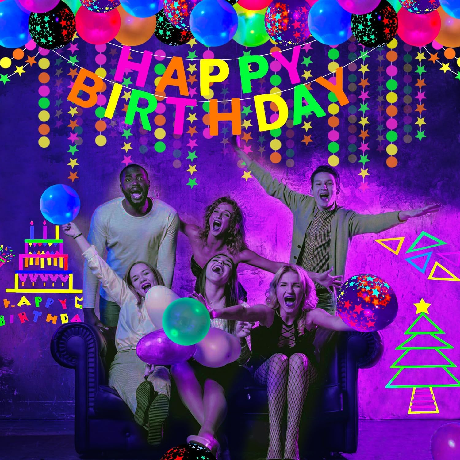 La confezione include: palloncini in lattice di colore misto da 20 pezzi da 12 pollici; Palloncini stellari reattivi alla luce nera da 20 x 12 pollici (10 viola, 10 neri); 6 nastri adesivi in tessuto fluorescente (1 giallo, 1 arancione, 1 verde, 1 rosa, 1 viola, 1 blu); 1 ghirlanda rotonda a pois di carta neon; 1 ghirlanda di stelle di carta al neon; 1 striscione fosforescente, 2 punti adesivi, 1 catena per palloncini. Questo set per feste è sufficiente per decorare la tua festa di compleanno e farà risplendere la tua festa. I bambini e gli adulti li adoreranno. Qualità affidabile: i palloncini che si illuminano al buio sono realizzati in lattice naturale, sicuri, non tossici, non facili da scoppiare e possono riflettere la fluorescenza di notte. Lo striscione a luce nera e le ghirlande di carta lucida sono realizzati in cartoncino spesso e robusto, colori brillanti, superficie liscia, leggero, non tossico, riutilizzabile e durevole. Le strisce luminescenti sono realizzate in cotone UV, che è durevole, impermeabile, facile da rimuovere senza lasciare residui e può essere utilizzato senza alcun effetto anche se calpestato molte volte. Design unico: le nostre forniture per feste a luce nera trasformeranno il tuo locale in un paese delle meraviglie al neon personalizzato, che contribuirà ad aggiungere un'atmosfera abbagliante. Gli effetti luminosi creati dagli oggetti attireranno immediatamente l'attenzione di tutti. Impressiona i tuoi ospiti e ti regala una grande festa. Palloncini al neon, striscioni fluorescenti, corde luminose e strisce fluorescenti emettono effetti fluorescenti sotto specifiche luci UV di notte. Nessuna reazione di fluorescenza sotto la luce normale Facile da usare: le luci al neon per compleanno sono preassemblate, quindi puoi appenderle direttamente. Gonfia i palloncini con aria o elio, quindi puoi usarli per decorare le finestre, la camera da letto, il soggiorno, la biblioteca, il giardino, l'interno o l'esterno come preferisci. Il nastro reattivo alla luce nera si applica a quasi tutto e può aderire a qualsiasi superficie asciutta. Puoi abbinare il kit con altri accessori per feste di compleanno a luce nera, quindi goderti una piacevole festa con i tuoi amici e familiari. Scelta ideale: le forniture per feste che si illuminano al buio sono adatte per feste di compleanno che si illuminano al buio, feste a tema neon, feste a tema luce nera, feste che si illuminano al buio, feste di compleanno al neon, decorazioni sceniche, baby shower, feste di crescita, feste in discoteca retrò, carnevale festivo, feste di compleanno a tema palloncini, feste in maschera, feste di ricongiungimento, matrimoni, buffet, riunioni di famiglia, sfondi fotografici. Possono offrirti un divertimento visivo diverso e rendere la tua festa più emozionante.