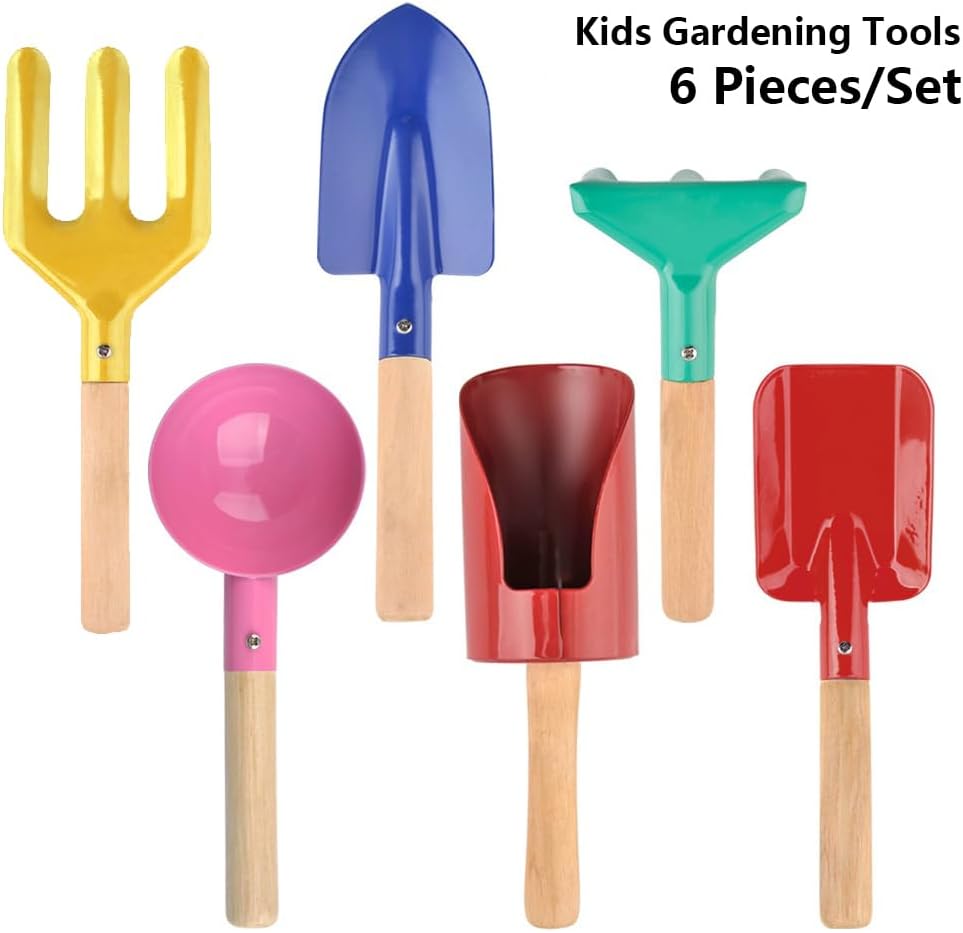 Sicuro da usare: lo strumento per rastrello da giardinaggio è leggero, perfetto per le mani piccole dei bambini, che non ha bordi appuntiti e sicuro da usare, senza preoccuparsi di ferirli Ampio utilizzo: set di attrezzi da giardino progettato per il tempo libero all'aperto per la coltivazione di fiori e ortaggi, diserbo, allentamento del terreno, trapianto di piantine Materiale robusto: il set di attrezzi da giardino da 6 pezzi è realizzato in con manici in legno duro resistenti, che sono completamente funzionali e dureranno a lungo Colori vivaci: i set di attrezzi da giardinaggio sono super carini e belli, molto adatti a ragazzi e ragazze di età compresa tra 3 e 13 e una scelta regalo perfetta Attività genitore-figlio: il set da giardinaggio è strumento pratico per coltivare emozioni tra genitori e figli e lasciare che la tua famiglia partecipi insieme al lavoro