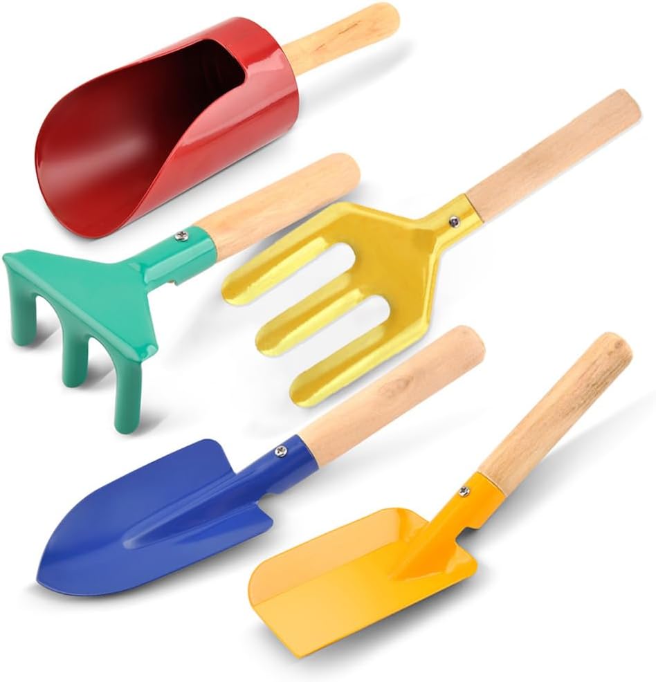 Sicuro da usare: lo strumento per rastrello da giardinaggio è leggero, perfetto per le mani piccole dei bambini, che non ha bordi appuntiti e sicuro da usare, senza preoccuparsi di ferirli Ampio utilizzo: set di attrezzi da giardino progettato per il tempo libero all'aperto per la coltivazione di fiori e ortaggi, diserbo, allentamento del terreno, trapianto di piantine Materiale robusto: il set di attrezzi da giardino da 6 pezzi è realizzato in con manici in legno duro resistenti, che sono completamente funzionali e dureranno a lungo Colori vivaci: i set di attrezzi da giardinaggio sono super carini e belli, molto adatti a ragazzi e ragazze di età compresa tra 3 e 13 e una scelta regalo perfetta Attività genitore-figlio: il set da giardinaggio è strumento pratico per coltivare emozioni tra genitori e figli e lasciare che la tua famiglia partecipi insieme al lavoro