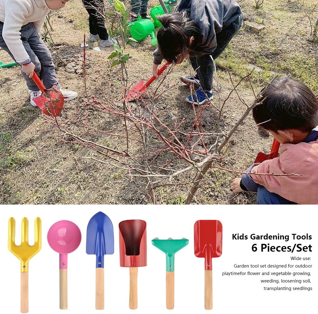 Sicuro da usare: lo strumento per rastrello da giardinaggio è leggero, perfetto per le mani piccole dei bambini, che non ha bordi appuntiti e sicuro da usare, senza preoccuparsi di ferirli Ampio utilizzo: set di attrezzi da giardino progettato per il tempo libero all'aperto per la coltivazione di fiori e ortaggi, diserbo, allentamento del terreno, trapianto di piantine Materiale robusto: il set di attrezzi da giardino da 6 pezzi è realizzato in con manici in legno duro resistenti, che sono completamente funzionali e dureranno a lungo Colori vivaci: i set di attrezzi da giardinaggio sono super carini e belli, molto adatti a ragazzi e ragazze di età compresa tra 3 e 13 e una scelta regalo perfetta Attività genitore-figlio: il set da giardinaggio è strumento pratico per coltivare emozioni tra genitori e figli e lasciare che la tua famiglia partecipi insieme al lavoro