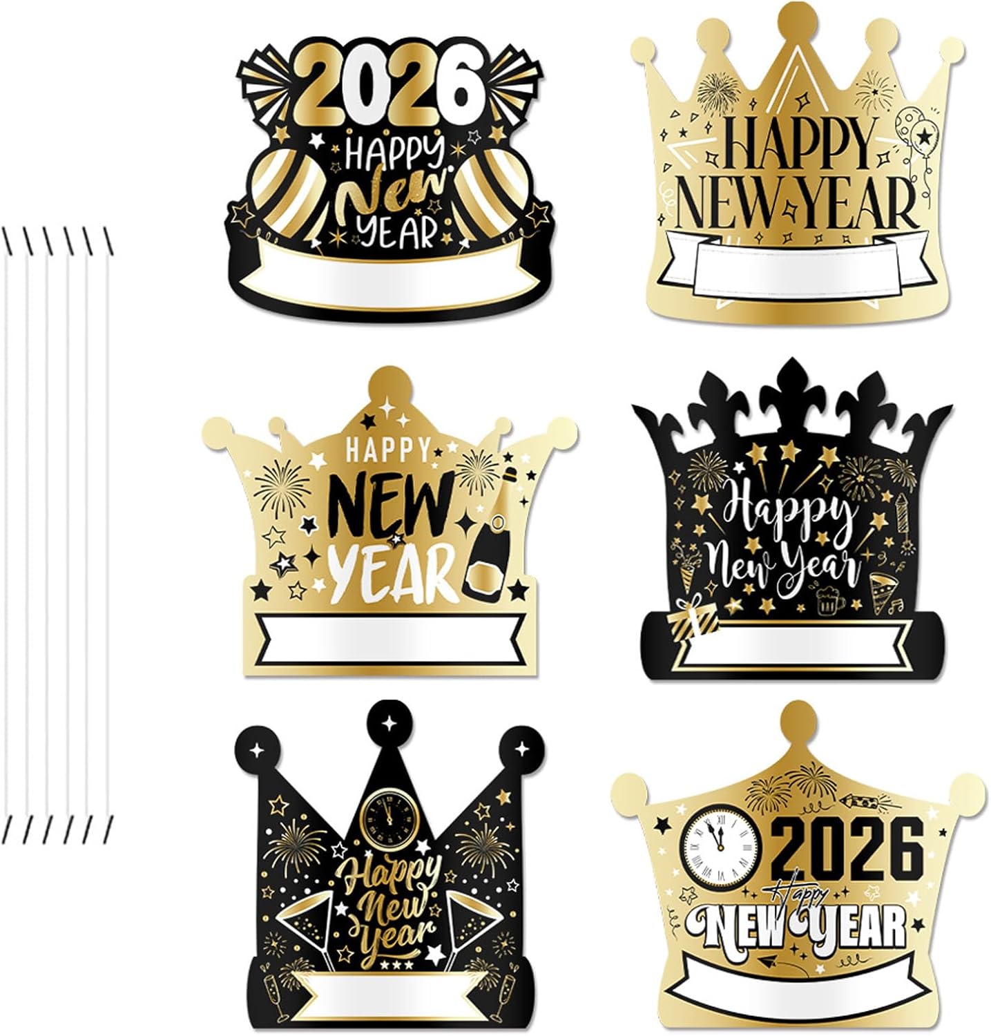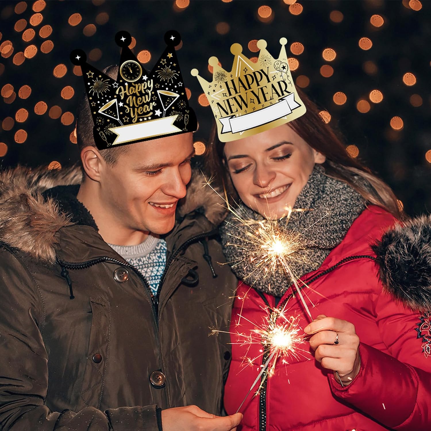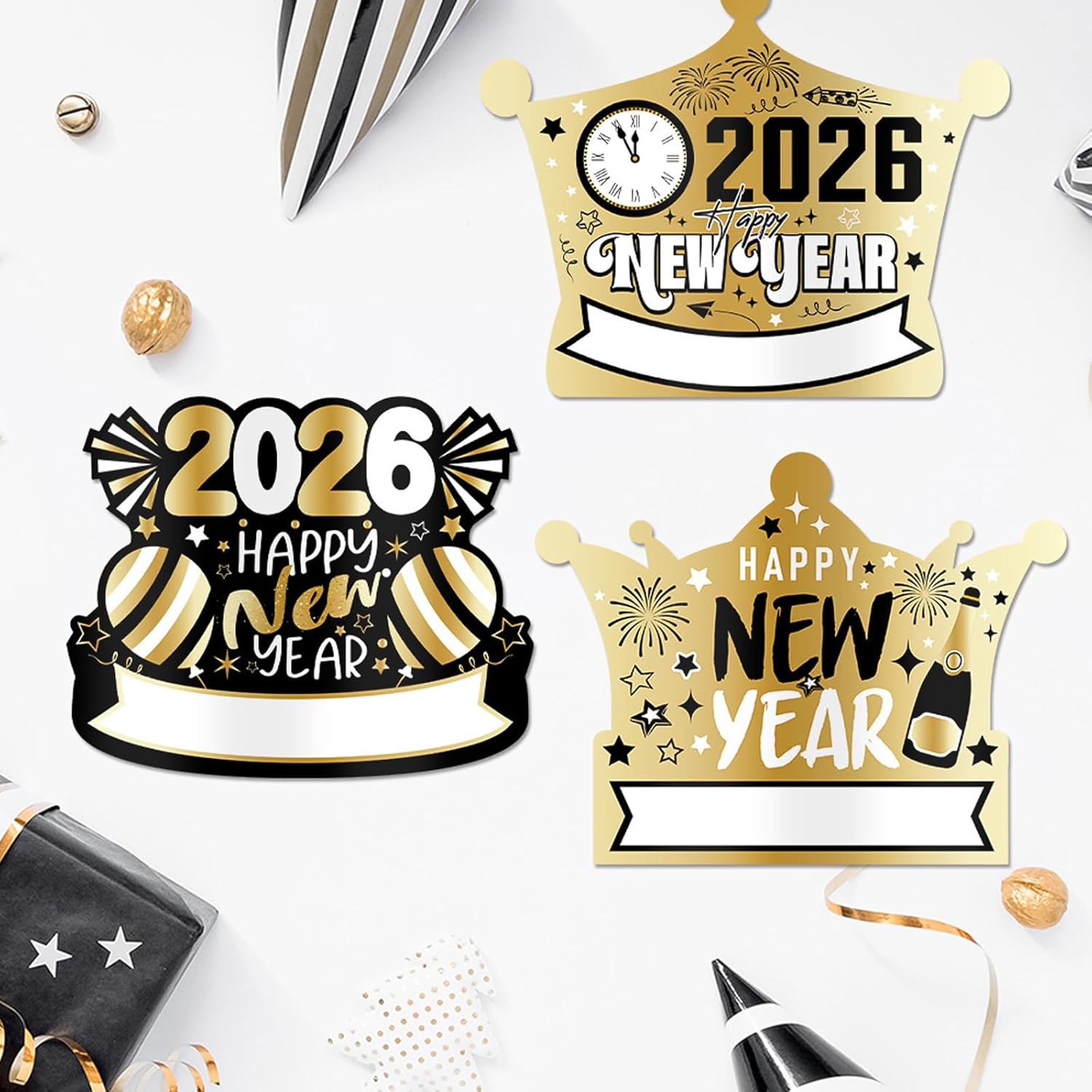 Ogni robusta corona di carta presenta una struttura rinforzata con cinghie elastiche regolabili che si adattano saldamente alla maggior parte delle dimensioni della testa mantenendo la traspirabilità durante le riunioni festive. Perfette per riunioni di famiglia e feste con gli amici, queste corone di carta unisex possono ospitare bambini e adulti dai 5 anni in su con le loro dimensioni flessibili e bordi arrotondati. Confezione da 6 cappelli premium per feste di Capodanno 2026 con sottogola elastici e lussuosi design a corona nera e oro, realizzati in elegante cartone per comode celebrazioni che durano tutta la notte. Ideale per il conto alla rovescia di Capodanno, foto a tema. stand, feste in ufficio e scambi di regali per le feste, aggiunge istantaneamente un'atmosfera festosa a qualsiasi festa di benvenuto del 2026 o creazione di contenuti sui social media Completa la tua celebrazione con queste corone usa e getta abbinate che si abbinano perfettamente ai set di stoviglie e fungono da ricordi indimenticabili di occasioni speciali