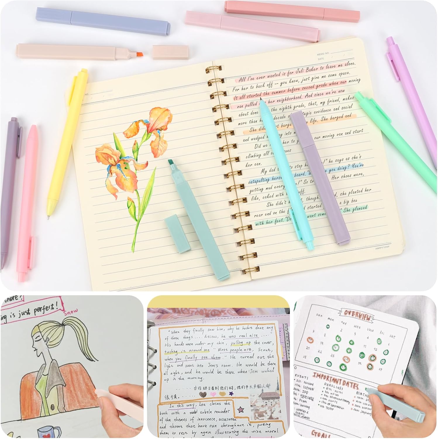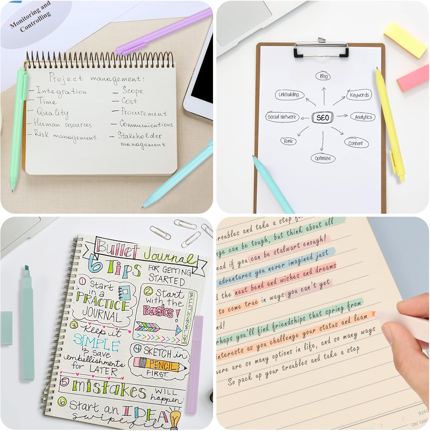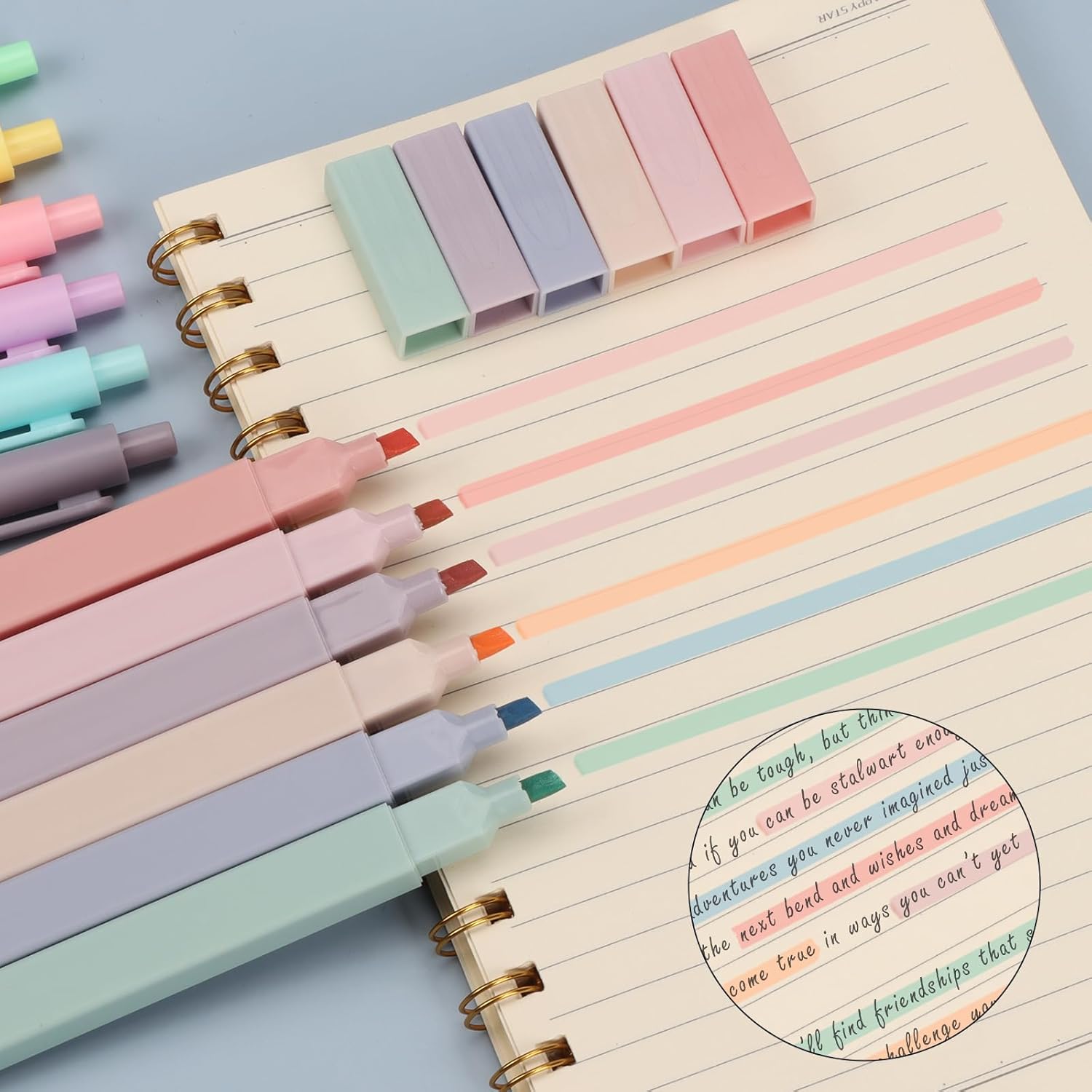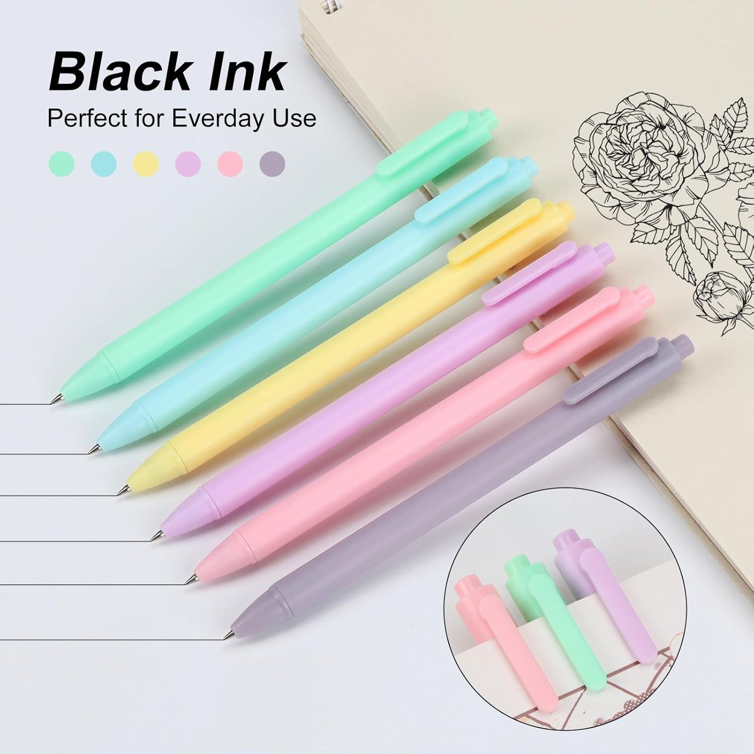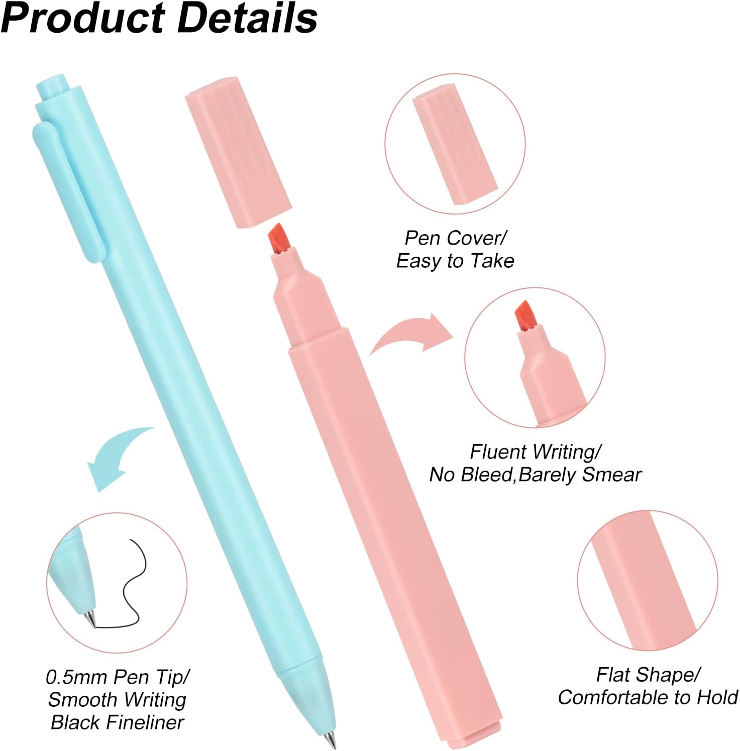 PACCHETTO RICCO: La borsa per penne contiene 6 evidenziatori in diversi colori e 6 penne a sfera nere, facile da trasportare. Utilizza evidenziatori di alta qualità e inchiostri a base d'acqua per evidenziare e disegnare mappe mentali. MATERIALI PREMIUM: La parte della punta degli evidenziatori è resistente all'usura e leggermente morbida. Il guscio è in plastica e viene fornito in eleganti colori multipli che sono gradevoli alla vista. Protegge bene gli occhi e il naso. Nessun odore pungente. Ottimo per dettagli e riempimenti, eccellenti prestazioni in tutte le aree di scrittura, disegno e colorazione. SCRITTURA FLUIDA: Ogni tratto di scrittura si asciuga rapidamente senza sbavature o macchie. Si tiene comodamente in mano, antiscivolo e non si propaga quando usato correttamente. L'inchiostro a flusso libero e la forma piatta ti permettono di scrivere qualcosa con facilità. REGALO PERFETTO: È un ottimo aiuto per studiare e lavorare. Puoi usarlo per scrivere, evidenziare, colorare, e altro. Perfetto per casa, scuola, librerie e un ottimo regalo per familiari ed amici. FACILE DA USARE: Il cappuccio della penna è facile da rimuovere e chiudere, ergonomicamente progettato. Il barilotto della penna a sfera è dotato di una clip per penne che può essere attaccata a libri o vestiti senza deformazioni.