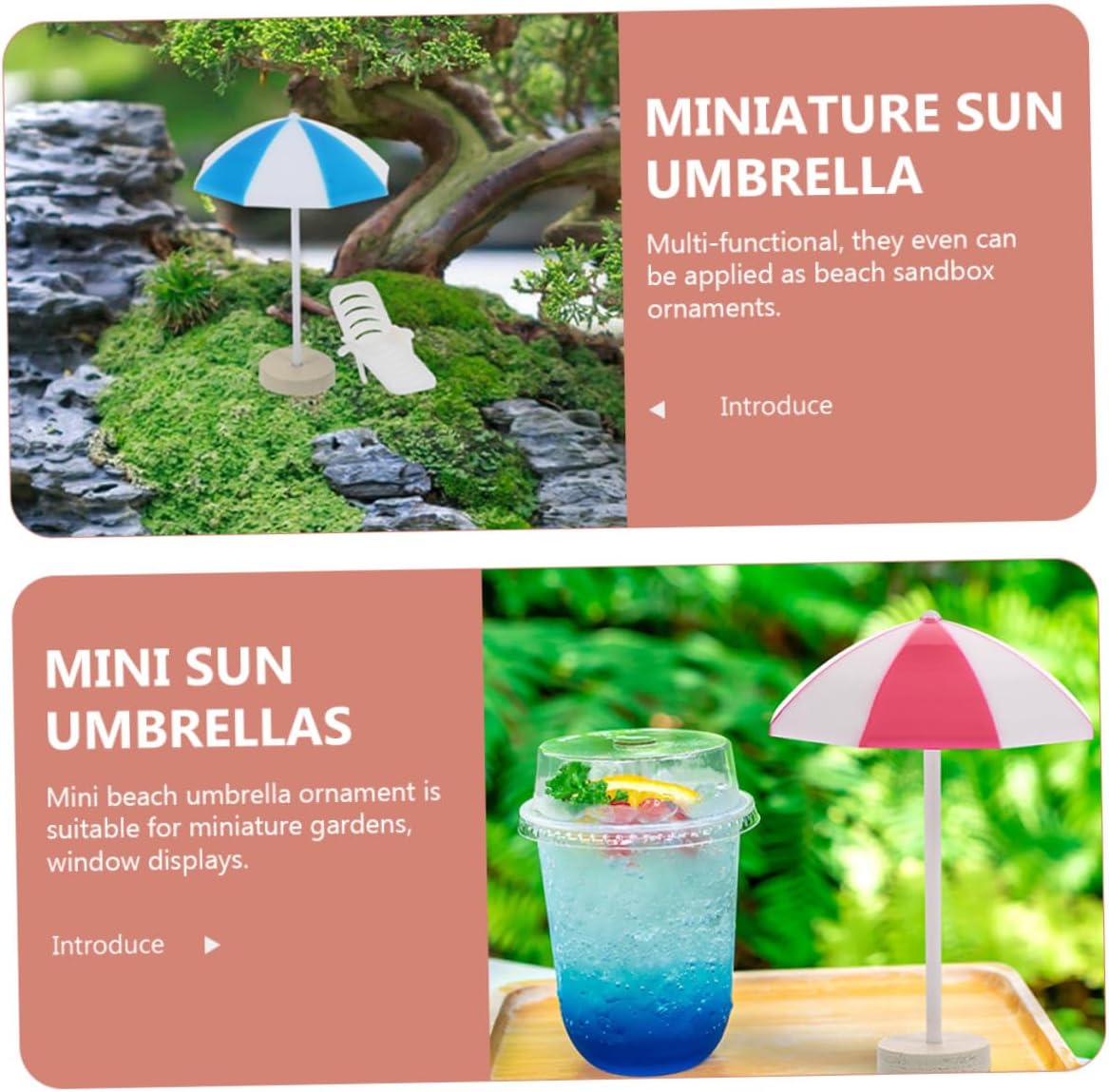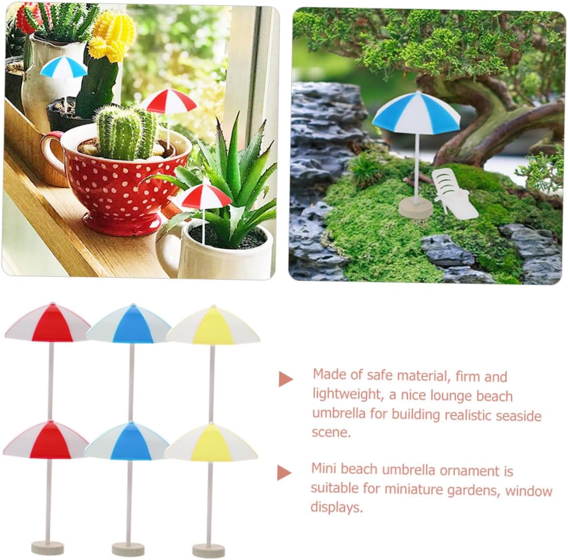 Decorazione mini ombrello: il mini ombrellone leggero è facile da usare e riporre e può aiutare i bambini a sviluppare abilità pratiche e immaginazione. Ombrellone da spiaggia in miniatura Accessori da spiaggia per casa delle bambole: l'ombrellone da spiaggia in miniatura è piccolo e non occupa molto spazio, il che è un regalo meraviglioso per un mini ombrellone Ombrellone piccolo per la decorazione: ombrellone da spiaggia altamente simulato, sicuro e durevole, adatto per essere inserito negli adorabili oggetti di scena in miniatura del tuo bambino. Mini accessori per casa delle bambole: design elegante, molto bello, adatto per feste, compleanni, scopi educativi, forniture per feste, giornate per bambini, Mini ombrellone da spiaggia Mini decorazione: Realizzato in materiale sicuro, solido e leggero, un bellissimo ombrellone da spiaggia per costruire un mare realistico scena, decorazione mini ombrello