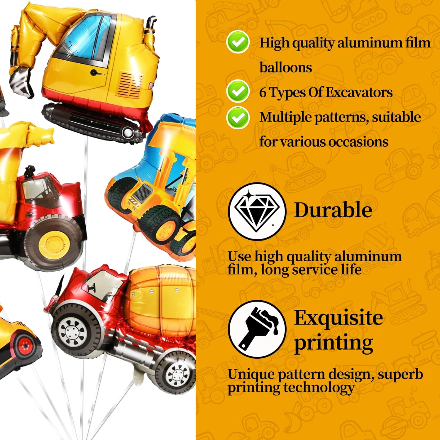 【Palloncino per escavatore】 Riceverai 6 pezzi di palloncino per escavatore 1 rotolo di nastro 1 cannuccia, uno adatto. Ci sono 6 pezzi di palloncino per escavatore 1 rotolo di nastro 1 cannuccia, uno dei quali è adatto. Ci sono 6 tipi di palloncini, 1 veicolo da costruzione, 1 carrello elevatore speciale, 1 trasportatore di calcestruzzo, 1 gru speciale, 2 escavatori; per feste di compleanno per bambini, feste a tema animali, baby shower, ecc. Può essere utilizzato anche come giocattolo quotidiano per bambini. 【Materiale di alta qualità】 Il palloncino dell'escavatore è realizzato in resistente foglio di alluminio con motivi di stampa chiari e luminosi, adatti per il riempimento con aria, non sono solo leggeri e sicuri, ma anche resistenti agli strappi e agli strappi. Evitare la luce solare diretta e oggetti appuntiti per evitare crepe o scoppi. 【Installazione semplice】Procedura da utilizzare:Passaggio 1: individuare la porta di gonfiaggio. Passaggio 2: indossare la pompa dell'aria. Passaggio 3: gonfiare il palloncino fino all'85% circa. Passaggio 4: processo completato in modo che la tua ragazza con palloncini escavatore rimanga fresca e attraente durante l'intero periodo di celebrazione, colori intensi e design dettagliato degli animali, garantiscono un'atmosfera piacevole e regalano ai bambini molta gioia. 【Molti usi】 Palloncino per escavatore realizzato per i compleanni, appendilo al soffitto, alle pareti o nell'ingresso, crea un arco di palloncini o usalo come decorazione da tavolo. Aggiungono un tocco giocoso e fiabesco alle feste per bambini, alle celebrazioni a tema o anche ai momenti di tutti i giorni, perfetti per creare attesa. 【Servizio di qualità】 In caso di domande, non esitare a contattare gli Stati Uniti, lo risolveremo entro 12 ore.