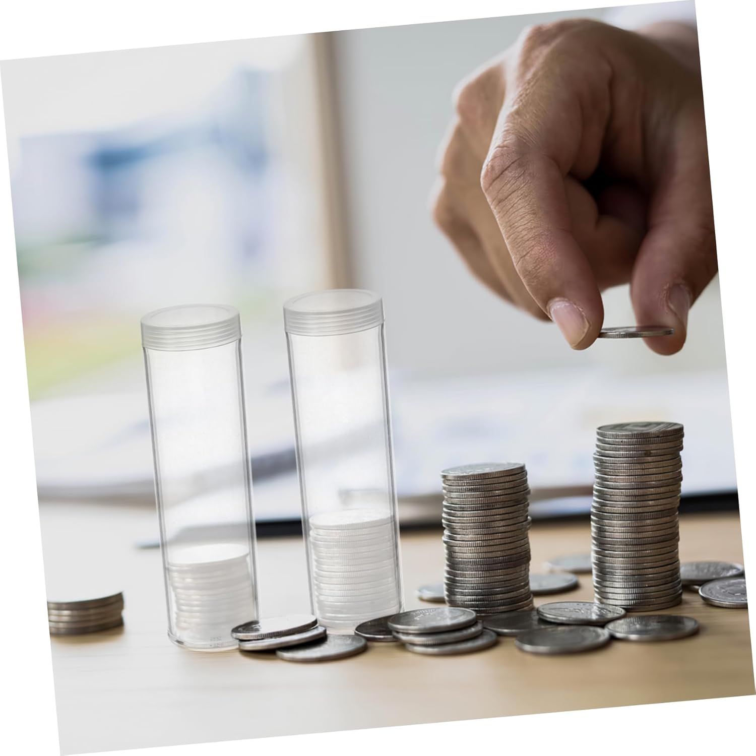 Design trasparente: la struttura chiara facilita la visualizzazione dei tipi e delle quantità di monete, così puoi trovare rapidamente le monete che ti servono senza dover aprire ciascun tubo. Tubo salvamonete trasparente, portamonete Organizzazione affidabile: ogni tubo portamonete può essere etichettato in modo da poter creare un sistema per organizzare le monete per data o valore. Portamonete, portamonete portamonete Design sicuro: il design leggero e robusto rende questi tubi adatti alle famiglie, fornendo un modo per conservare e accedere alle monete senza spigoli vivi, tubi portamonete, tubo portamonete Resistente alle intemperie: questi tubi portamonete sono progettati per resistere a varie condizioni ambientali e proteggere le monete dall'umidità e dalle fluttuazioni di temperatura. Tubi per monete da un quarto, tubo portamonete in plastica Funzionali ed eleganti: questi tubi non sono solo pratici, ma il loro design elegante aggiunge anche un tocco di eleganza alla tua collezione di monete quando le esponi o le conservi. Piccolo portamonete in plastica, portamonete