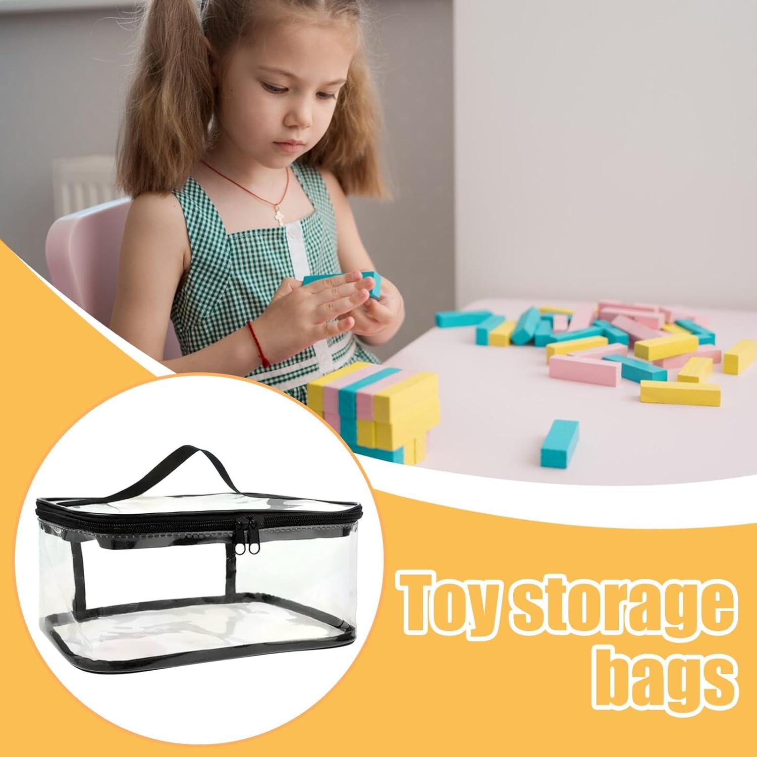 Organizzazione migliorata: con la nostra custodia per blocchi di costruzione, puoi facilmente ordinare e organizzare pezzi di diversi colori. Mantieni organizzata la tua stanza dei giocattoli o il tuo banco da lavoro godendo di una soluzione di archiviazione versatile adatta a vari giocattoli da costruzione. Pratico: il design trasparente della nostra borsa portaoggetti da costruzione ti consente di trovare facilmente le parti necessarie, risparmiando tempo prezioso e ottimizzando la tua esperienza di costruzione. Materiale di alta qualità: realizzato in PVC di alta qualità, garantisce l'assenza di spigoli vivi, lo rende adatto ai bambini e fornisce un'eccellente durata per proteggere i tuoi elementi costitutivi da eventuali danni con una buona resistenza alla pressione. Facile da trasportare: con una comoda maniglia, la nostra custodia per elementi costitutivi offre una comoda portabilità per il divertimento in movimento. Il tuo bambino può godersi l'emozione dei mattoncini sempre e ovunque, a casa, a scuola o in viaggio. Dimensioni medie: hai bisogno di un comodo spazio per riporre i tuoi mattoncini senza occupare troppo spazio? Non cercare oltre la nostra borsa per riporre i mattoncini. Con dimensioni di circa 23 x 17 x 10 cm, è la dimensione perfetta per ospitare una vasta collezione pur rimanendo sufficientemente compatto per riporlo facilmente