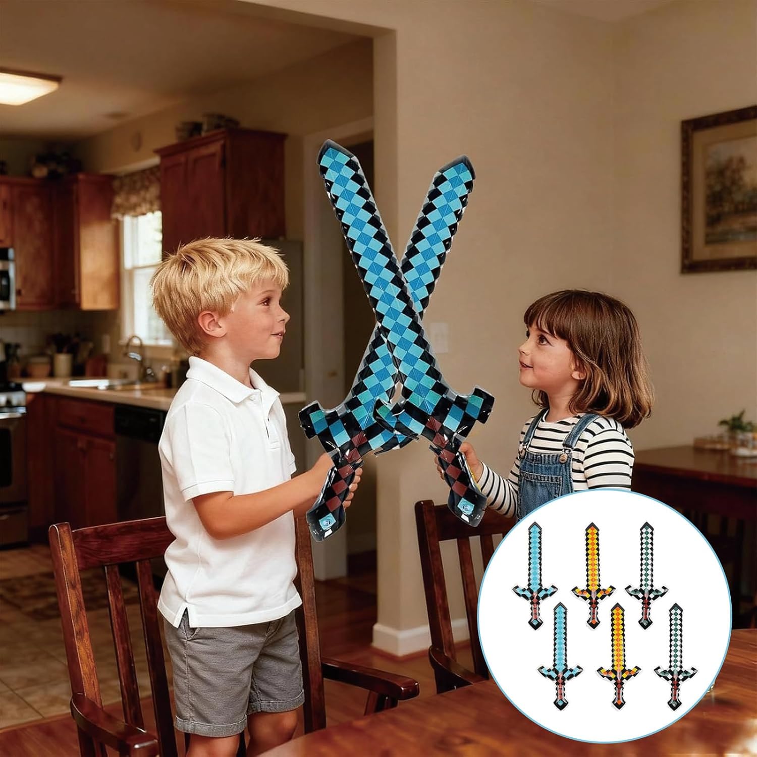 【Giocattoli gonfiabili】: 2 spade gonfiabili gialle + 2 blu + 2 spade gonfiabili grigie. Un fantastico set regalo per la tua festa. Crea un'atmosfera fantastica per la decorazione della festa dei tuoi bambini,Materiale di alta qualità: realizzato in robusto PVC, sicuro e durevole; Morbido e flessibile, ideale per le mani dei bambini; Le spade gonfiabili sono leggere e facili da trasportare,Facile da usare: basta gonfiare con una pompa ad aria (non inclusa); Riempi la spada all'80-90%; La valvola garantisce una tenuta sicura; Nota: non riempire eccessivamente per evitare danni. Usi versatili: ideale per feste di compleanno, carnevali, Halloween e feste in piscina; La spada gonfiabile giocattolo incoraggia il gioco creativo e il gioco di ruolo; Adatto anche come decorazione per feste 【Divertimento e intrattenimento】: i colori vivaci e il fantastico design pixel deliziano i bambini; Perfetto per giochi e attività di gruppo; La spada pixel gonfiabile è un punto forte di ogni festa